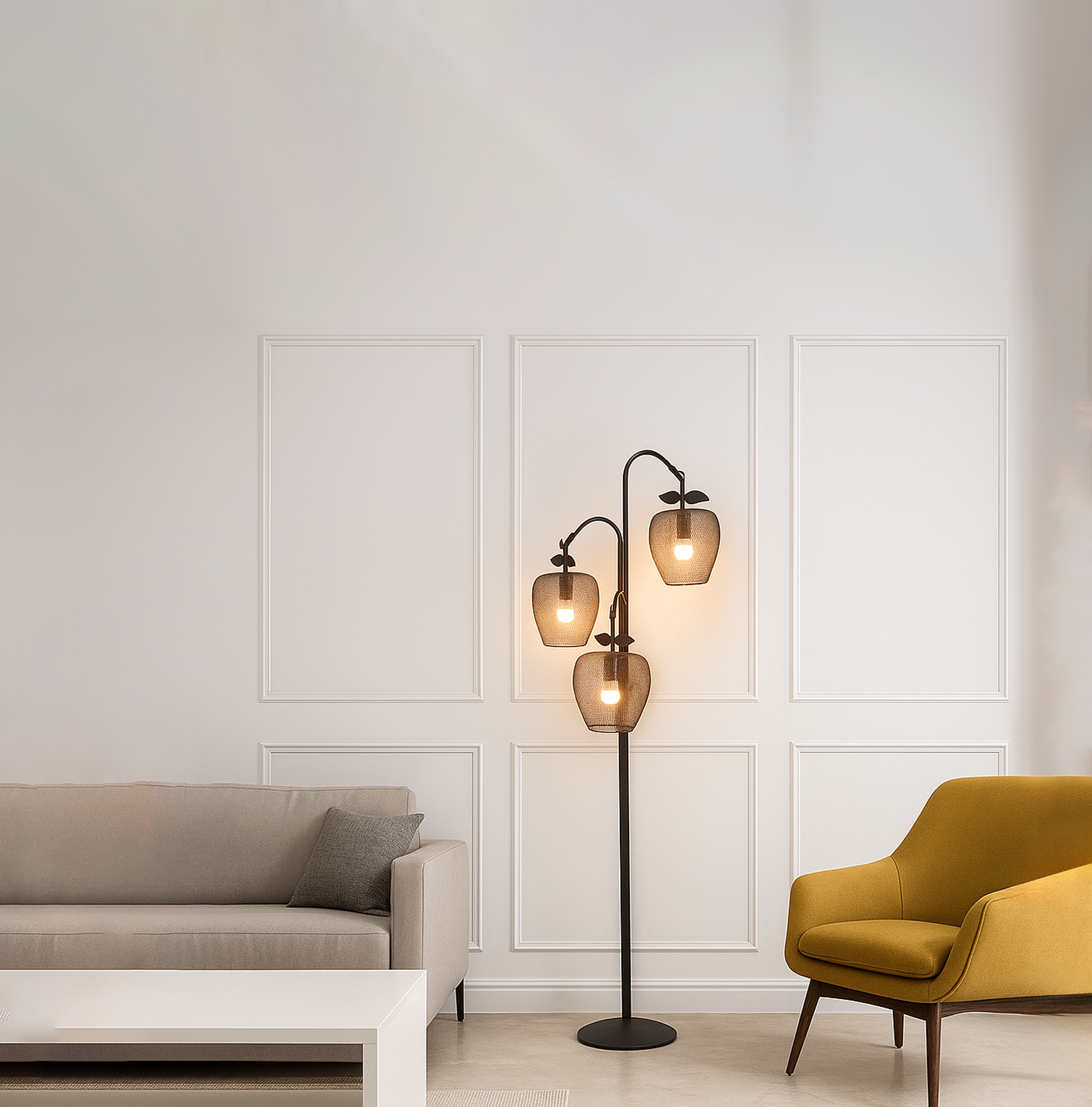 Apple Orchard Luxe Triple Mesh Floor Lamp – Artistic Industrial Elegance for Modern Interiors Matte black