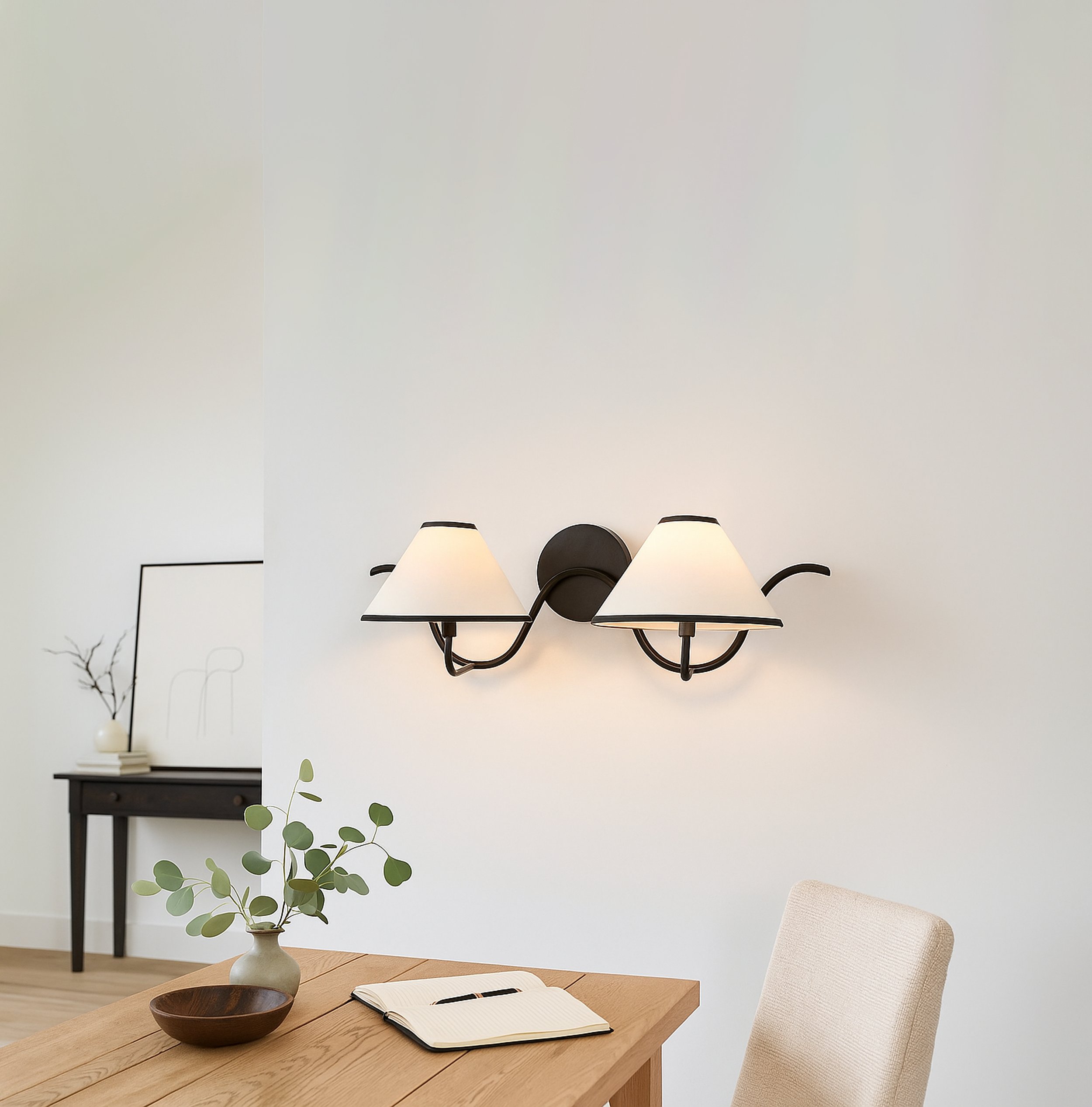 Introducing our exquisite wall lamp, a stunning addition to your home decor. With its sleek matte black color finish, this lamp exudes a sense of contemporary elegance that will enhance any space. The striking design, reminiscent of a delicate two branches, adds a touch of nature-inspired beauty to your walls. Its unique shape, gives it a charming and playful aesthetic that will surely catch the eye of your guests.