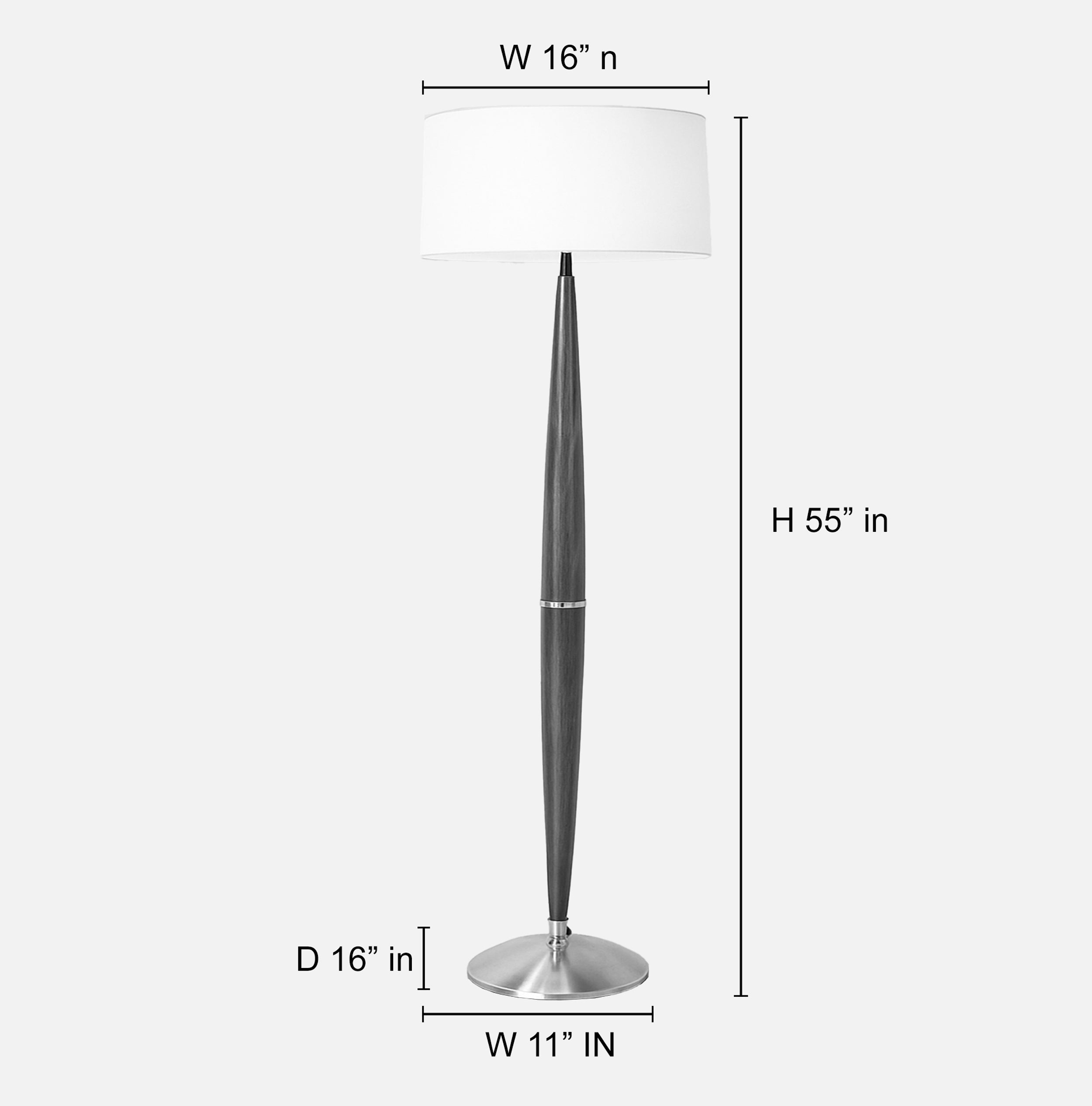Nickel Plated Wood Floor Lamp: 55" Tall with White Shade matte black