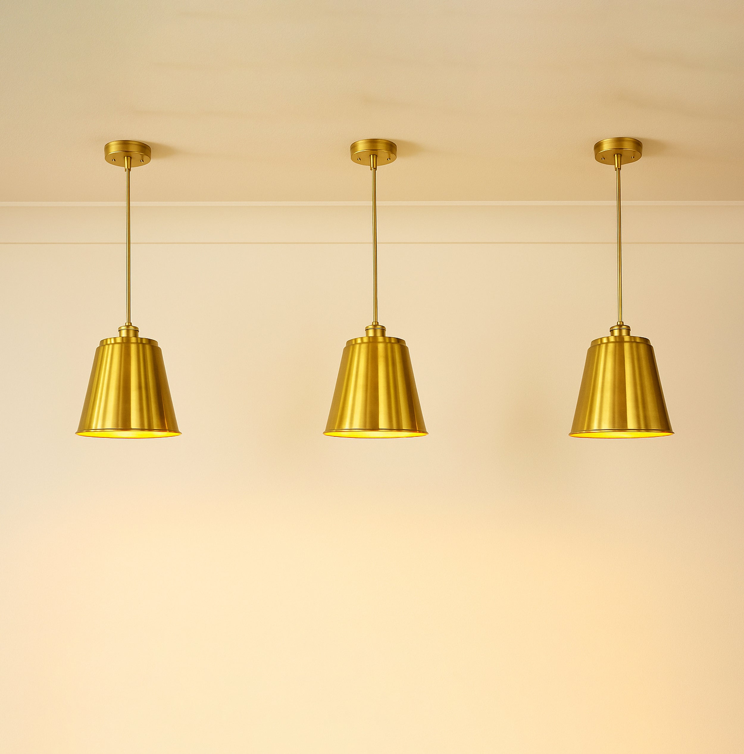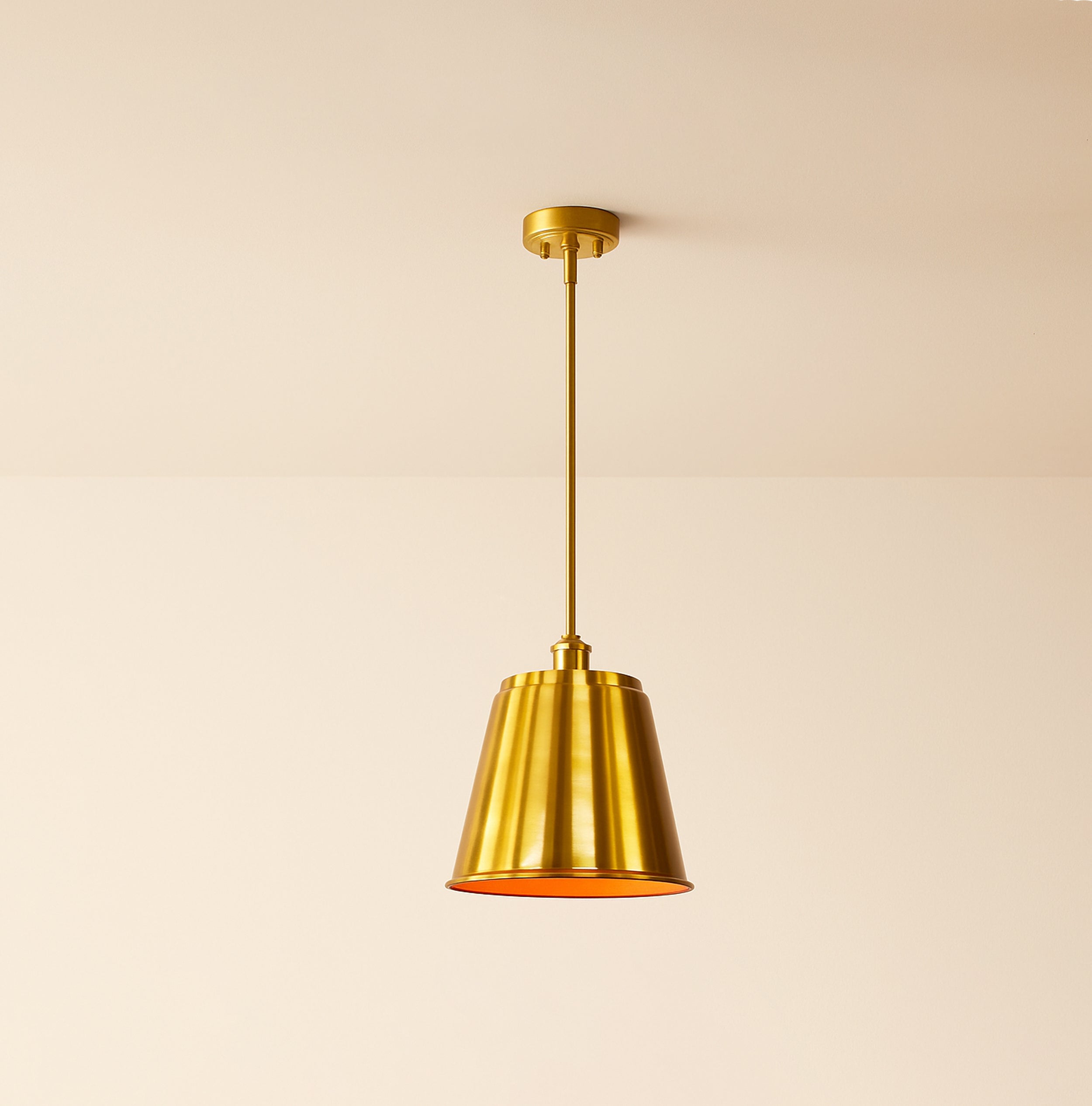 This striking Golden pendant light is the perfect blend of modern design and vibrant color, making it an eye-catching addition to any space. Its sleek silhouette and bold hues create a stunning focal point, while the adjustable cord allows for versatile hanging heights to suit your decor needs. Ideal for dining areas, kitchens, or living rooms, this pendant light not only illuminates your space but also enhances your interior aesthetic with a touch of contemporary flair. Upgrade your home lighting with this stylish and functional piece that effortlessly combines form and function