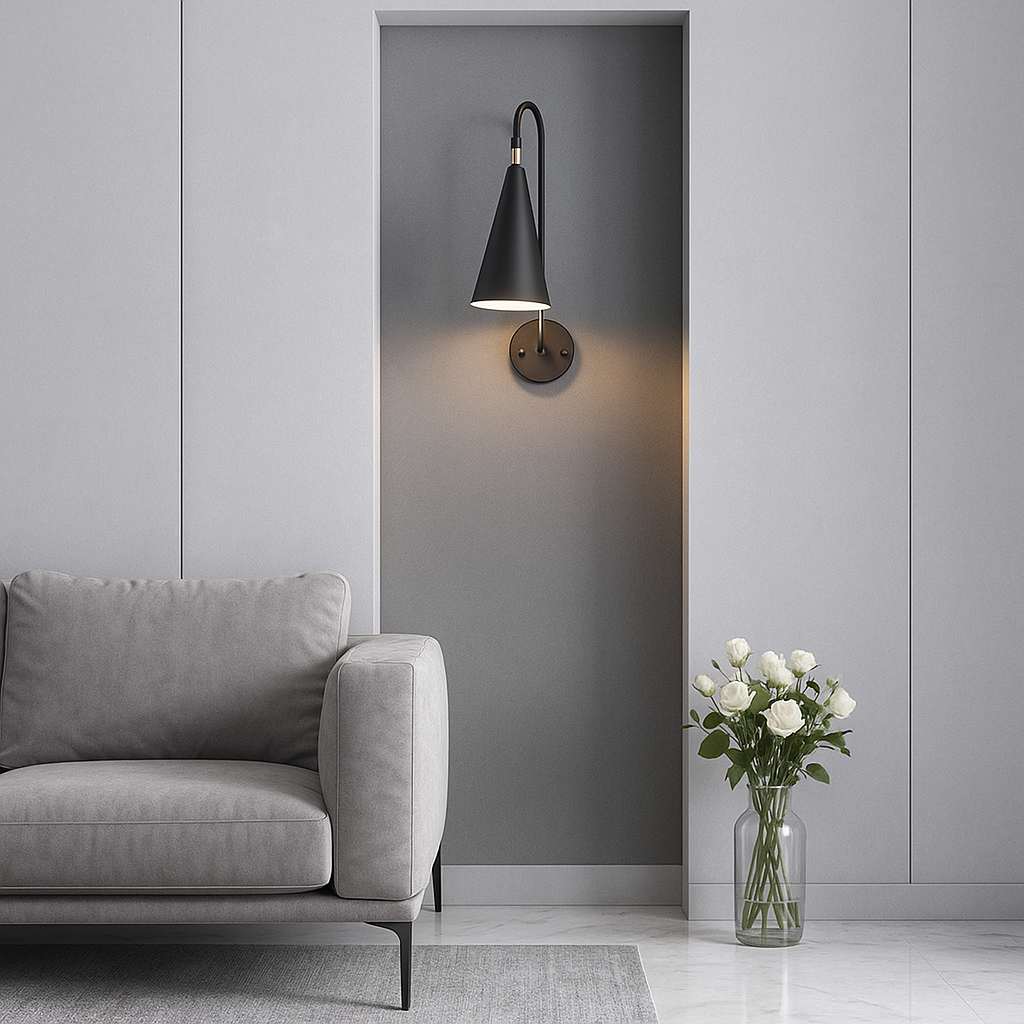 Introducing our exquisite wall lamp, a stunning addition to your home decor. With its sleek black color finish, this lamp exudes a sense of contemporary elegance that will enhance any space. The striking design, reminiscent of a delicate one branch design, adds a touch of nature-inspired beauty to your walls. Its unique shape, gives it a charming and playful aesthetic that will surely catch the eye of your guests.