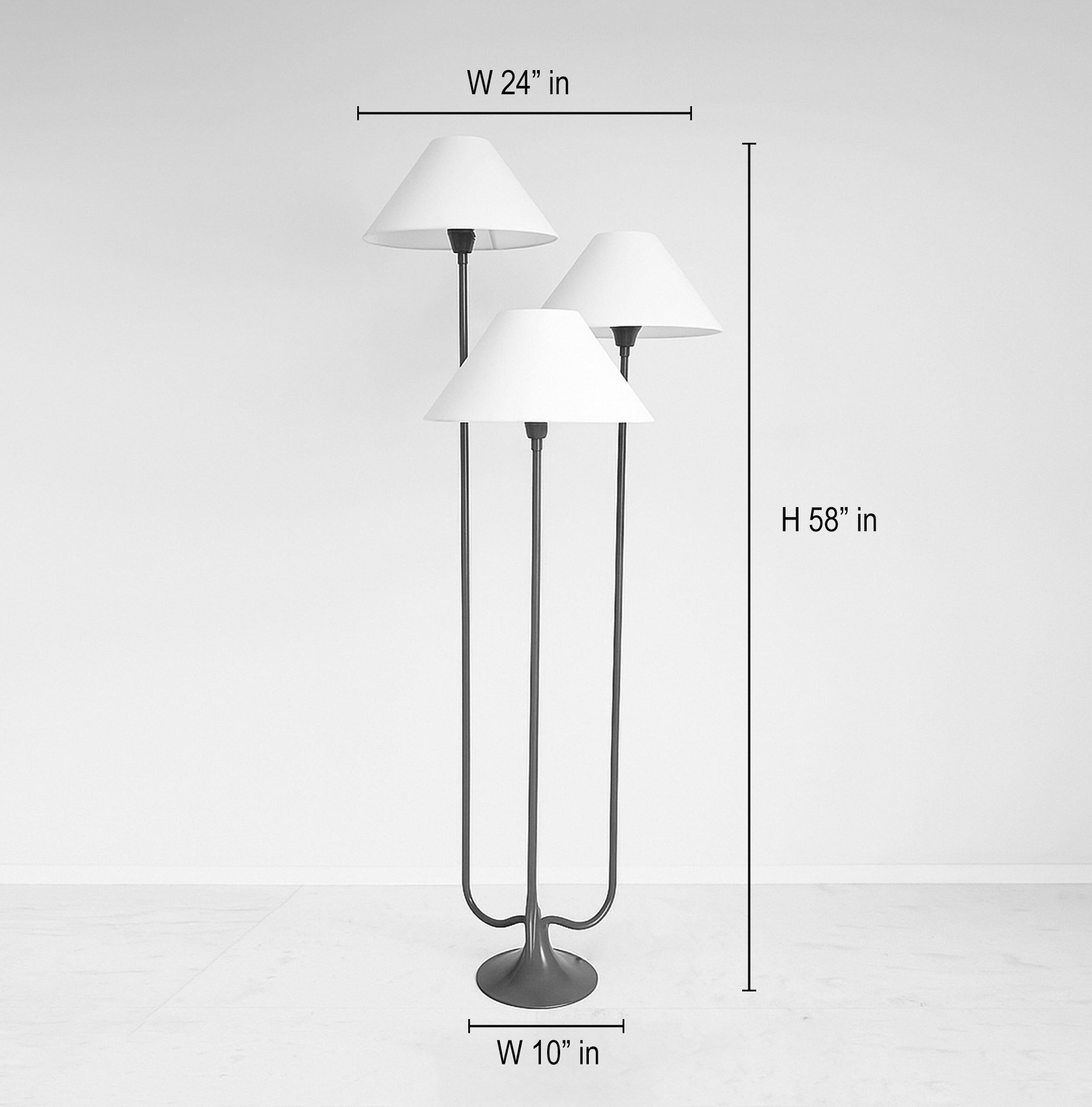 Illuminate your space with this elegant three-light lamp, designed to enhance any room's ambiance. Each lamp features a unique shade that diffuses light beautifully, creating a warm and inviting atmosphere. The sturdy base ensures stability, while the modern design complements various decor styles. Perfect for reading, working, or simply adding a touch of sophistication to your home, this lamp is a versatile addition to your lighting collection. Upgrade your interior with this stylish and functional piece today.
