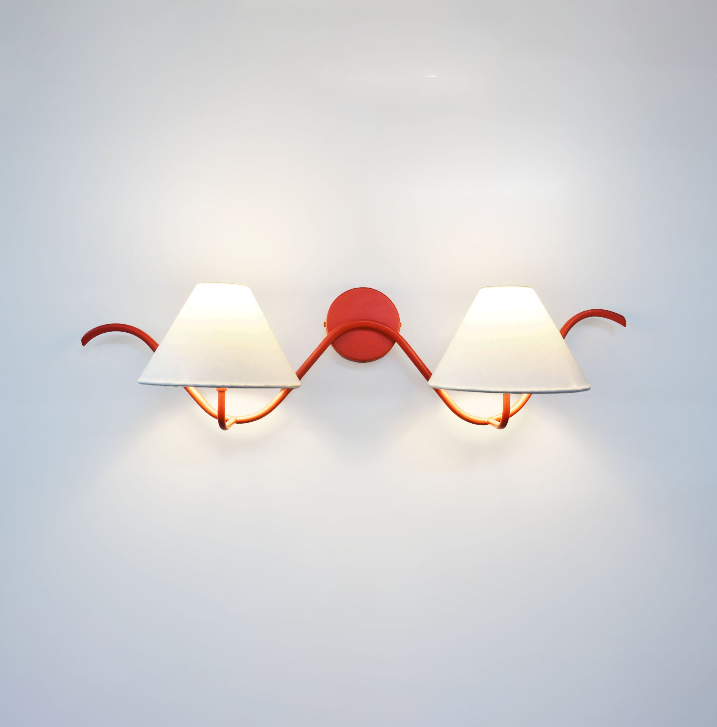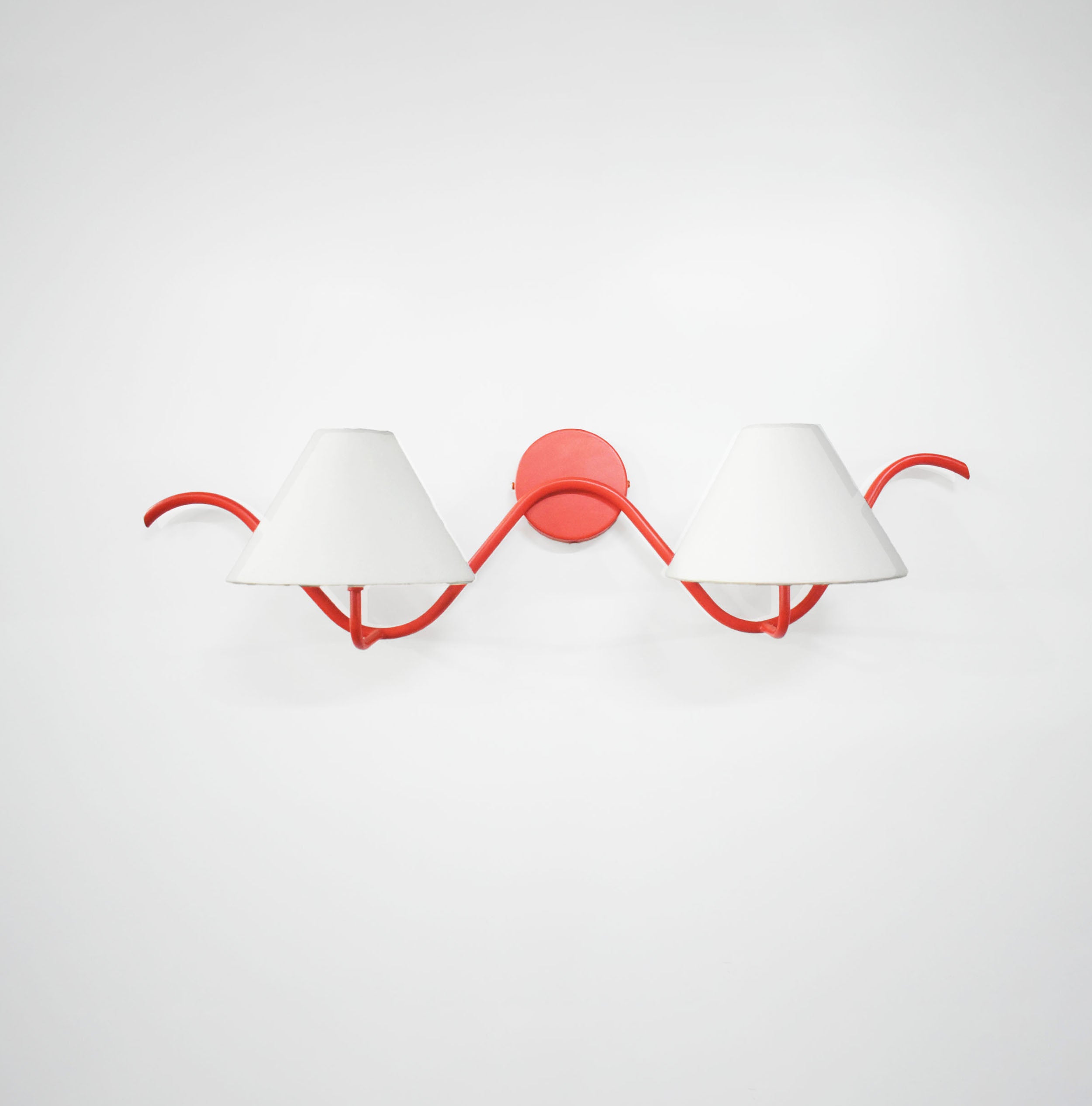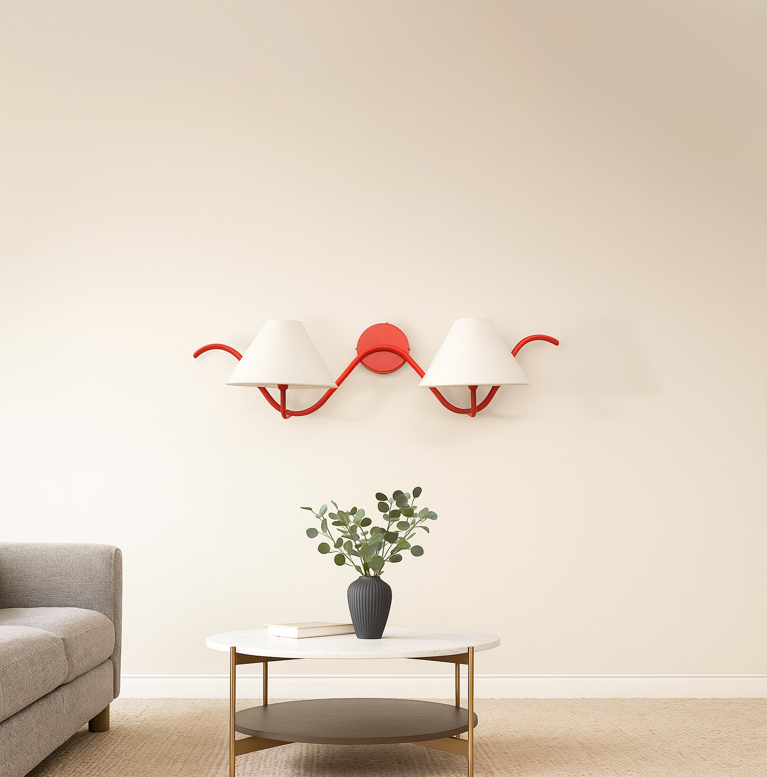 Introducing our exquisite wall lamp, a stunning addition to your home decor. With its sleek Red color finish, this lamp exudes a sense of contemporary elegance that will enhance any space. The striking design, reminiscent of a delicate two branches, adds a touch of nature-inspired beauty to your walls. Its unique shape, gives it a charming and playful aesthetic that will surely catch the eye of your guests.