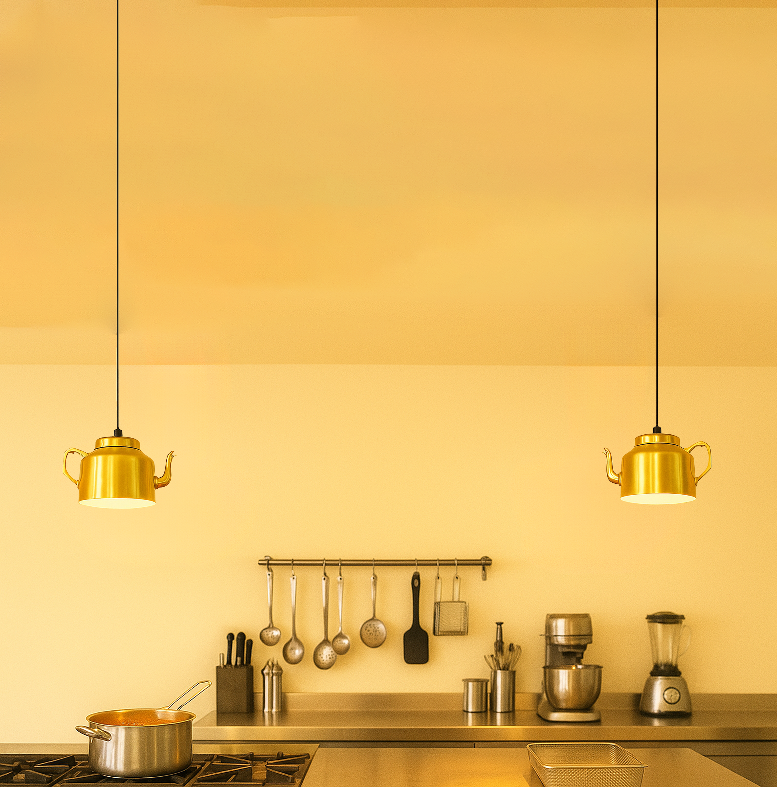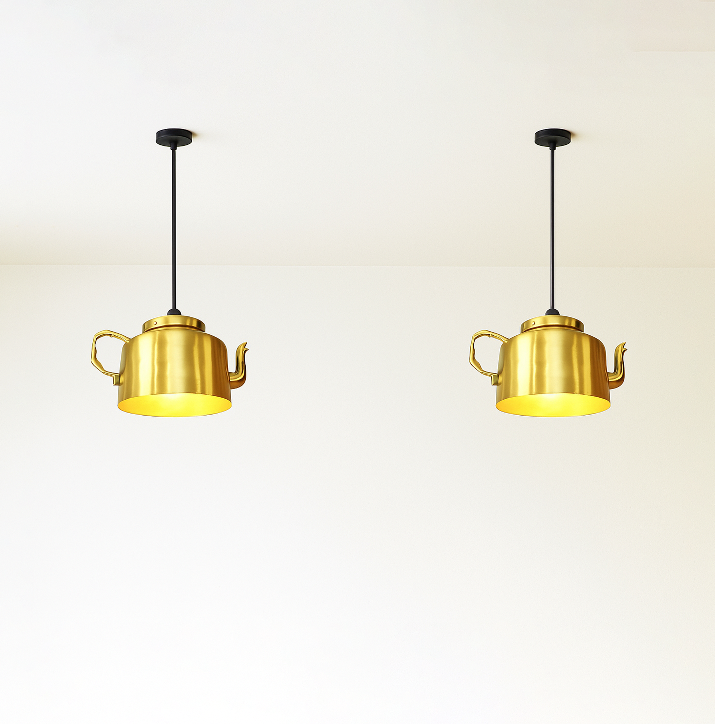 Introducing our adorable hanging light, reminiscent of a charming teapot, that will definitely bring a touch of antiquity to any space. With its gold finish, this ceiling light exudes a timeless beauty that is truly eye-catching. Whether you're looking to decorate your hotel or any other space, the size of this excellent hanging light can be customized to suit your preferences. Create an ambiance like no other with this charming piece, which seamlessly blends style and functionality. Light up your surroundings with the charm of this extraordinary hanging light. The length of the hanging lanyard can be customized. Light up your home with these stunning hanging lamps and transform your space into a visual masterpiece.