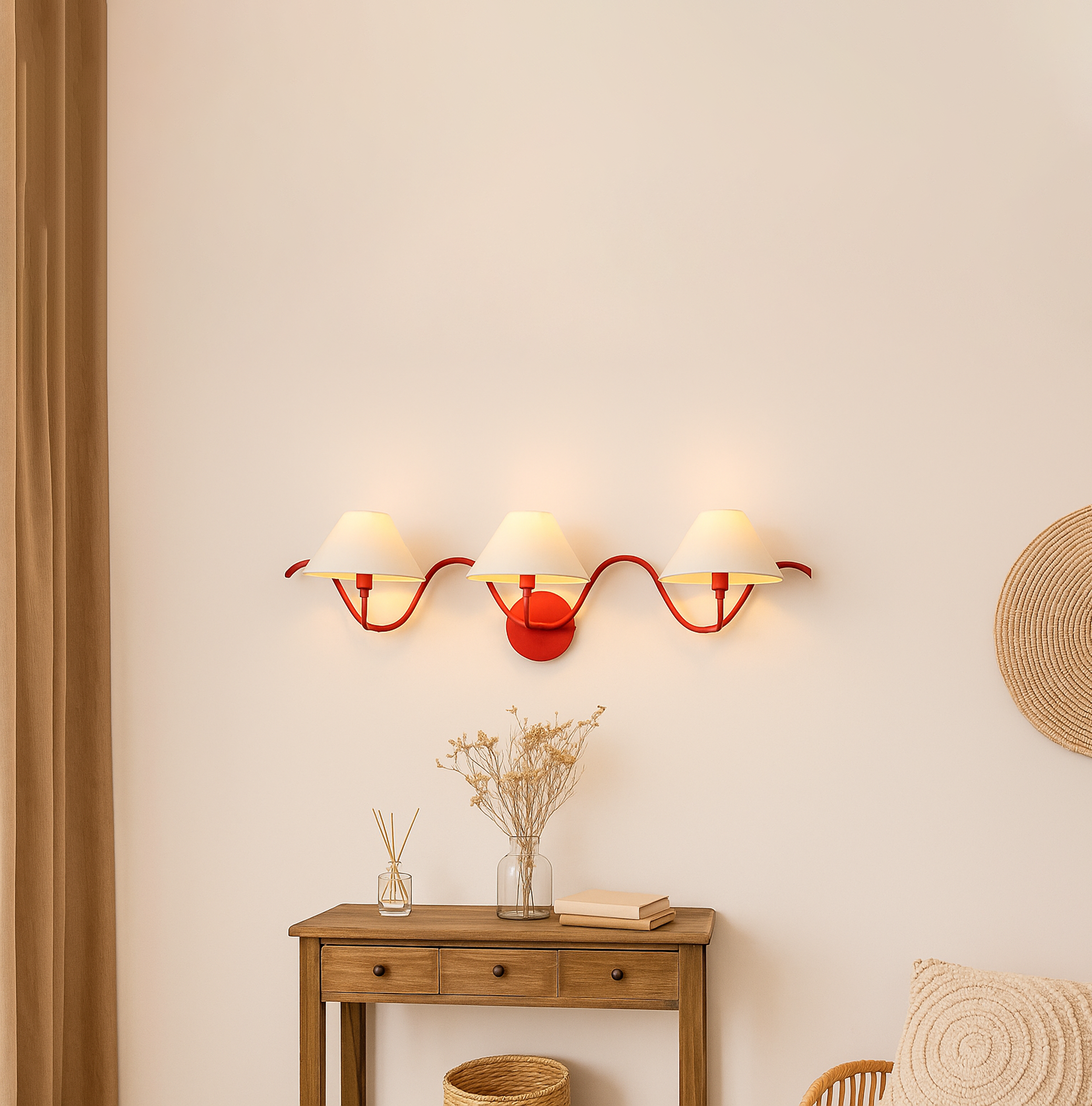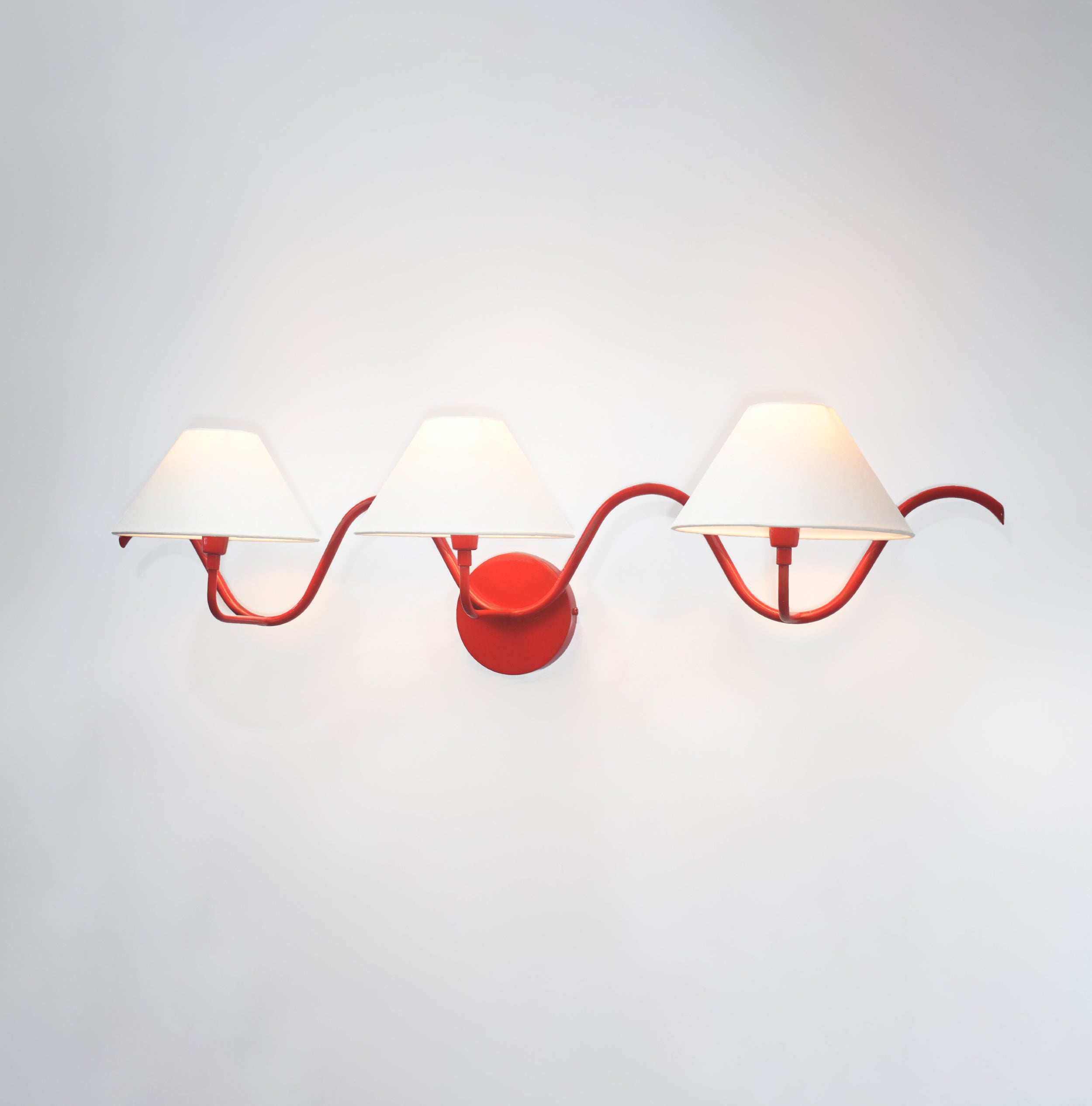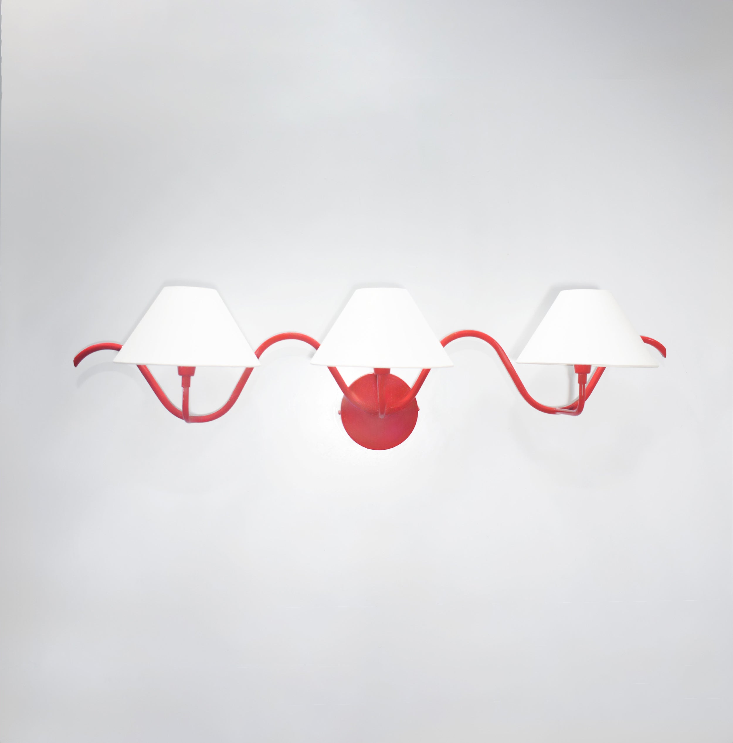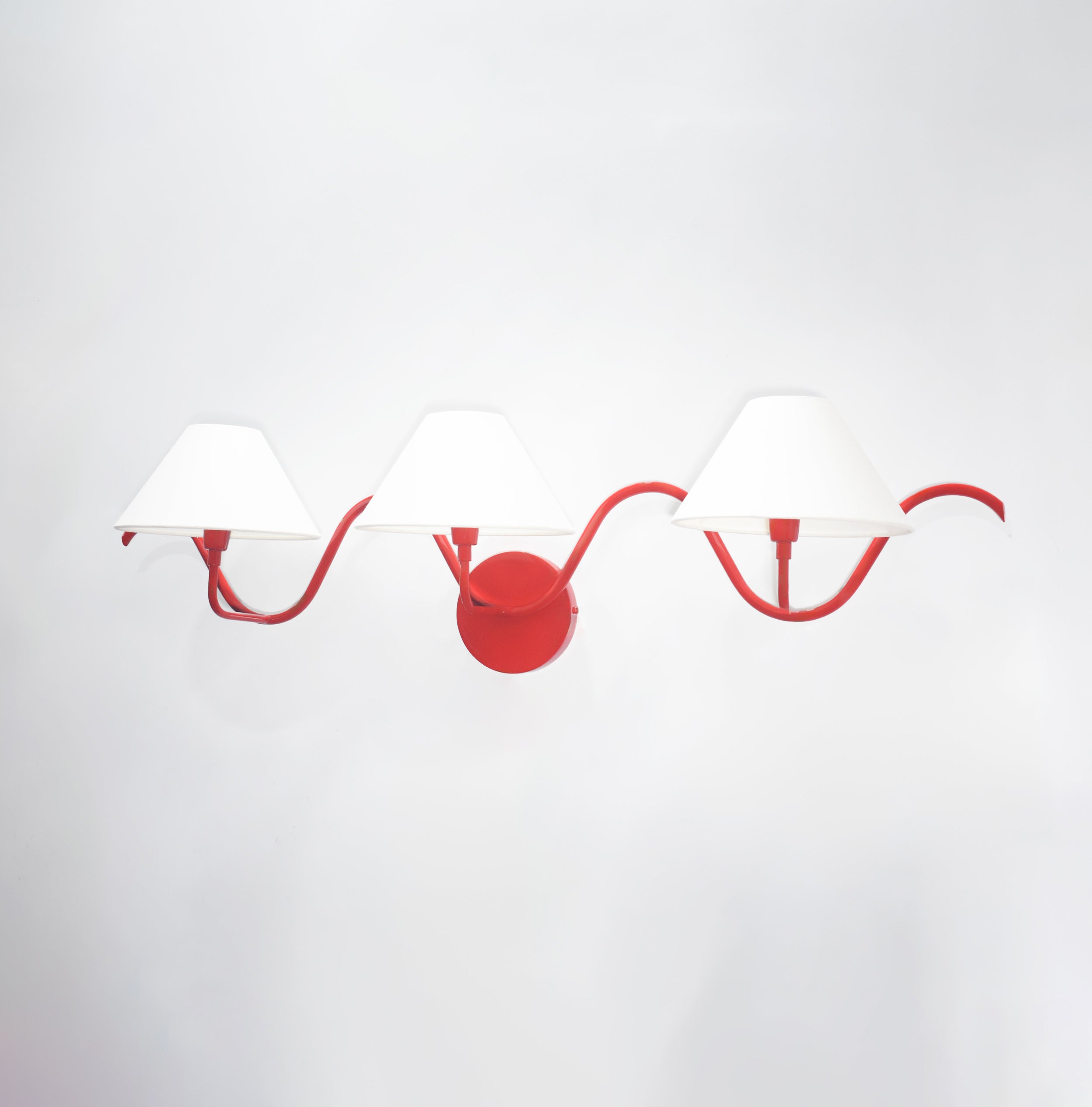 Introducing our exquisite wall lamp, a stunning addition to your home decor. With its sleek red color finish, this lamp exudes a sense of contemporary elegance that will enhance any space. The striking design, reminiscent of a delicate one branch design, adds a touch of nature-inspired beauty to your walls. Its unique shape, gives it a charming and playful aesthetic that will surely catch the eye of your guests.
