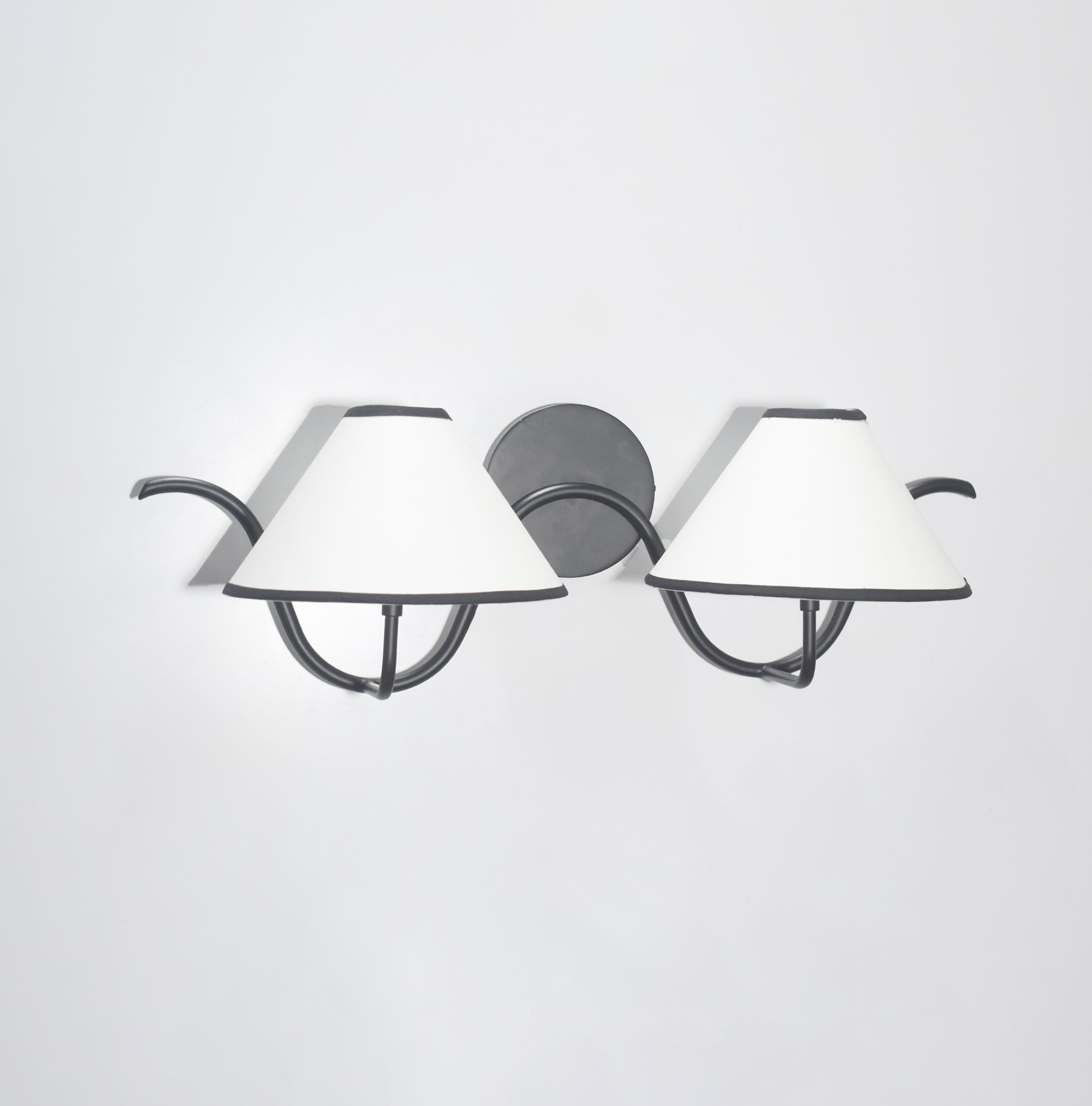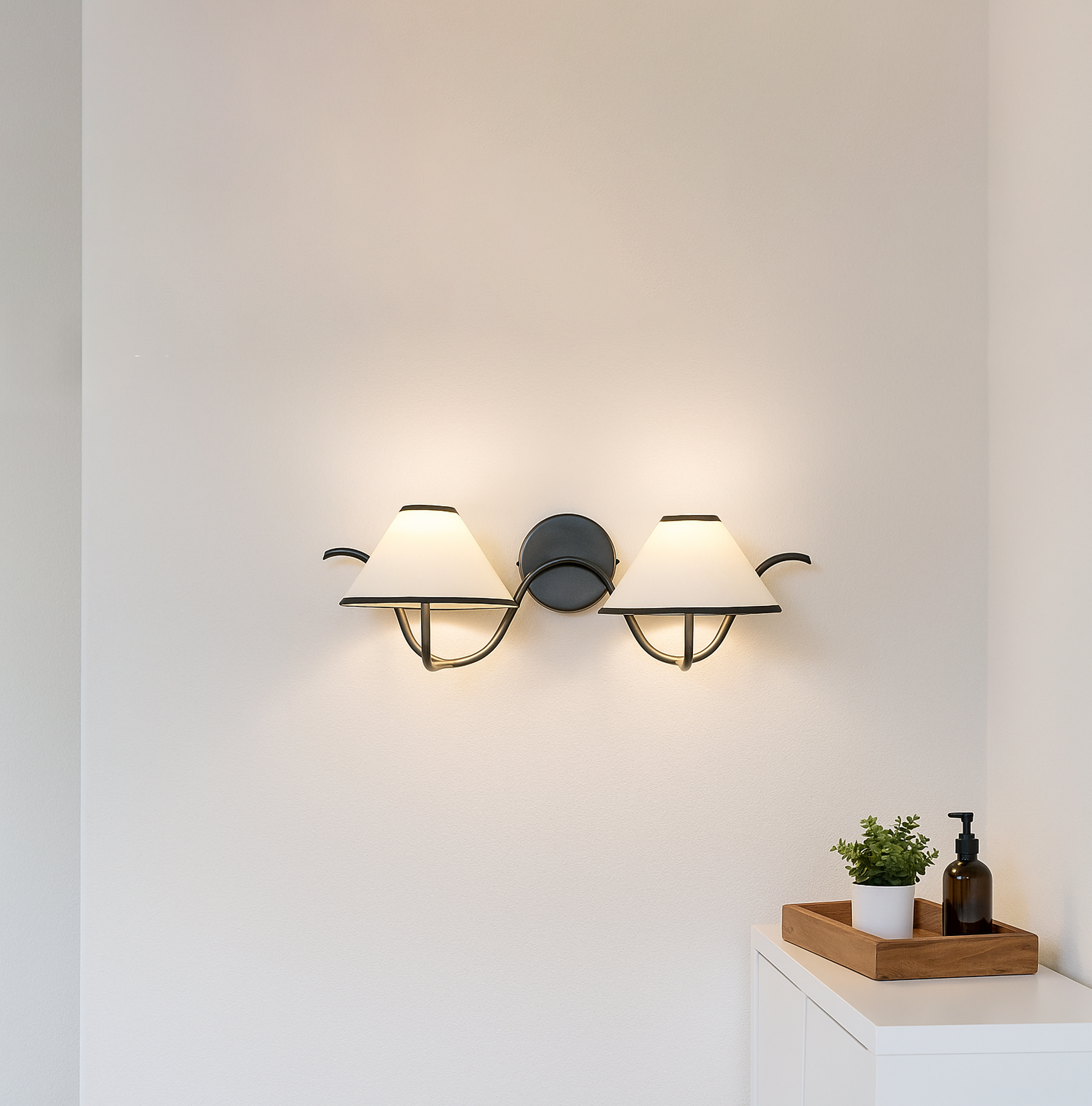 Introducing our exquisite wall lamp, a stunning addition to your home decor. With its sleek matte black color finish, this lamp exudes a sense of contemporary elegance that will enhance any space. The striking design, reminiscent of a delicate two branches, adds a touch of nature-inspired beauty to your walls. Its unique shape, gives it a charming and playful aesthetic that will surely catch the eye of your guests.