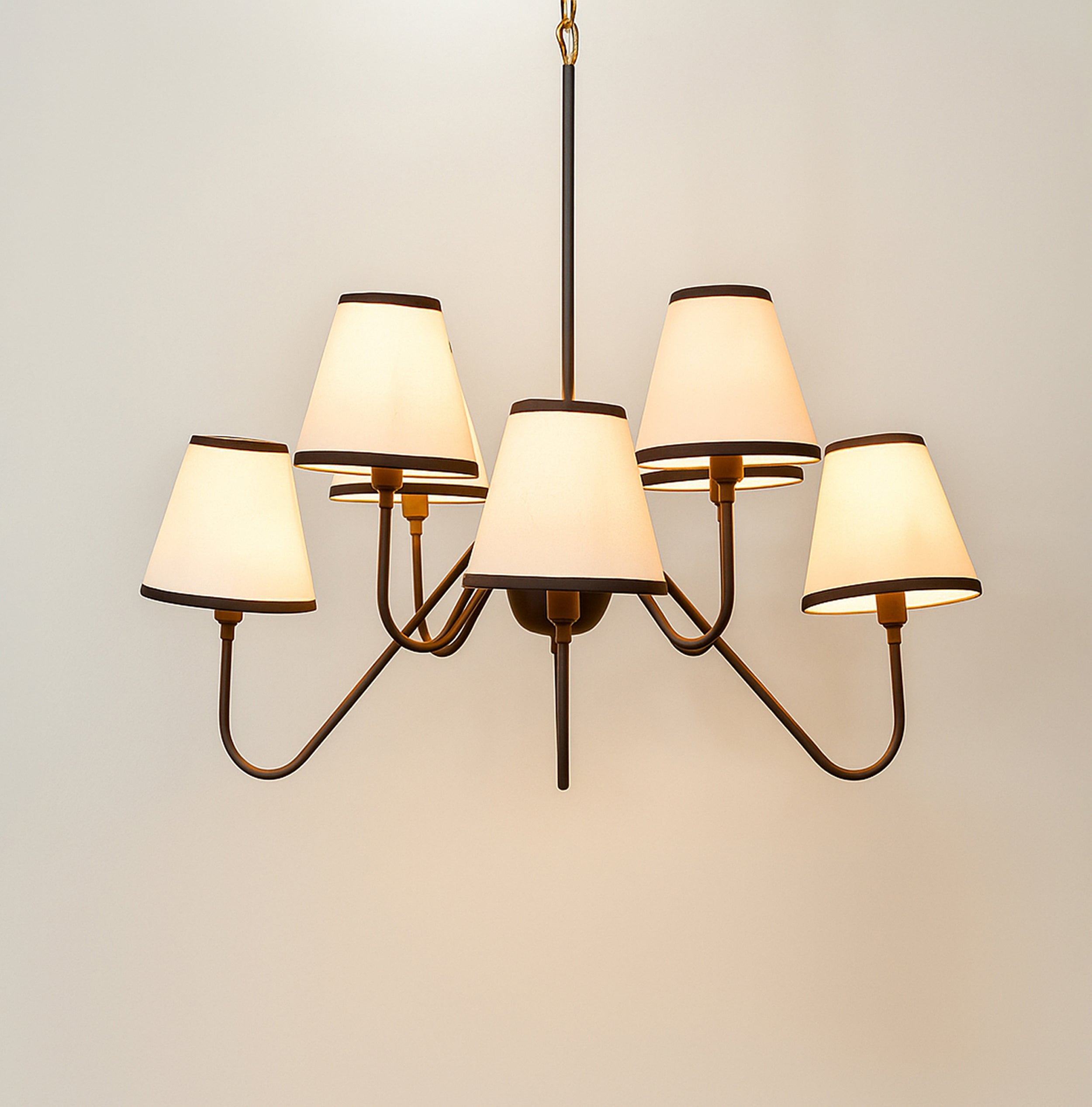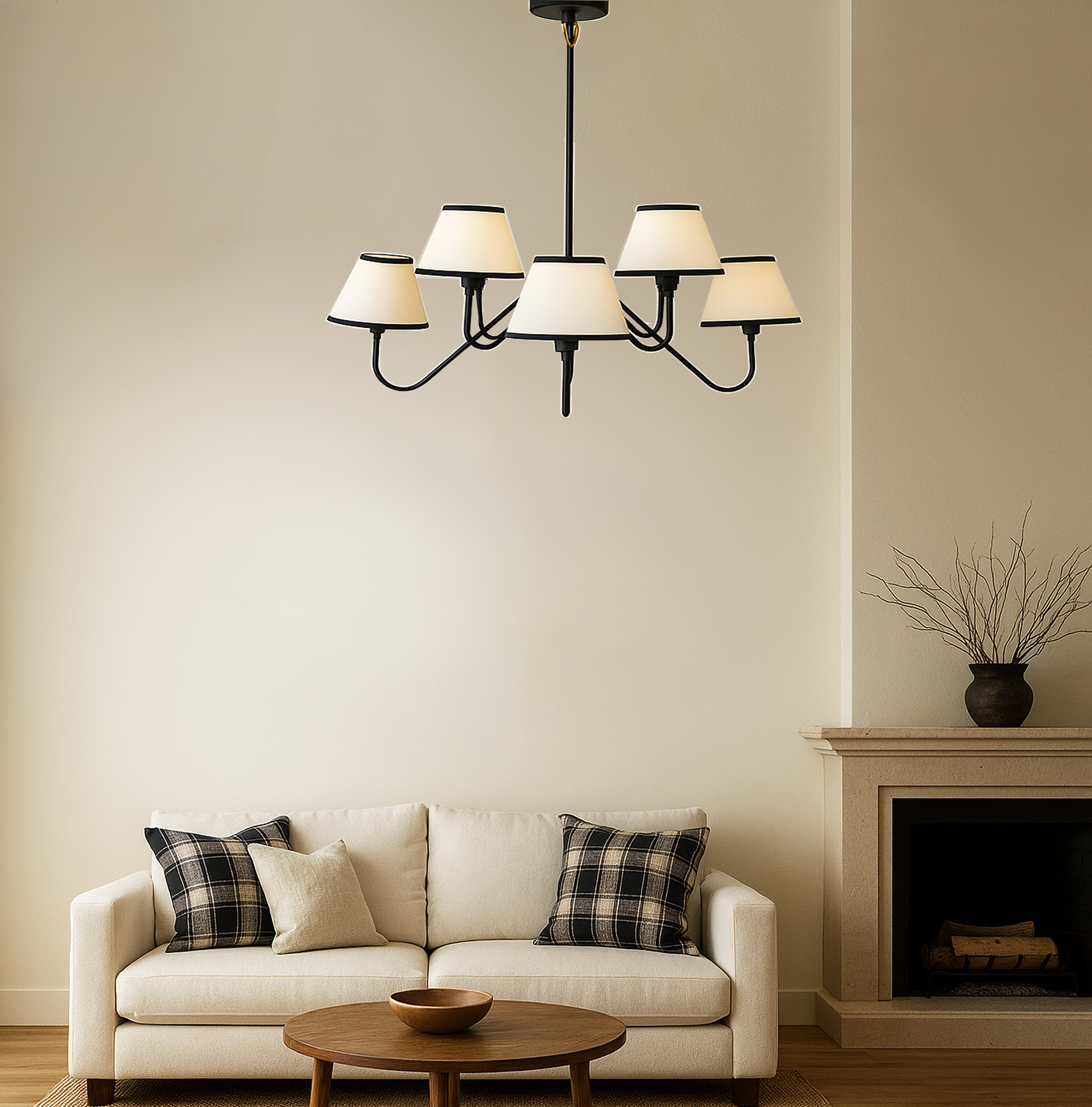 Illuminate your space with this stunning black chandelier featuring five elegant white shades. The vibrant red finish adds a bold touch to any room, while the soft white shades diffuse light beautifully, creating a warm and inviting atmosphere. Perfect for dining rooms, living areas, or entryways, this chandelier combines modern design with classic charm, making it a versatile addition to your home decor. Elevate your interior style and enjoy the perfect blend of color and light with this exquisite lighting fixture.