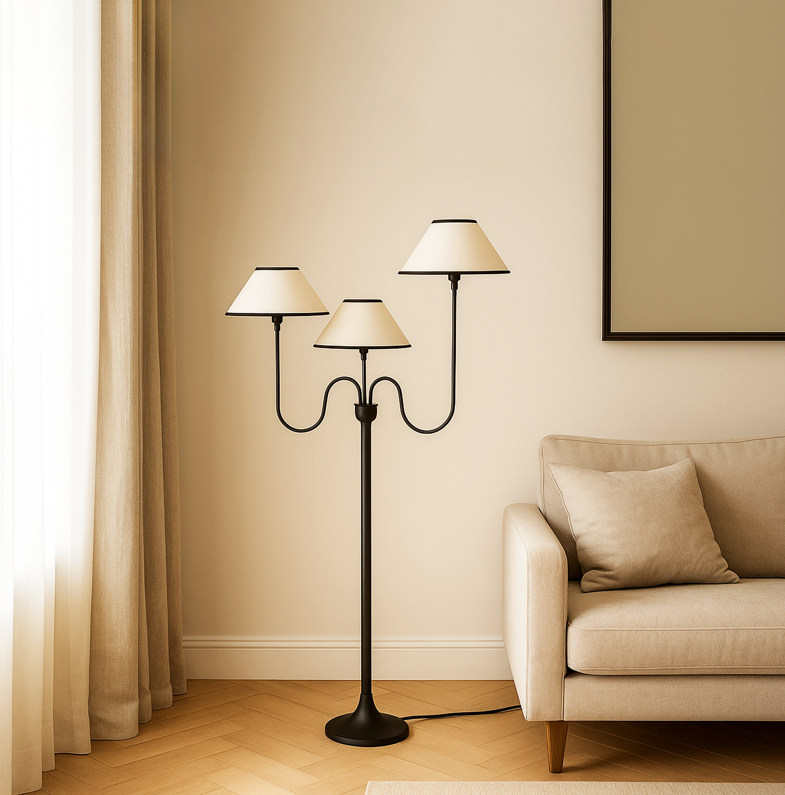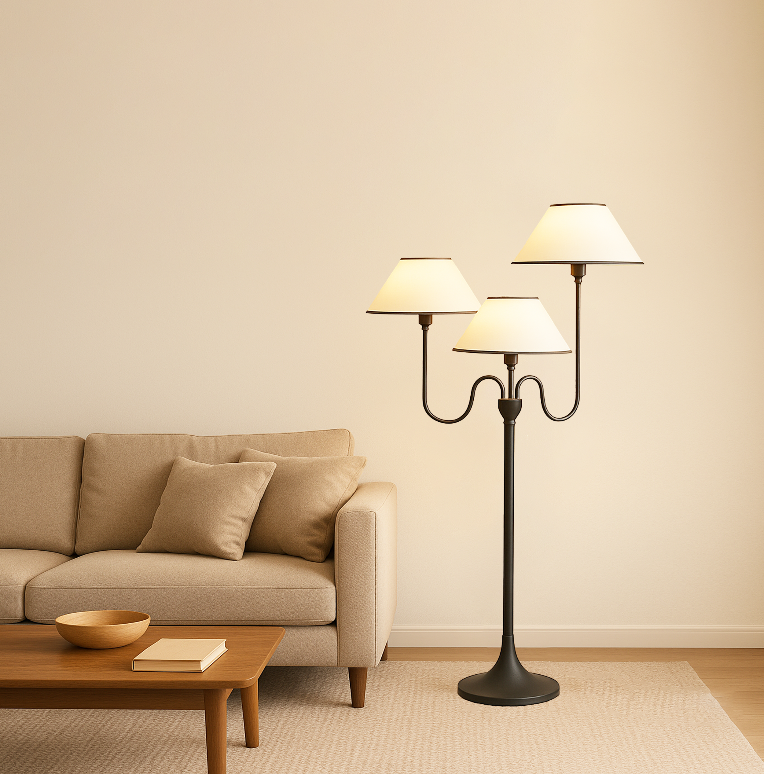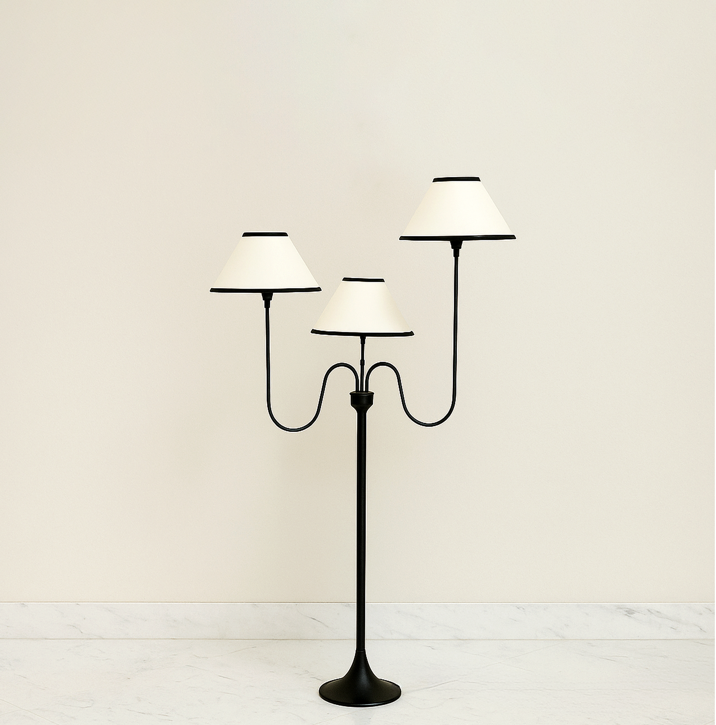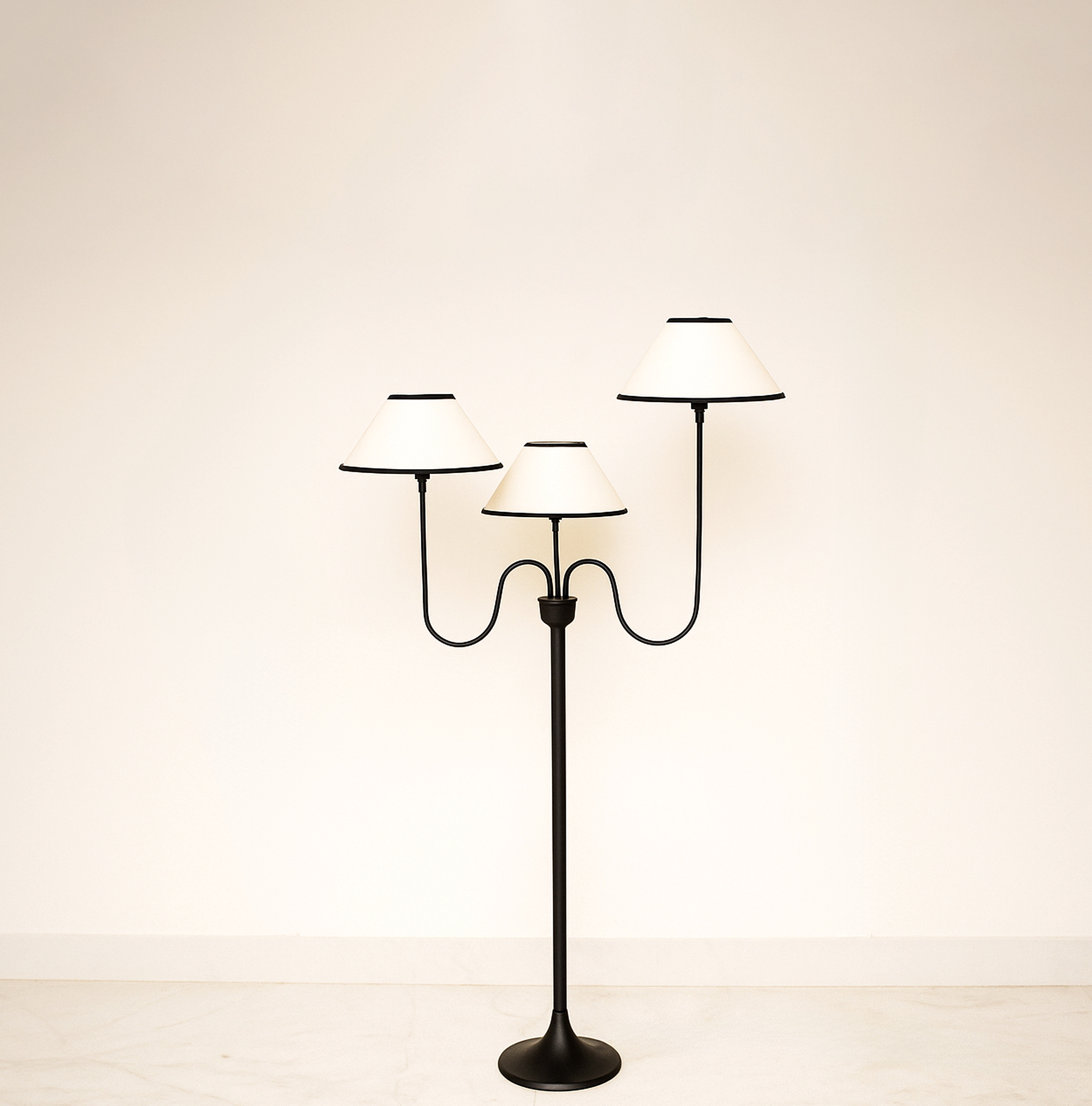Illuminate your space with this elegant three-light lamp, designed to enhance any room's ambiance. Each lamp features a unique shade that diffuses light beautifully, creating a warm and inviting atmosphere. The sturdy base ensures stability, while the modern design complements various decor styles. Perfect for reading, working, or simply adding a touch of sophistication to your home, this lamp is a versatile addition to your lighting collection. Upgrade your interior with this stylish and functional piece today.