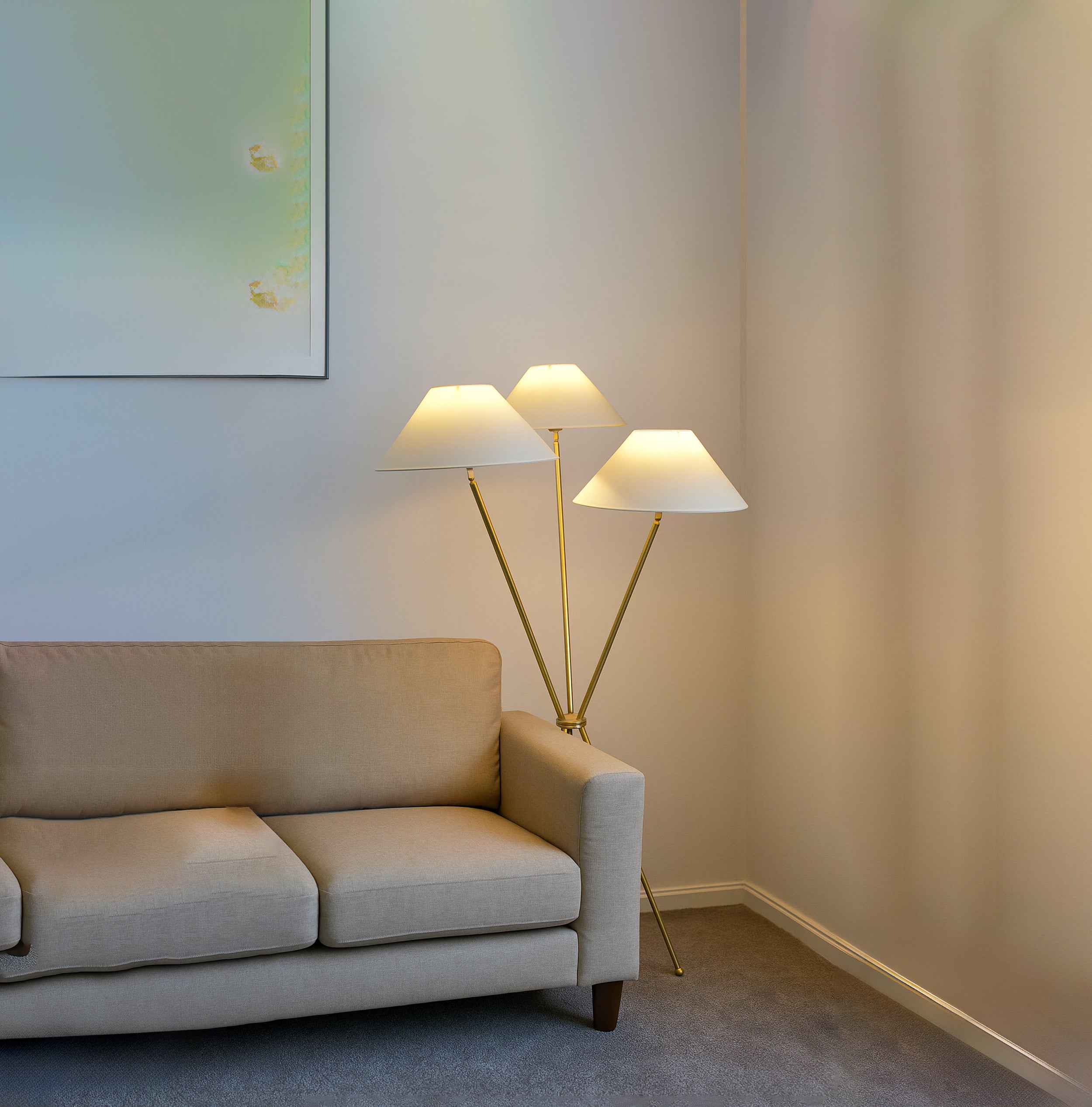 Illuminate your space with this elegant three-light lamp, designed to enhance any room's ambiance. Each lamp features a unique shade that diffuses light beautifully, creating a warm and inviting atmosphere. The sturdy base ensures stability, while the modern design complements various decor styles. Perfect for reading, working, or simply adding a touch of sophistication to your home, this lamp is a versatile addition to your lighting collection. Upgrade your interior with this stylish and functional piece today.