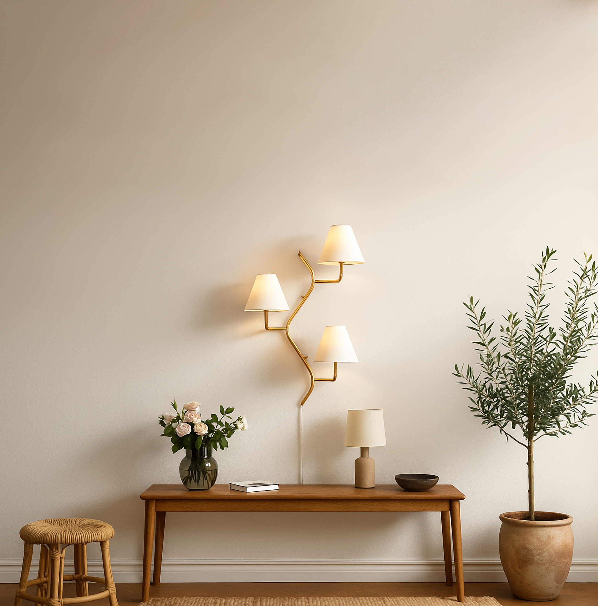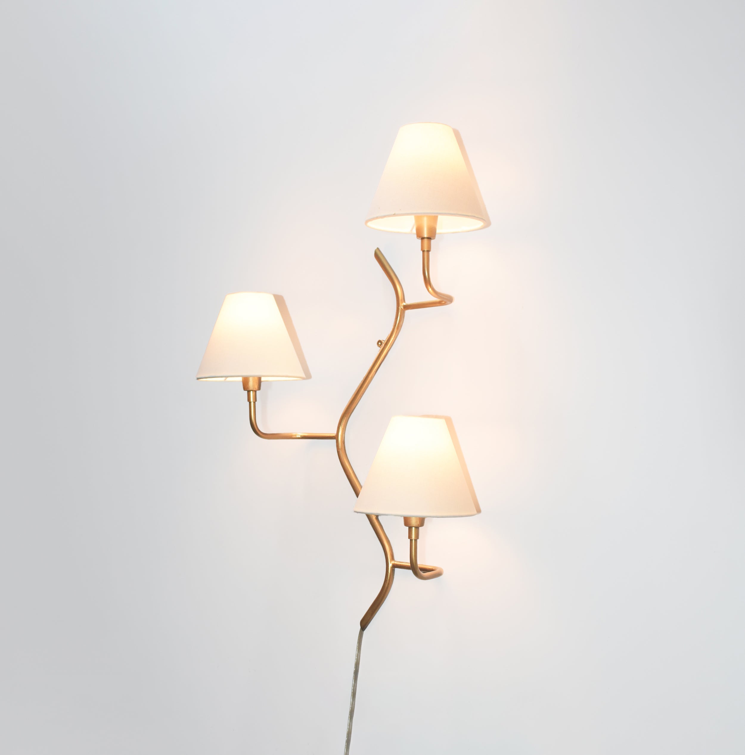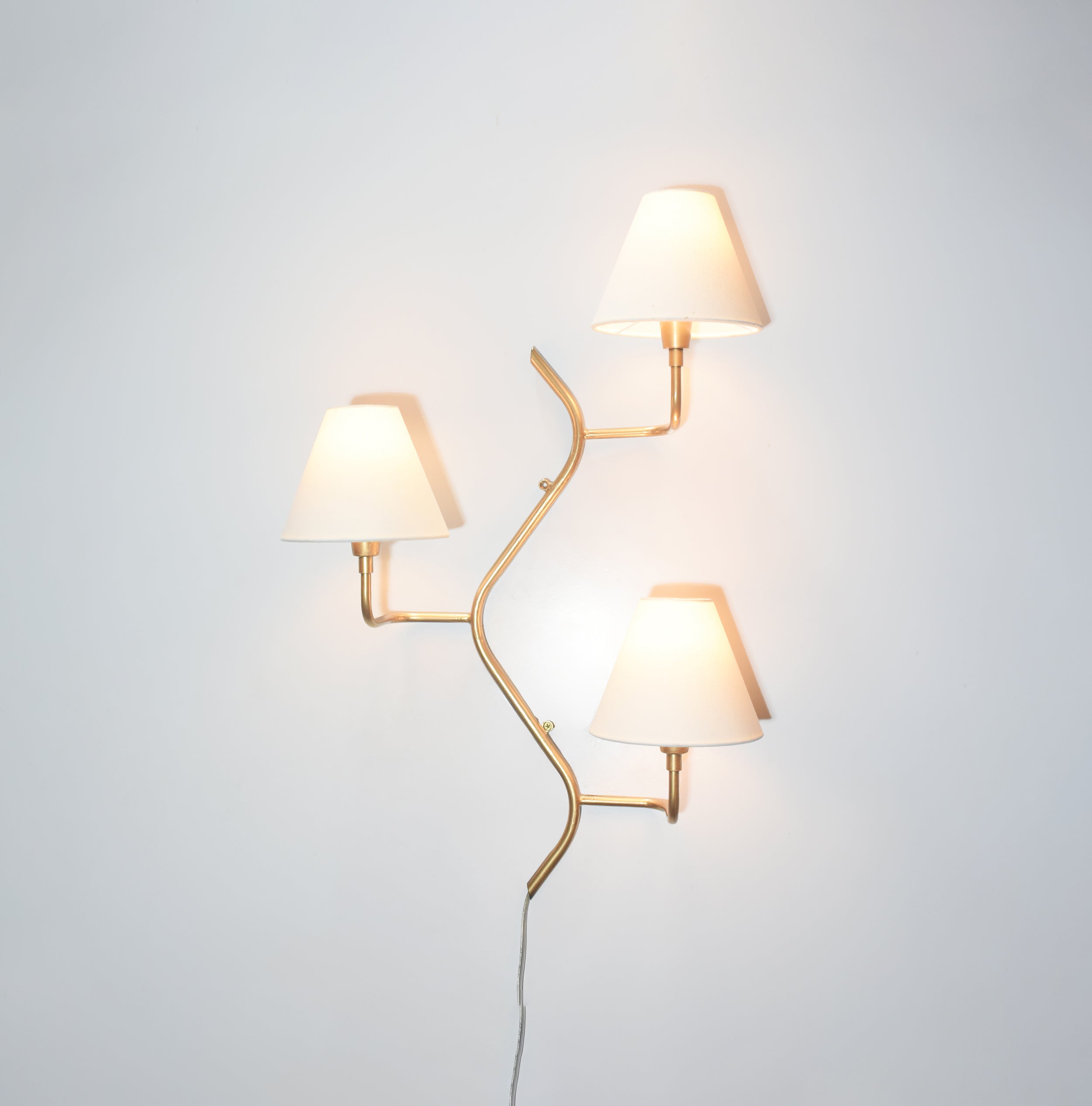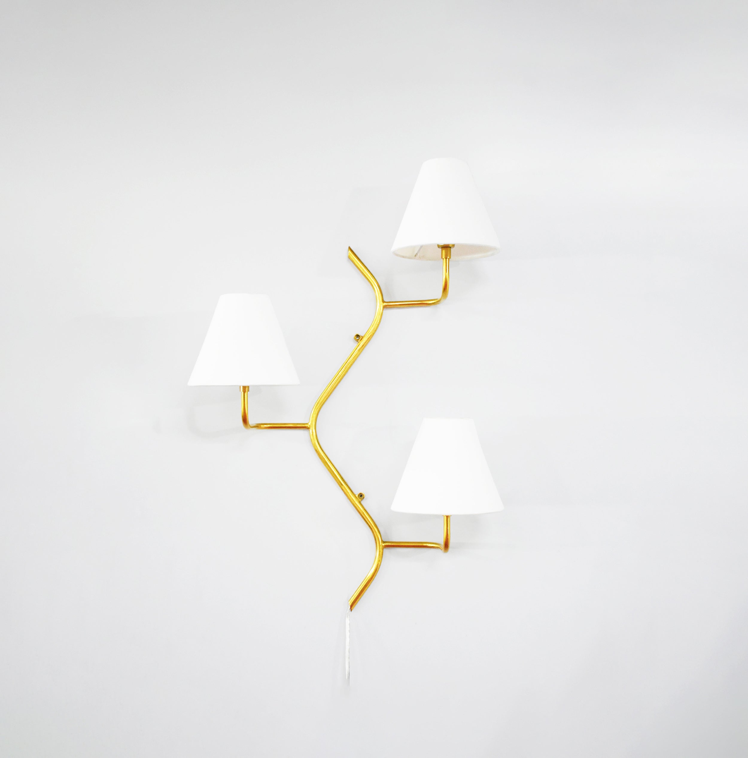 Introducing our exquisite wall lamp, a stunning addition to your home decor. With its sleek golden color finish, this lamp exudes a sense of contemporary elegance that will enhance any space. The striking design, reminiscent of a delicate two branches, adds a touch of nature-inspired beauty to your walls. Its unique shape, gives it a charming and playful aesthetic that will surely catch the eye of your guests.