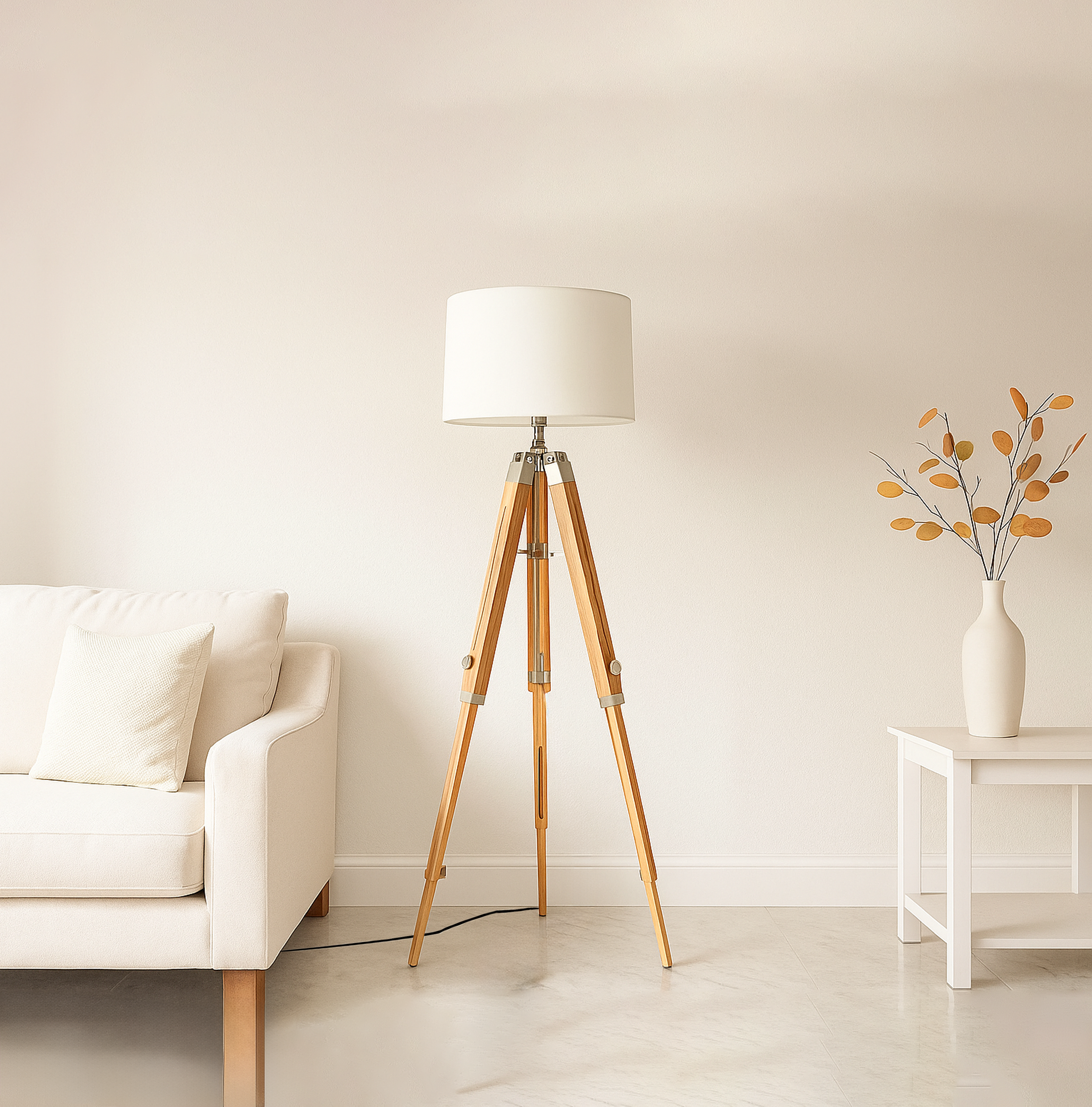 lluminate your space with our stylish tripod lamp, designed to blend seamlessly with any decor. Featuring a sleek, modern design, this lamp stands tall on three sturdy legs, providing both stability and elegance. The crisp white shade diffuses light beautifully, creating a warm and inviting atmosphere in your living room, bedroom, or office. Its versatile aesthetic makes it perfect for both contemporary and traditional settings, while the adjustable height allows you to customize the lighting to suit your needs. Upgrade your home lighting with this eye-catching tripod lamp that not only serves a functional purpose but also acts as a stunning focal point in your interior design.