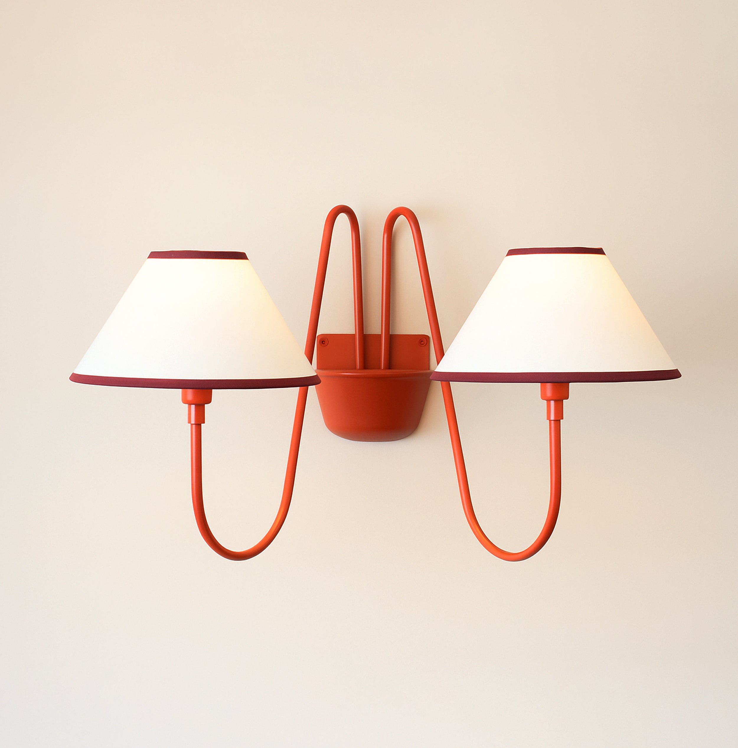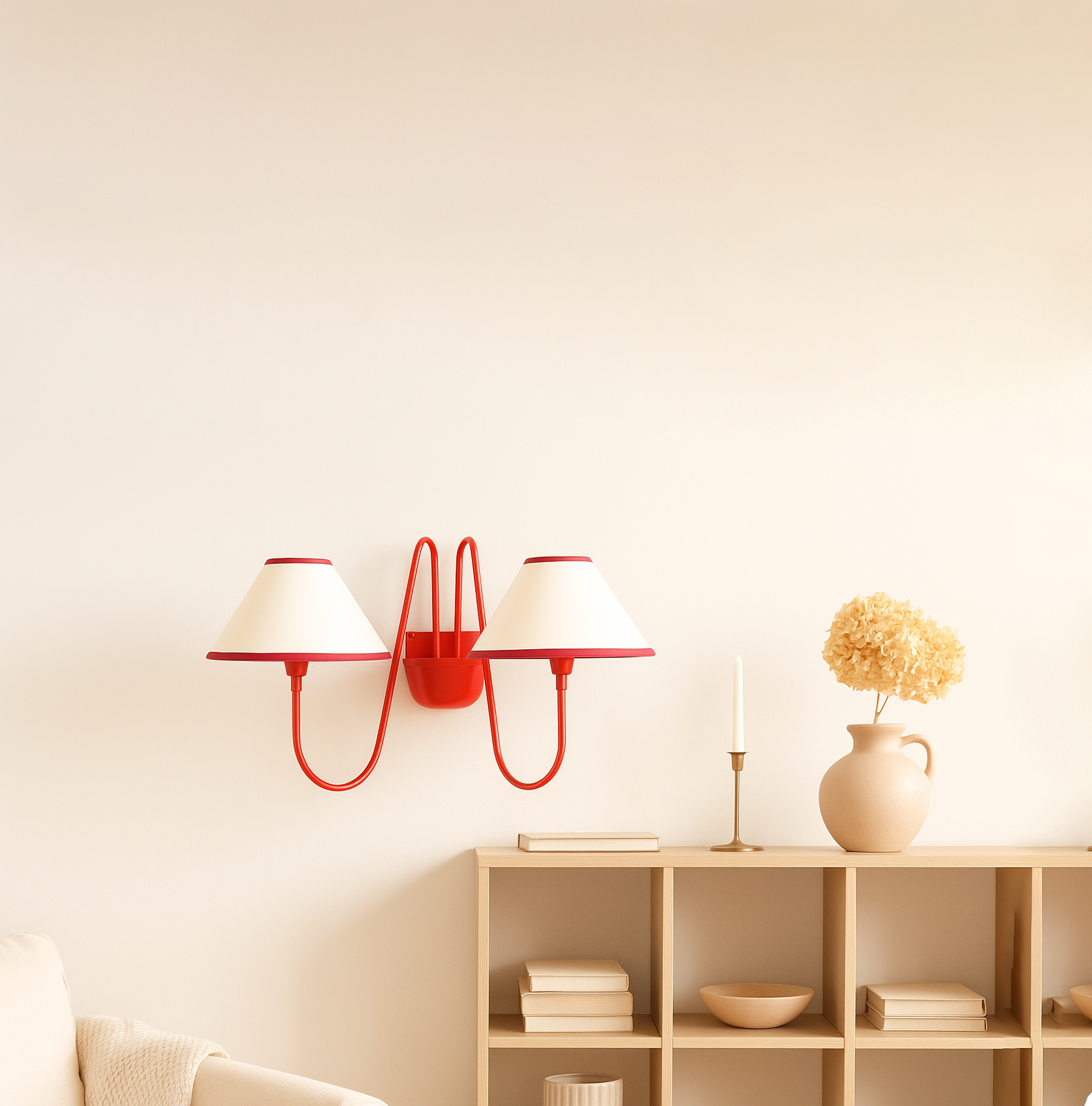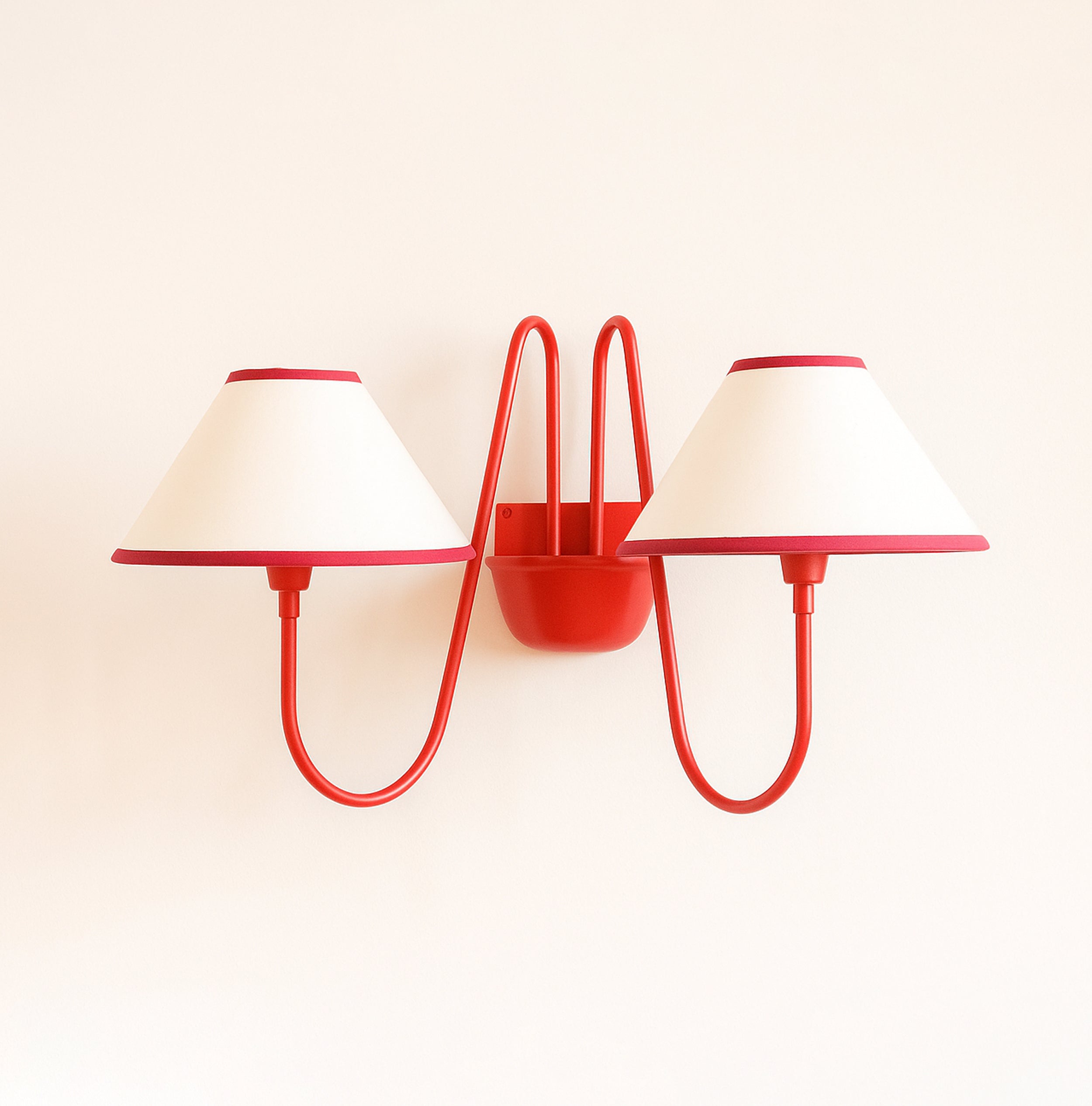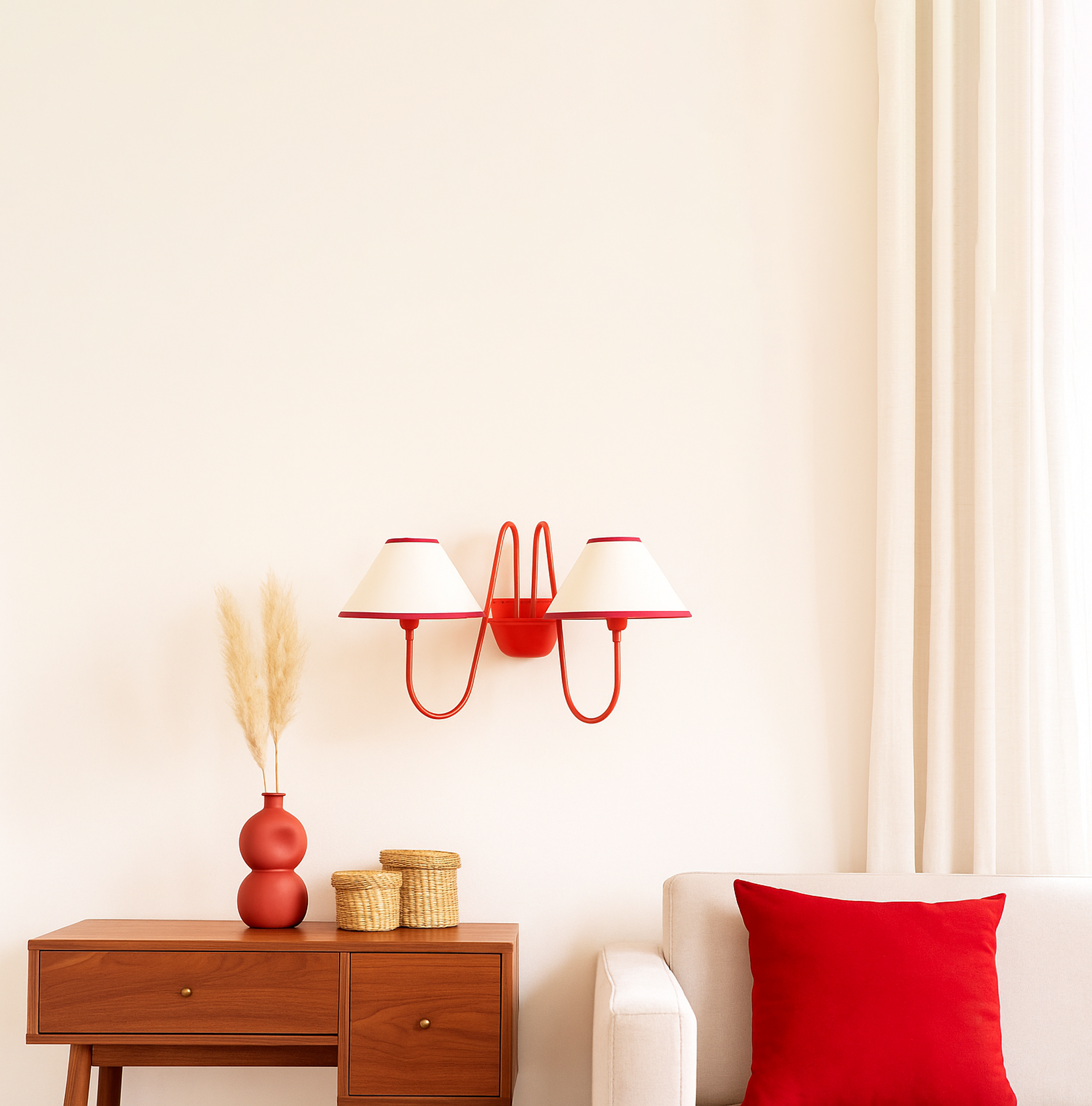 Introducing our exquisite wall lamp, a stunning addition to your home decor. With its sleek red color finish, this lamp exudes a sense of contemporary elegance that will enhance any space. The striking design, reminiscent of a delicate two branches, adds a touch of nature-inspired beauty to your walls. Its unique shape, gives it a charming and playful aesthetic that will surely catch the eye of your guests.