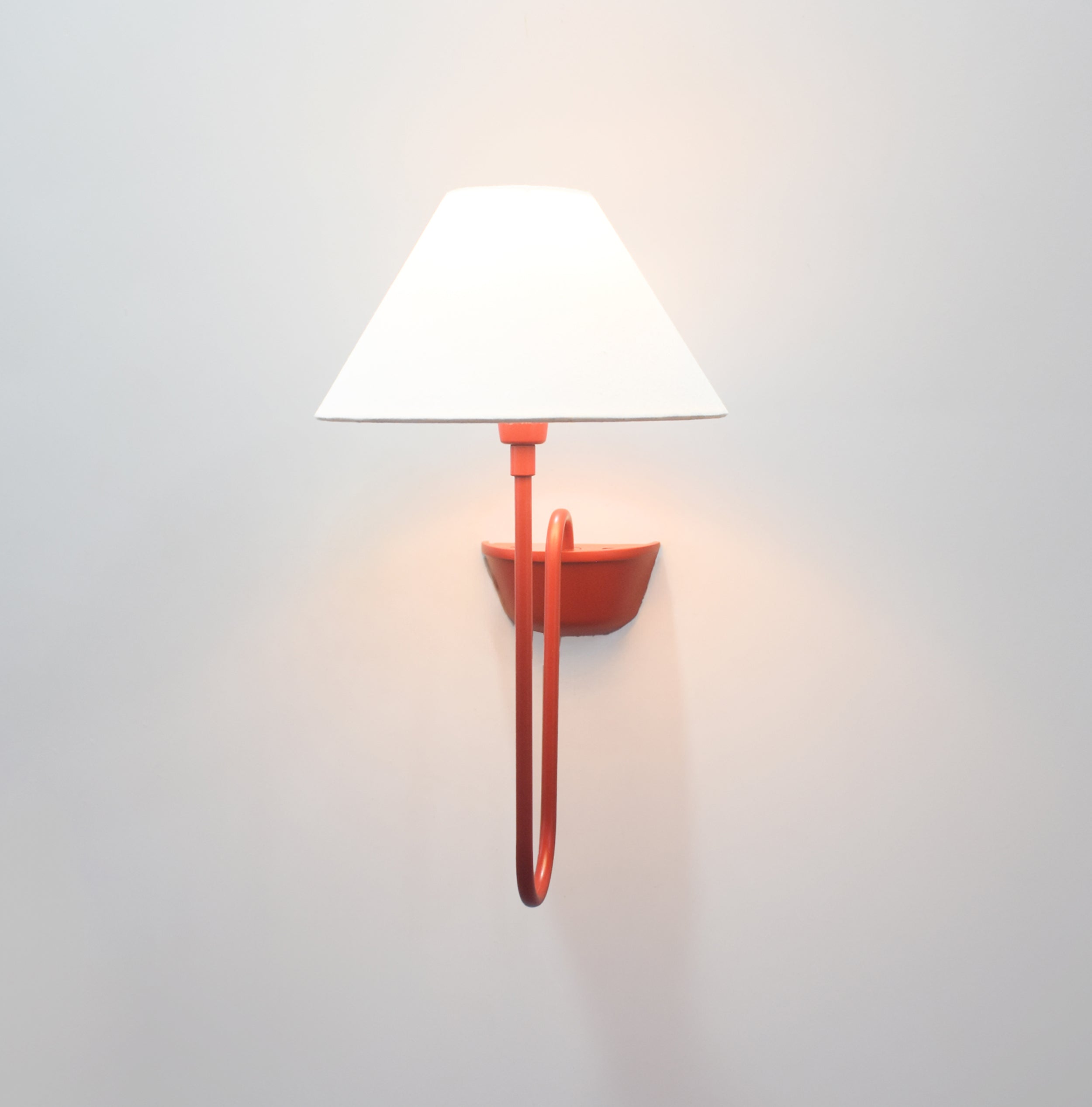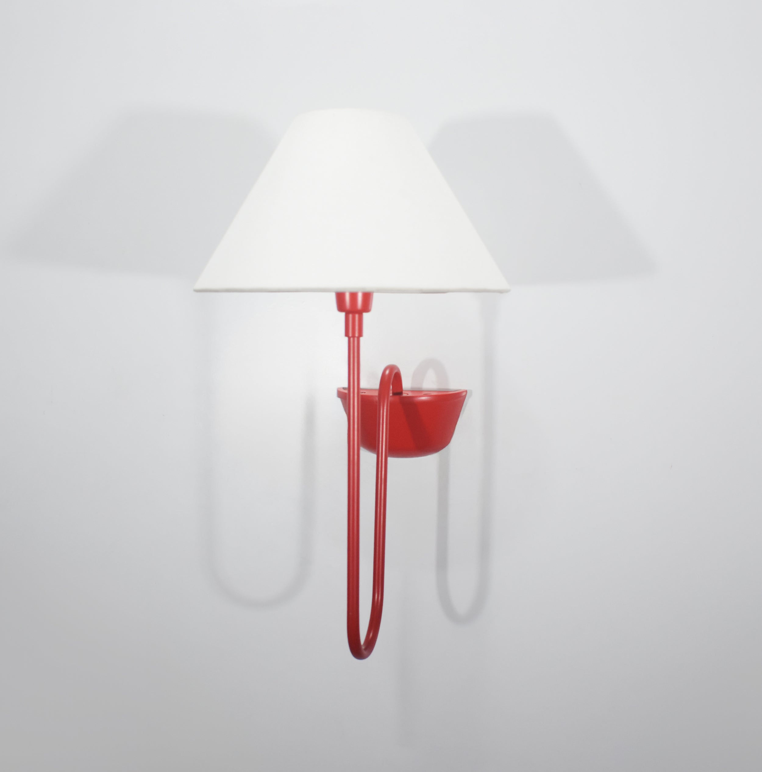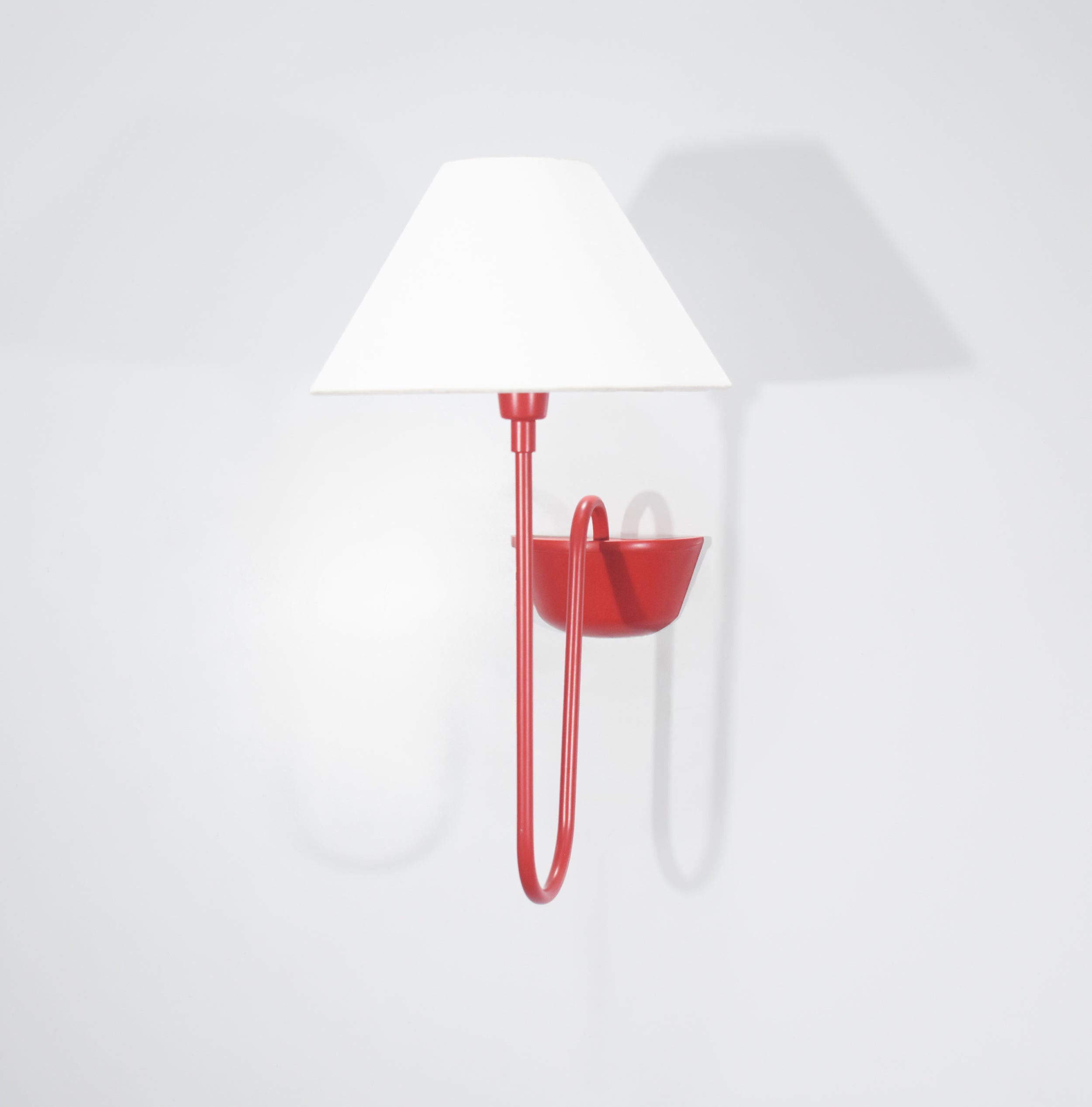 Introducing our exquisite wall lamp, a stunning addition to your home decor. With its sleek red color finish, this lamp exudes a sense of contemporary elegance that will enhance any space. The striking design, reminiscent of a delicate one branch design, adds a touch of nature-inspired beauty to your walls. Its unique shape, gives it a charming and playful aesthetic that will surely catch the eye of your guests.