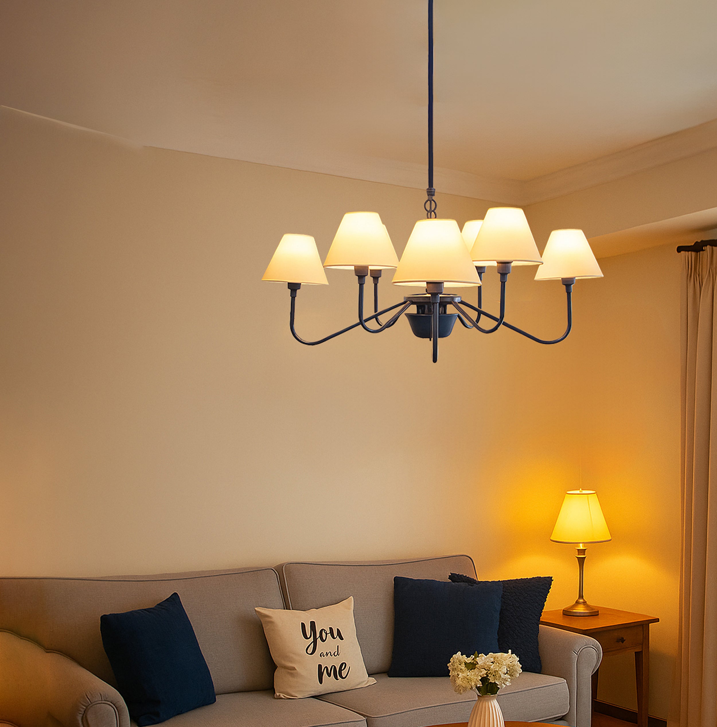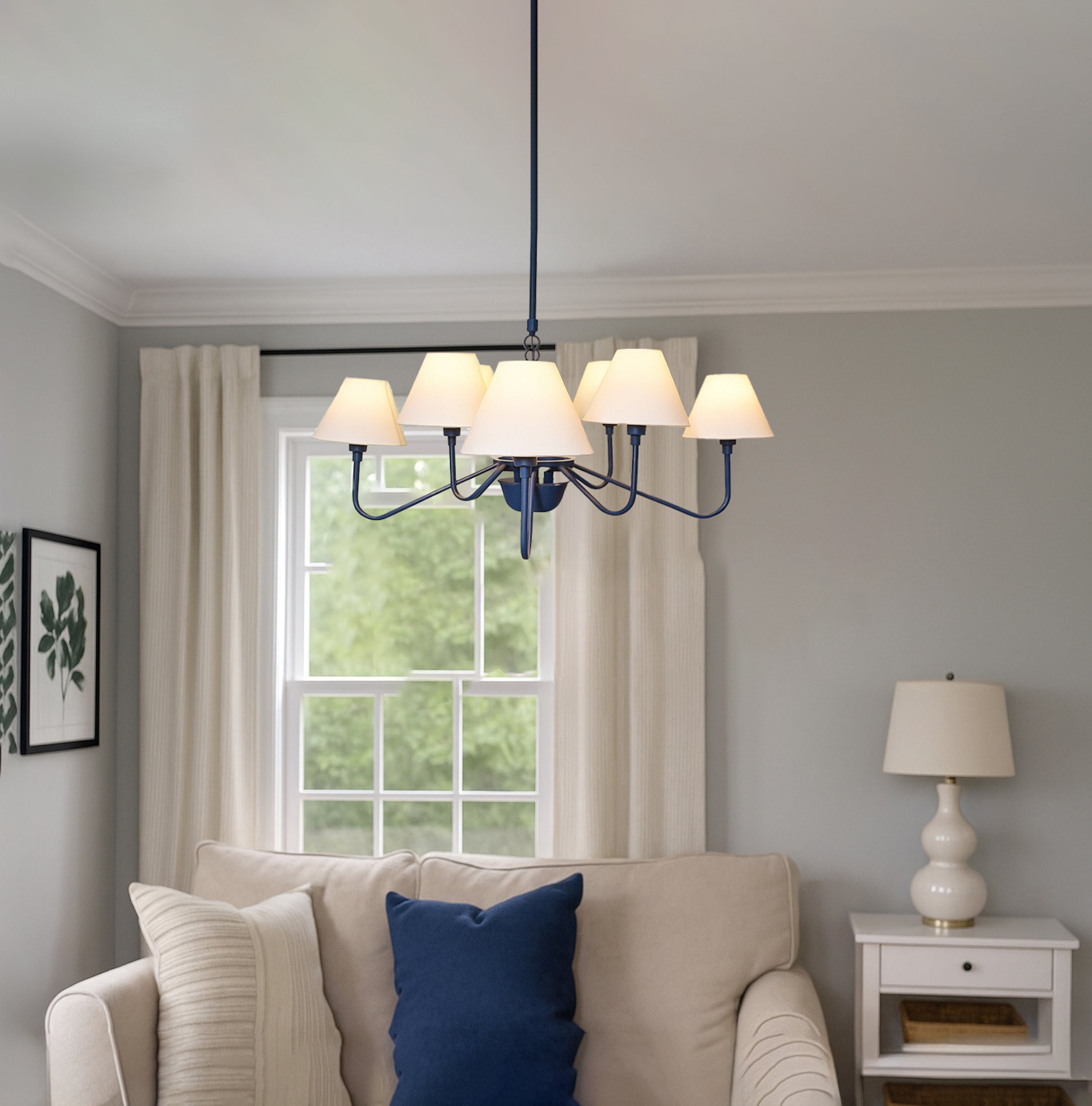 Illuminate your space with this stunning matte black chandelier featuring five elegant white shades. The vibrant red finish adds a bold touch to any room, while the soft white shades diffuse light beautifully, creating a warm and inviting atmosphere. Perfect for dining rooms, living areas, or entryways, this chandelier combines modern design with classic charm, making it a versatile addition to your home decor. Elevate your interior style and enjoy the perfect blend of color and light with this exquisite lighting fixture.
