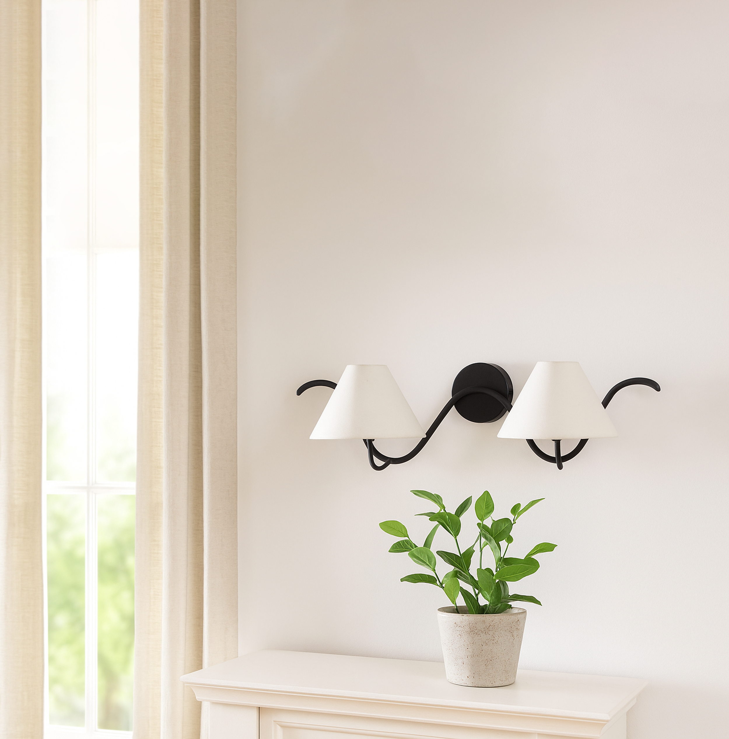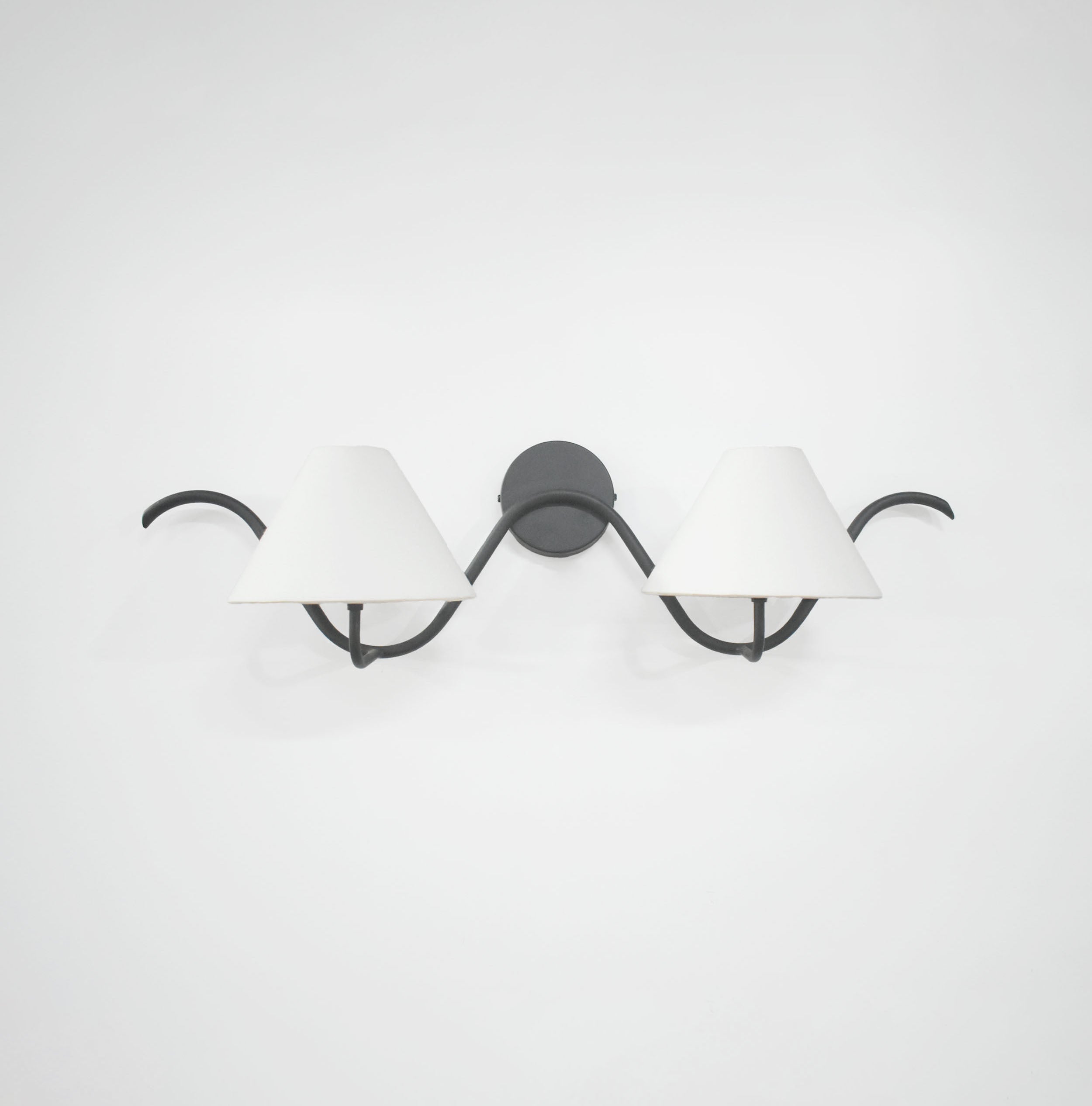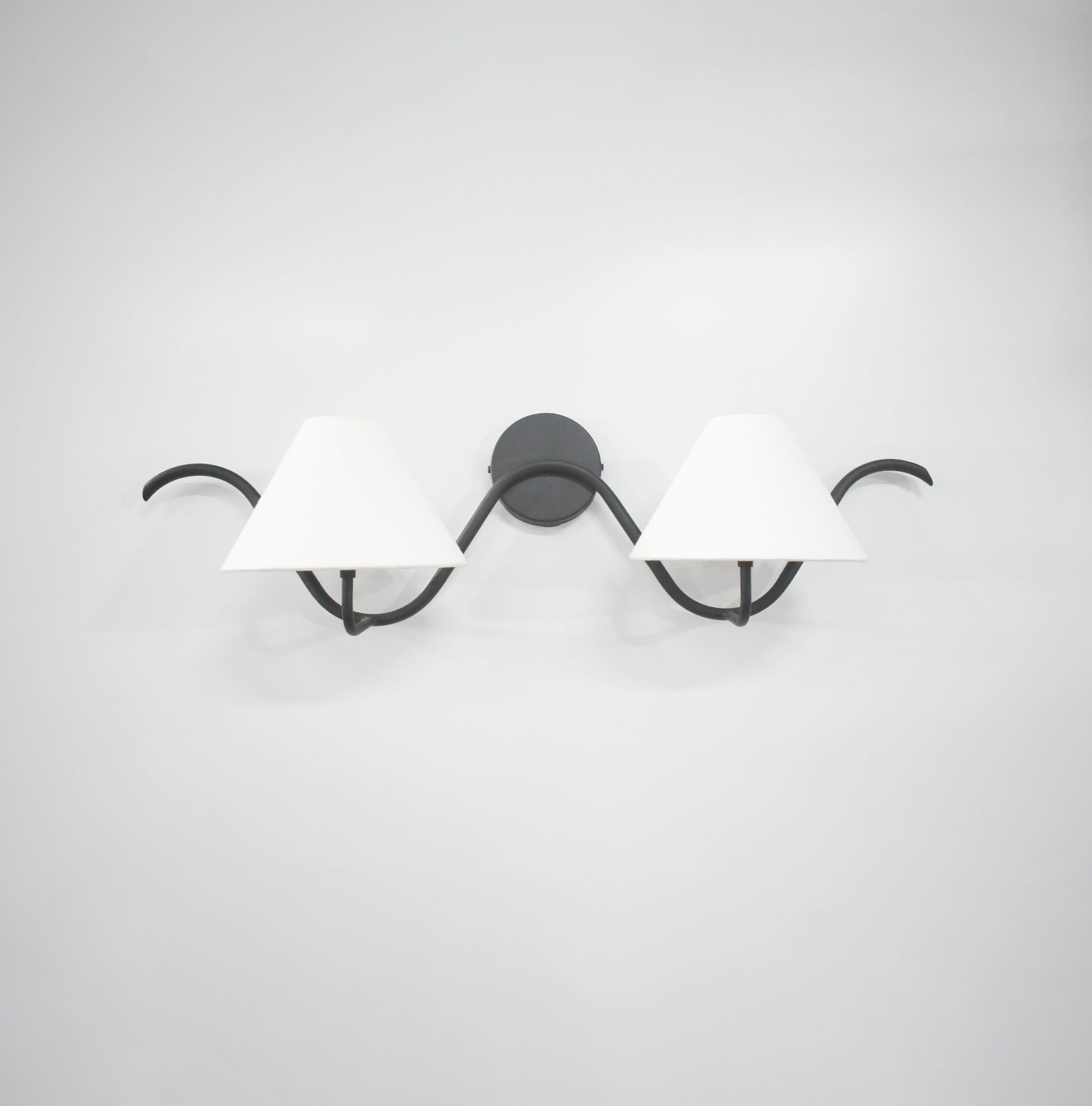 Introducing our exquisite wall lamp, a stunning addition to your home decor. With its sleek black color finish, this lamp exudes a sense of contemporary elegance that will enhance any space. The striking design, reminiscent of a delicate two branches, adds a touch of nature-inspired beauty to your walls. Its unique shape, gives it a charming and playful aesthetic that will surely catch the eye of your guests.