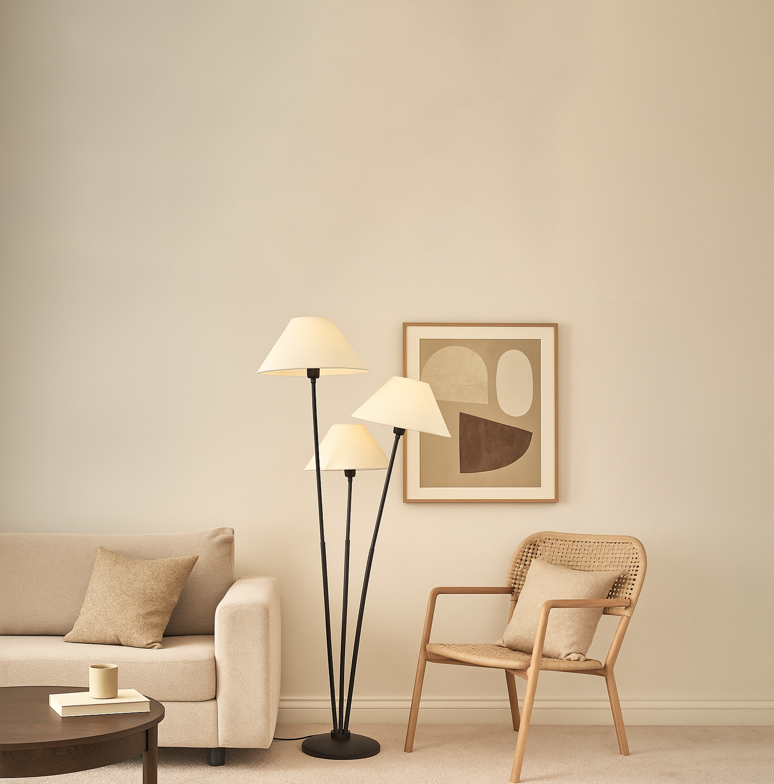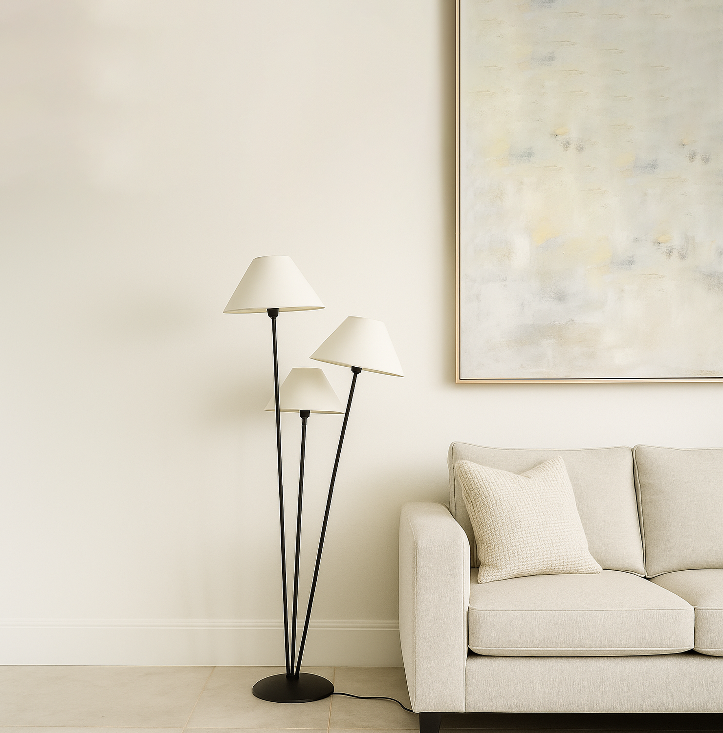 Sophisticated Lighting: Black Floor Lamp with Three Shades matte black