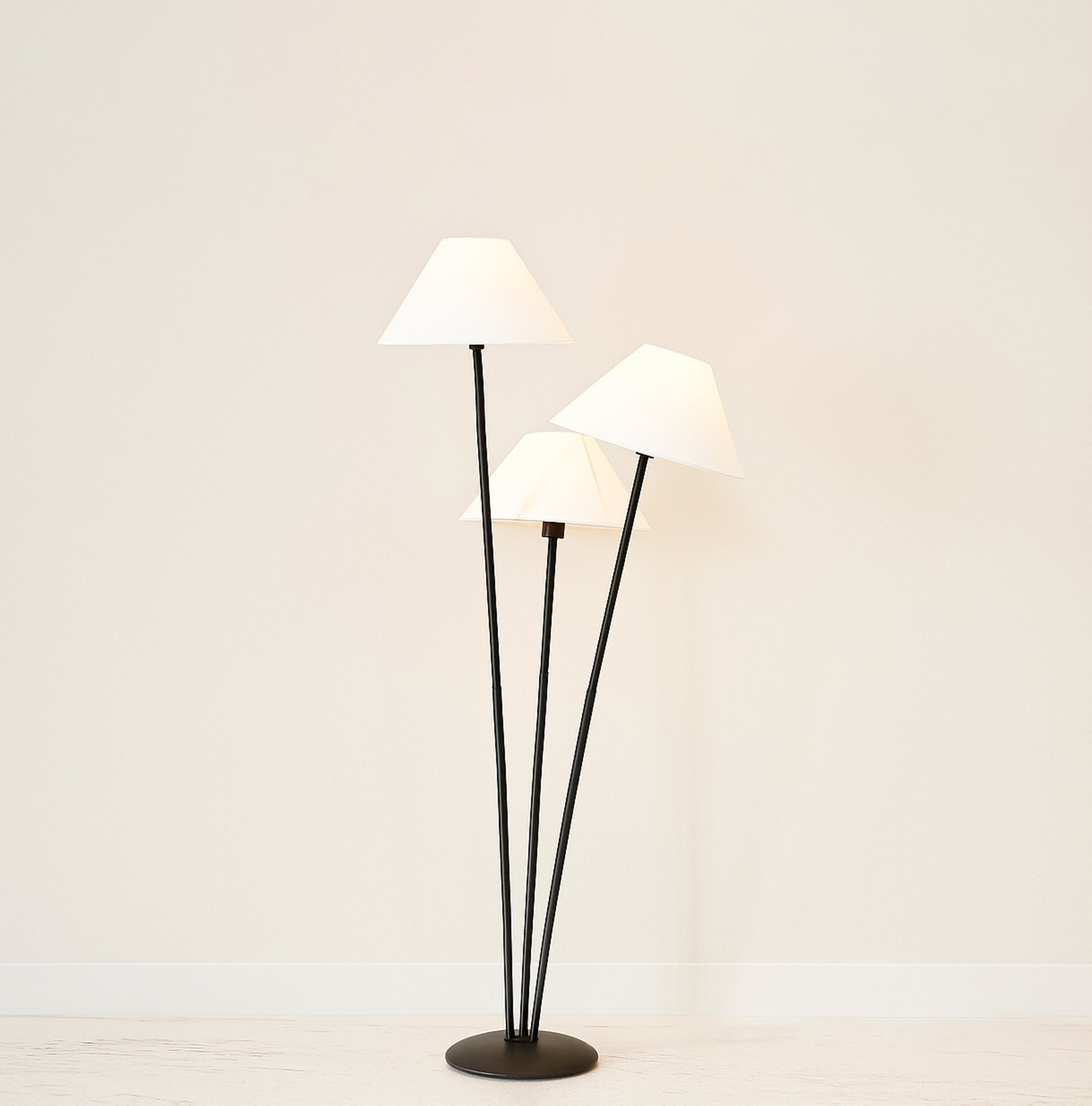 Illuminate your space with this elegant three-light lamp, designed to enhance any room's ambiance. Each lamp features a unique shade that diffuses light beautifully, creating a warm and inviting atmosphere. The sturdy base ensures stability, while the modern design complements various decor styles. Perfect for reading, working, or simply adding a touch of sophistication to your home, this lamp is a versatile addition to your lighting collection. Upgrade your interior with this stylish and functional piece today.