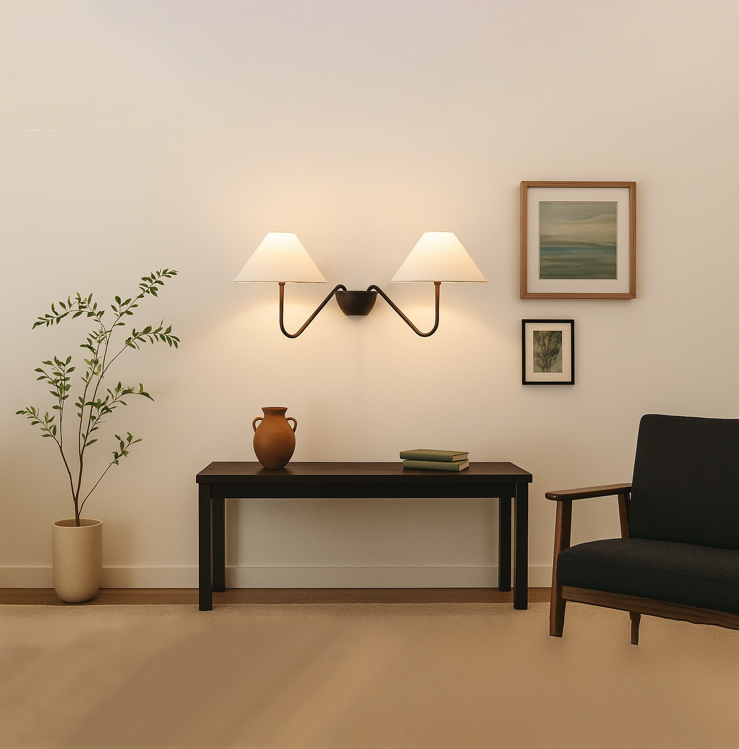 Introducing our exquisite wall lamp, a stunning addition to your home decor. With its sleek Matte black color finish, this lamp exudes a sense of contemporary elegance that will enhance any space. The striking design, reminiscent of a delicate two branches, adds a touch of nature-inspired beauty to your walls. Its unique shape, gives it a charming and playful aesthetic that will surely catch the eye of your guests.
