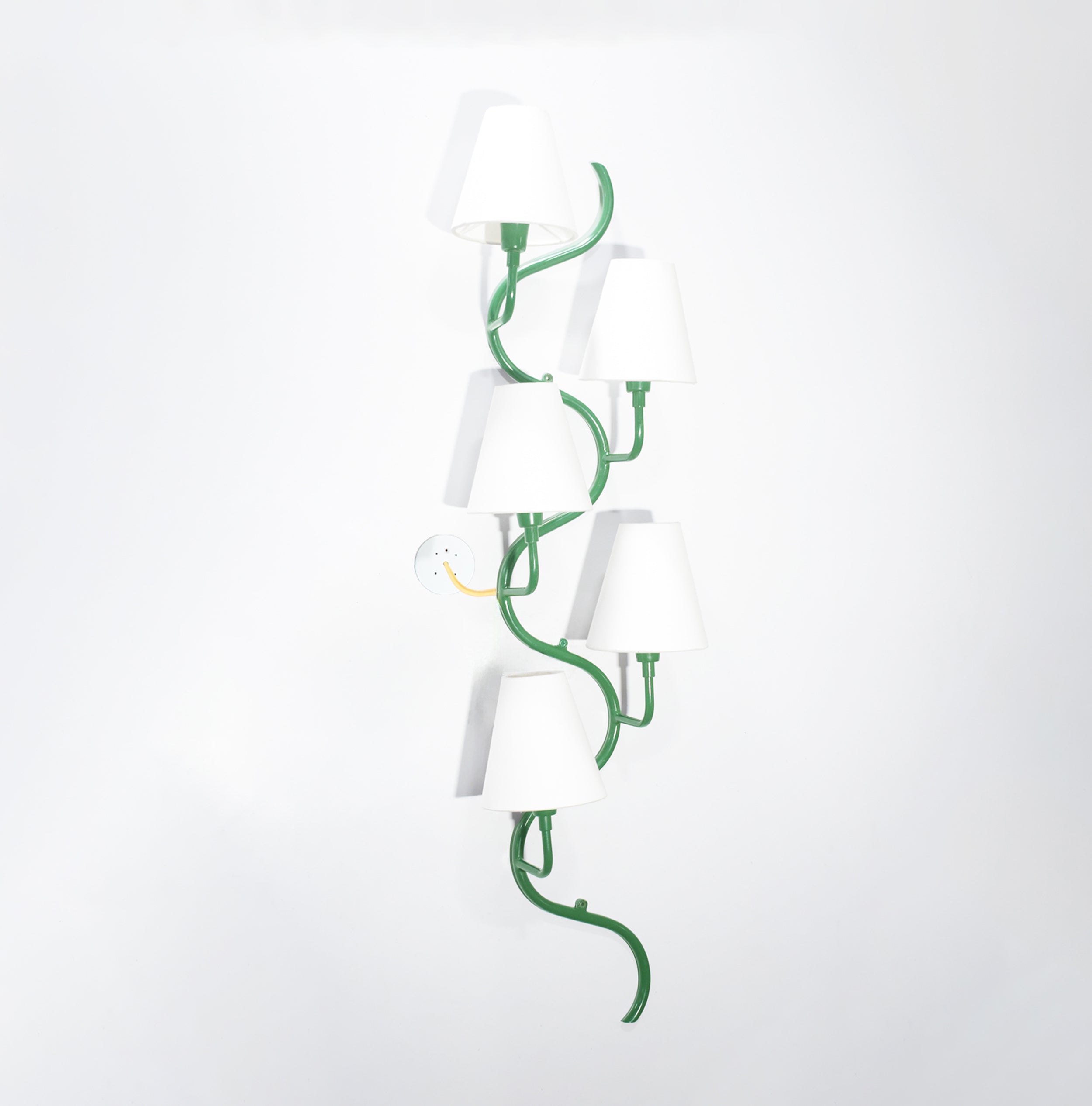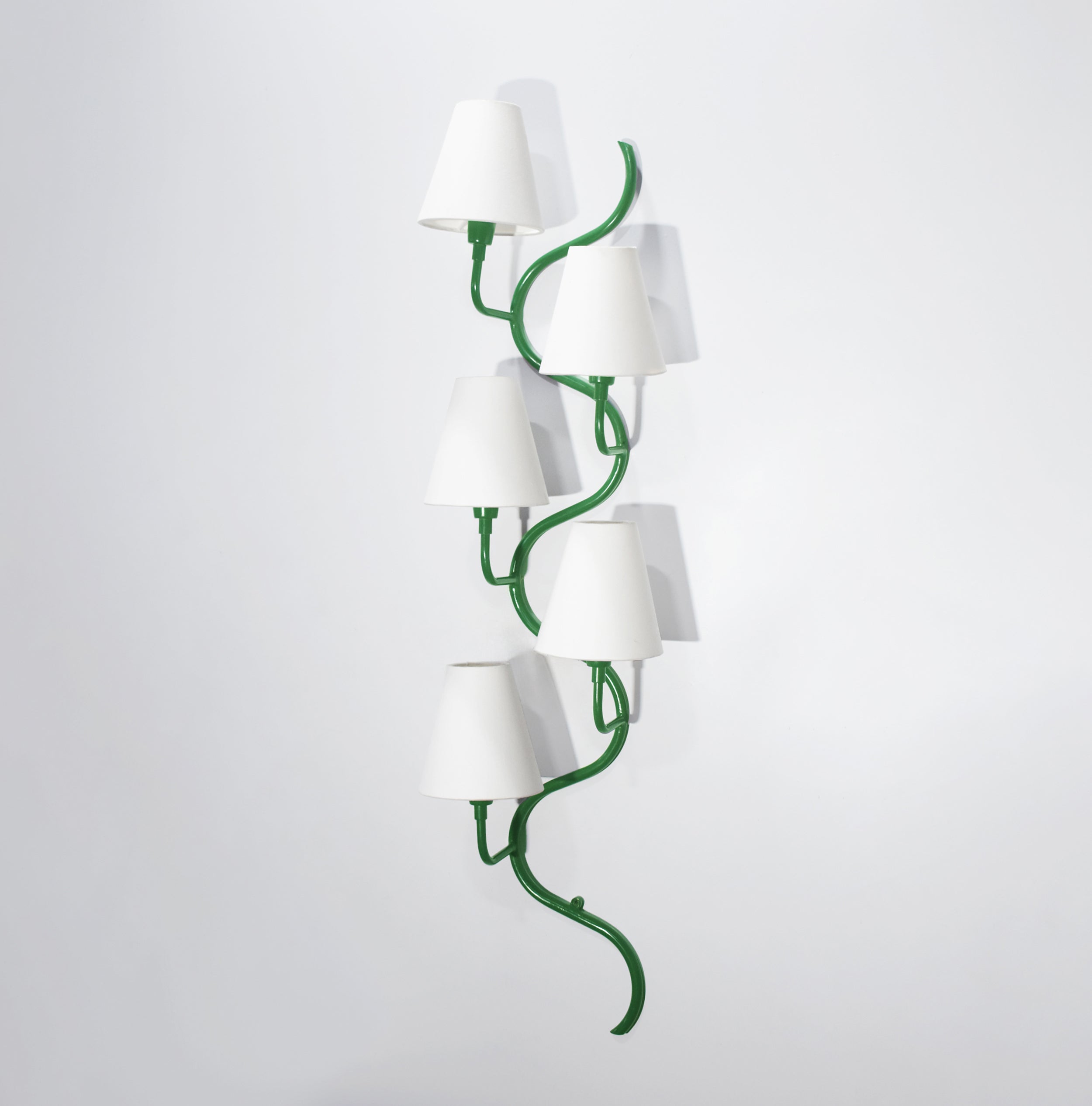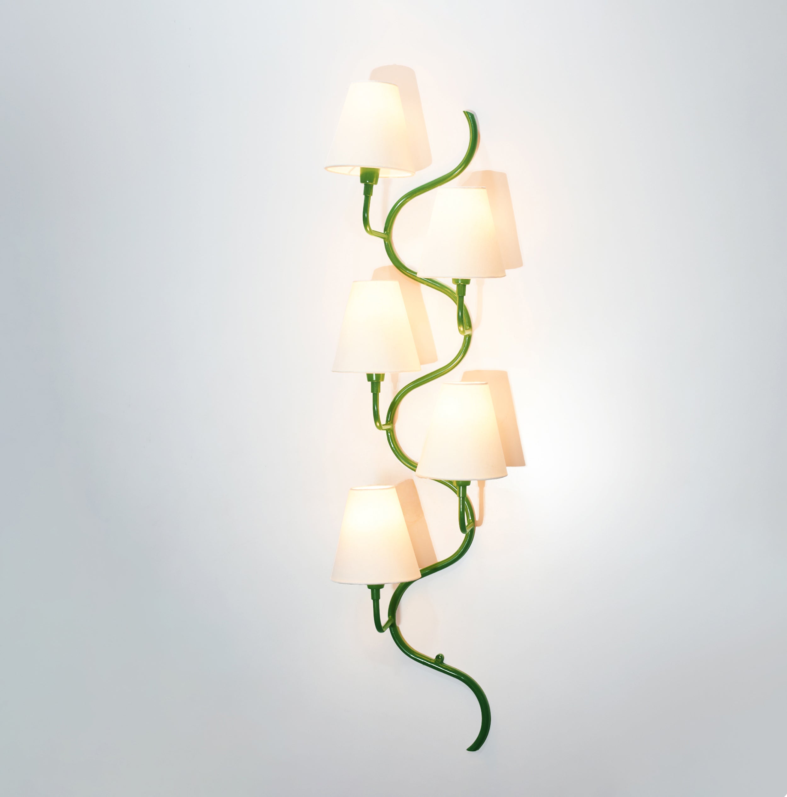 Introducing our exquisite wall lamp, a stunning addition to your home decor. With its sleek green color finish, this lamp exudes a sense of contemporary elegance that will enhance any space. The striking design, reminiscent of a delicate one branch design, adds a touch of nature-inspired beauty to your walls. Its unique shape, gives it a charming and playful aesthetic that will surely catch the eye of your guests.