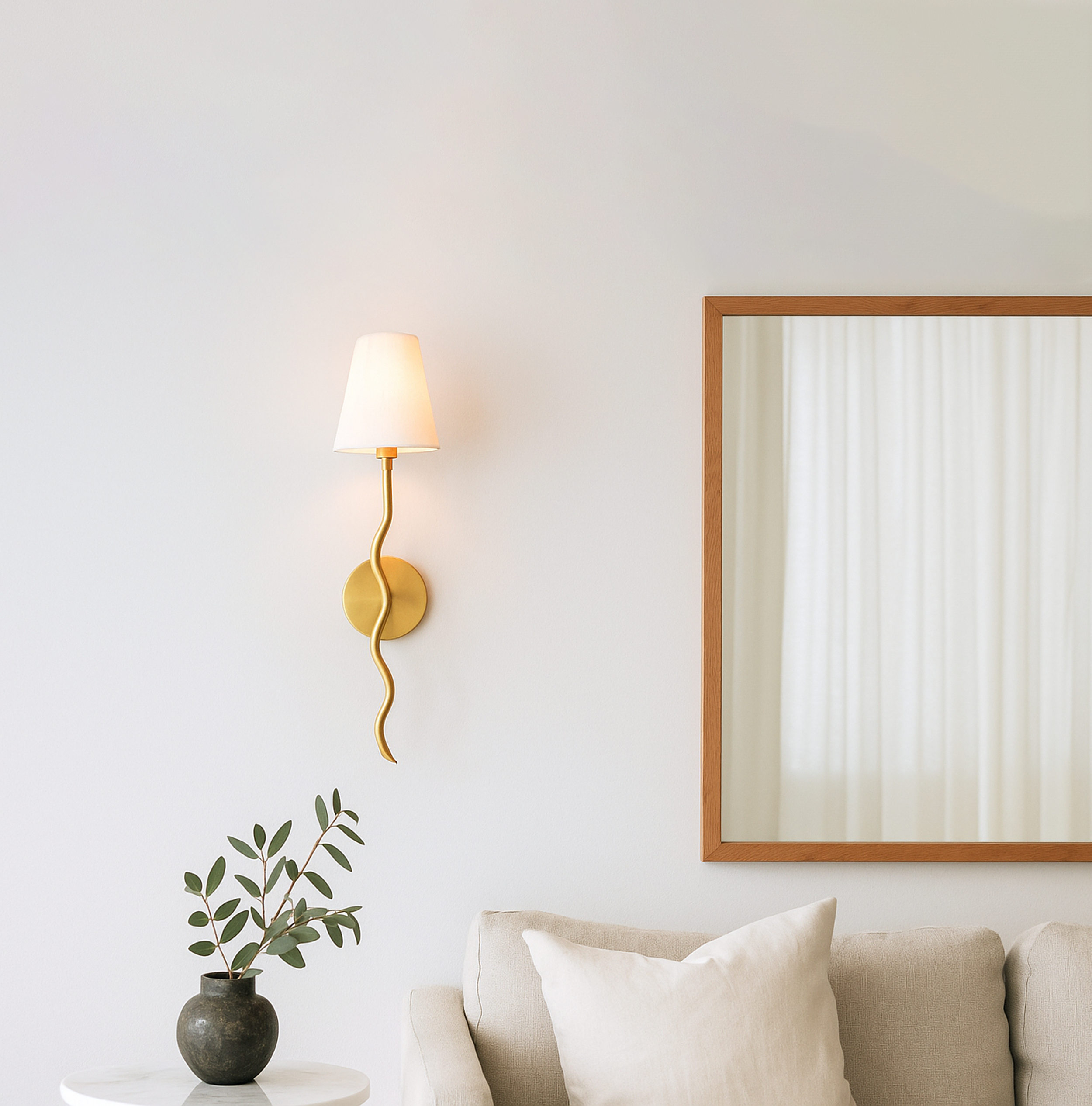 Introducing our exquisite wall lamp, a stunning addition to your home decor. With its sleek golden color finish, this lamp exudes a sense of contemporary elegance that will enhance any space. The striking design, reminiscent of a delicate one branch design, adds a touch of nature-inspired beauty to your walls. Its unique shape, gives it a charming and playful aesthetic that will surely catch the eye of your guests.