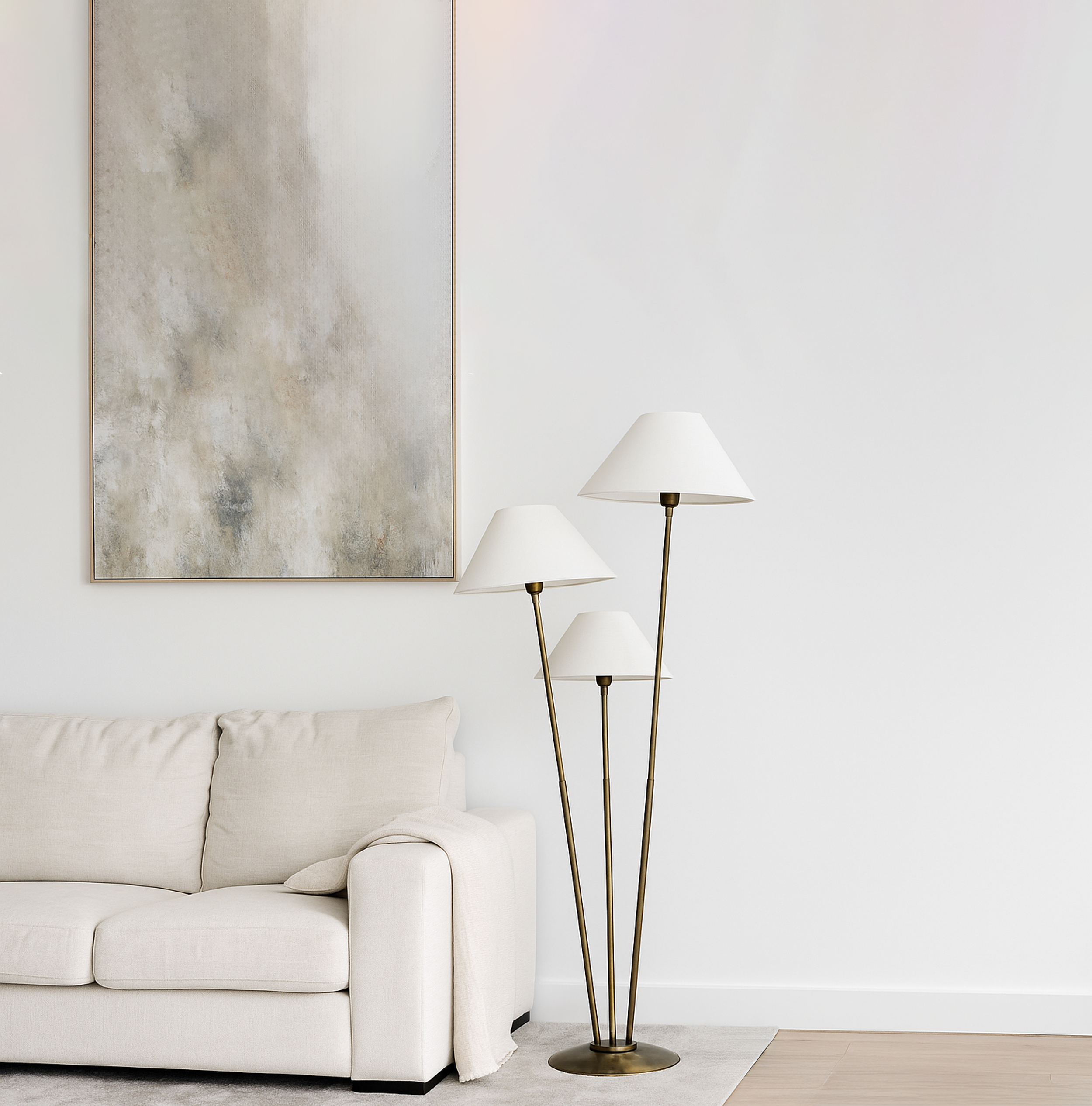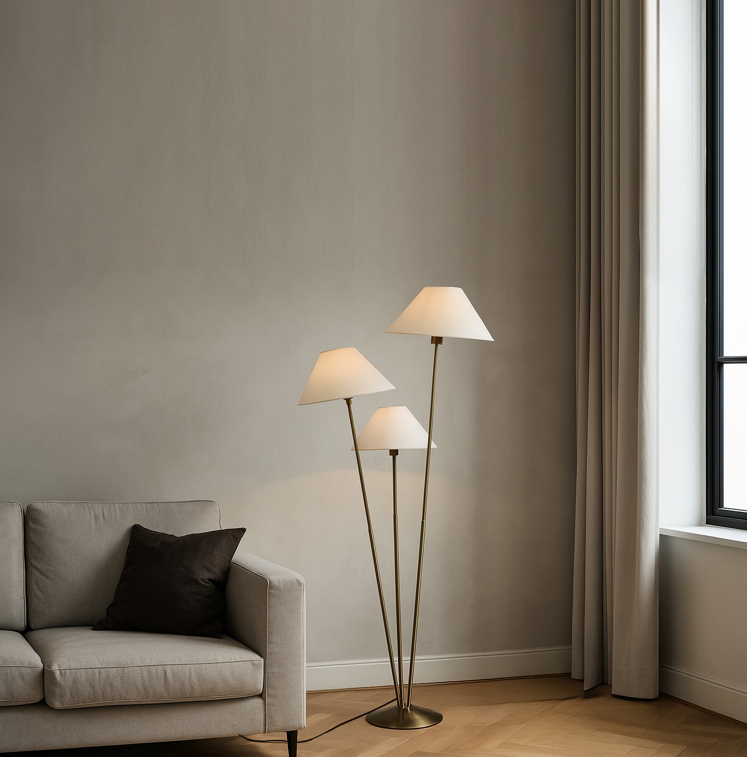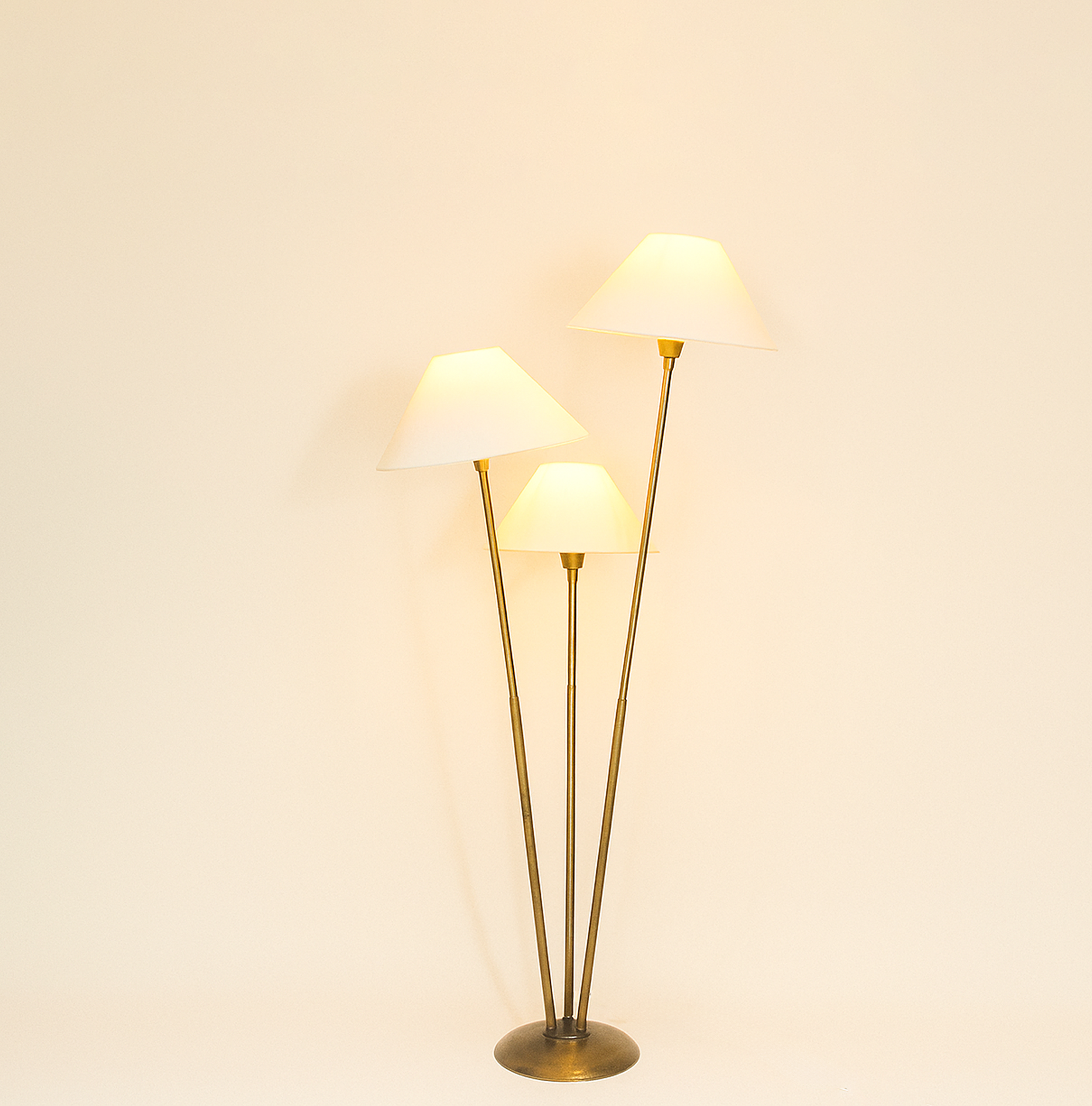 Illuminate your space with this elegant three-light lamp, designed to enhance any room's ambiance. Each lamp features a unique shade that diffuses light beautifully, creating a warm and inviting atmosphere. The sturdy base ensures stability, while the modern design complements various decor styles. Perfect for reading, working, or simply adding a touch of sophistication to your home, this lamp is a versatile addition to your lighting collection. Upgrade your interior with this stylish and functional piece today.