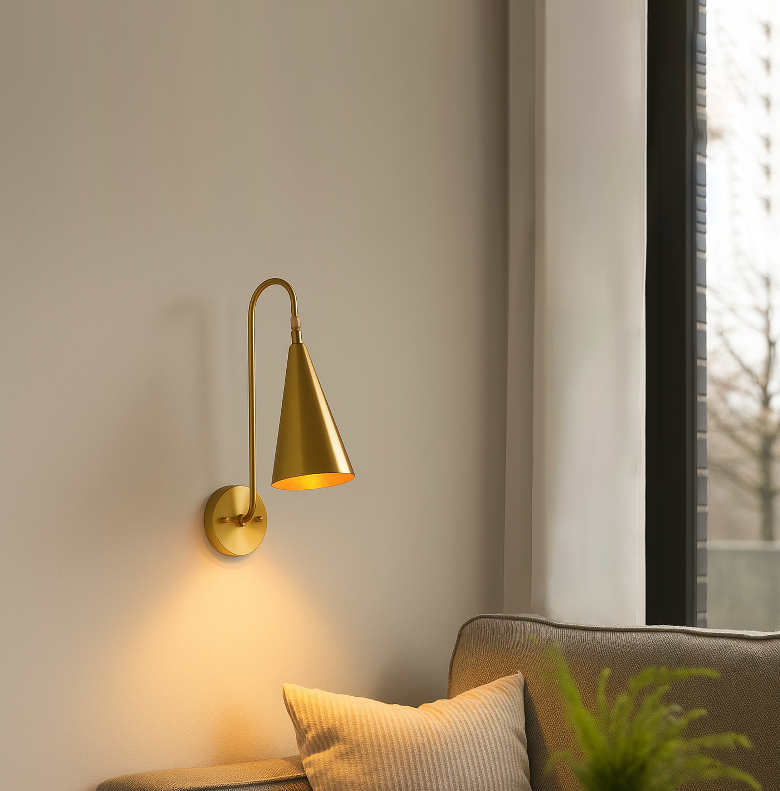 Introducing our exquisite wall lamp, a stunning addition to your home decor. With its sleek golden color finish, this lamp exudes a sense of contemporary elegance that will enhance any space. The striking design, reminiscent of a delicate one branch design, adds a touch of nature-inspired beauty to your walls. Its unique shape, gives it a charming and playful aesthetic that will surely catch the eye of your guests.