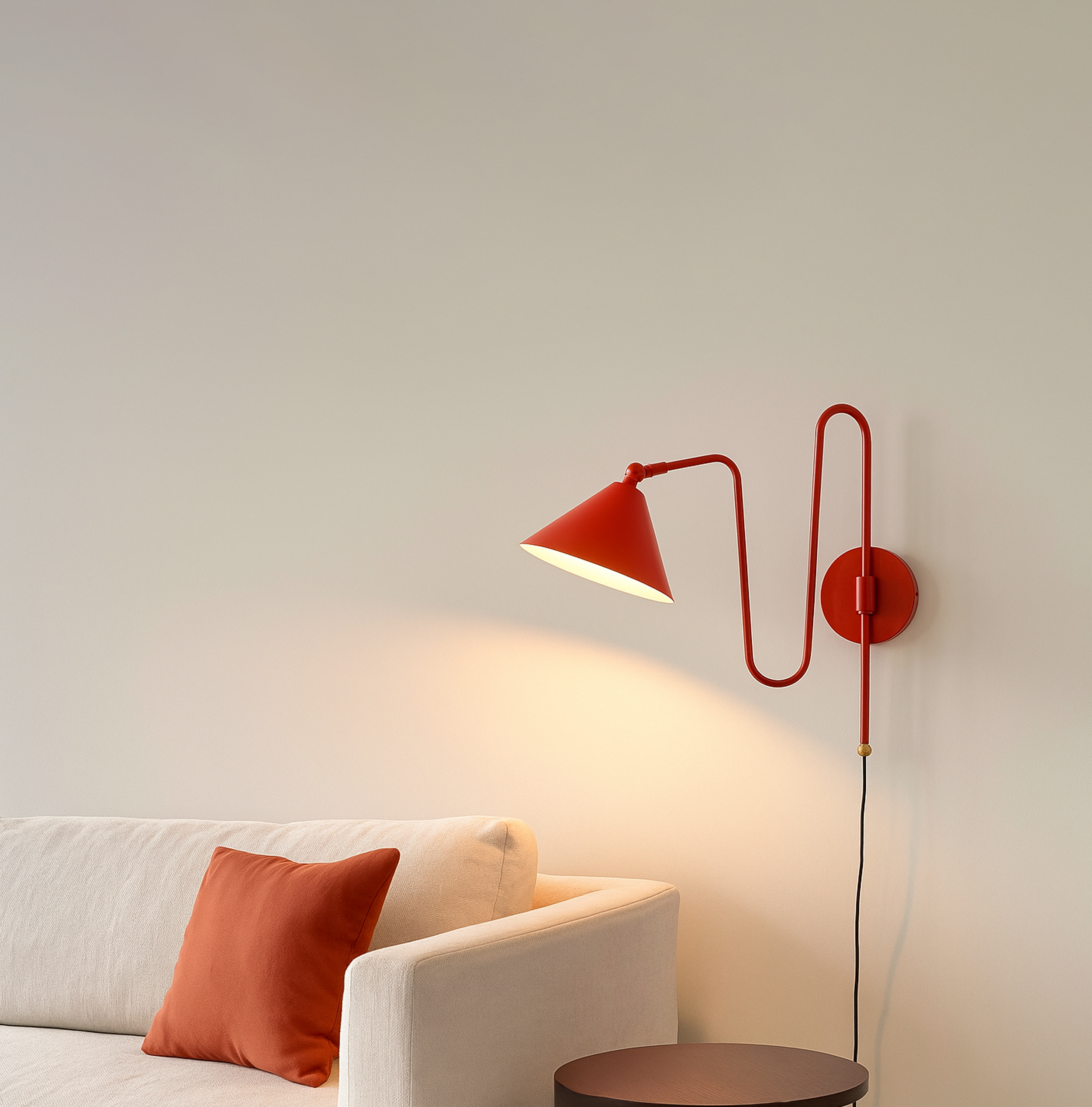 Introducing our exquisite wall lamp, a stunning addition to your home decor. With its sleek red color finish, this lamp exudes a sense of contemporary elegance that will enhance any space. The striking design, reminiscent of a delicate one branch design, adds a touch of nature-inspired beauty to your walls. Its unique shape, gives it a charming and playful aesthetic that will surely catch the eye of your guests.