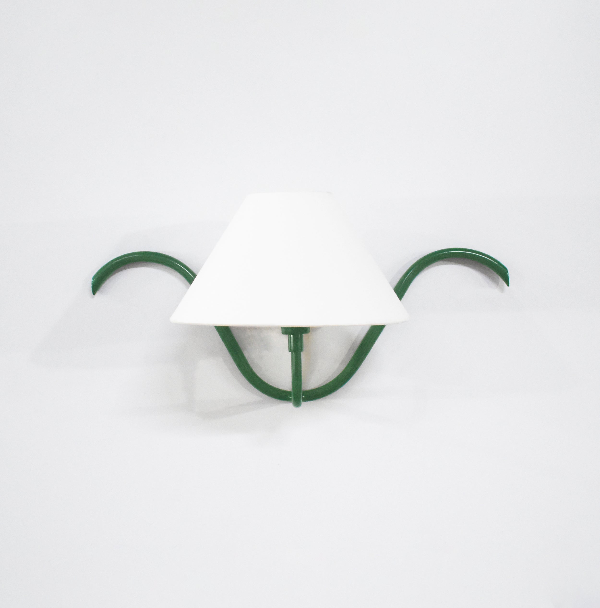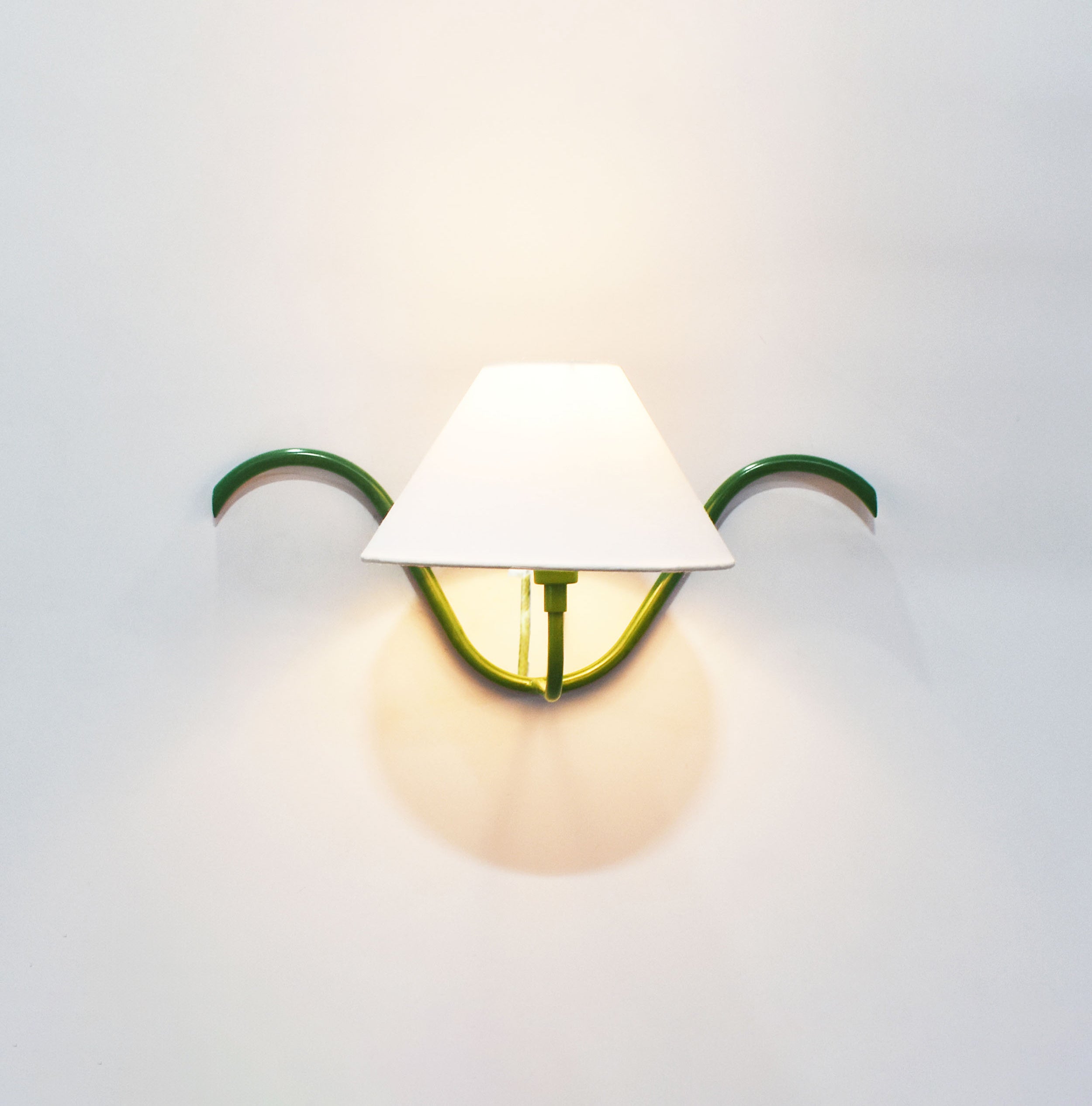 Introducing our exquisite wall lamp, a stunning addition to your home decor. With its sleek green color finish, this lamp exudes a sense of contemporary elegance that will enhance any space. The striking design, reminiscent of a delicate one branch design, adds a touch of nature-inspired beauty to your walls. Its unique shape, gives it a charming and playful aesthetic that will surely catch the eye of your guests.