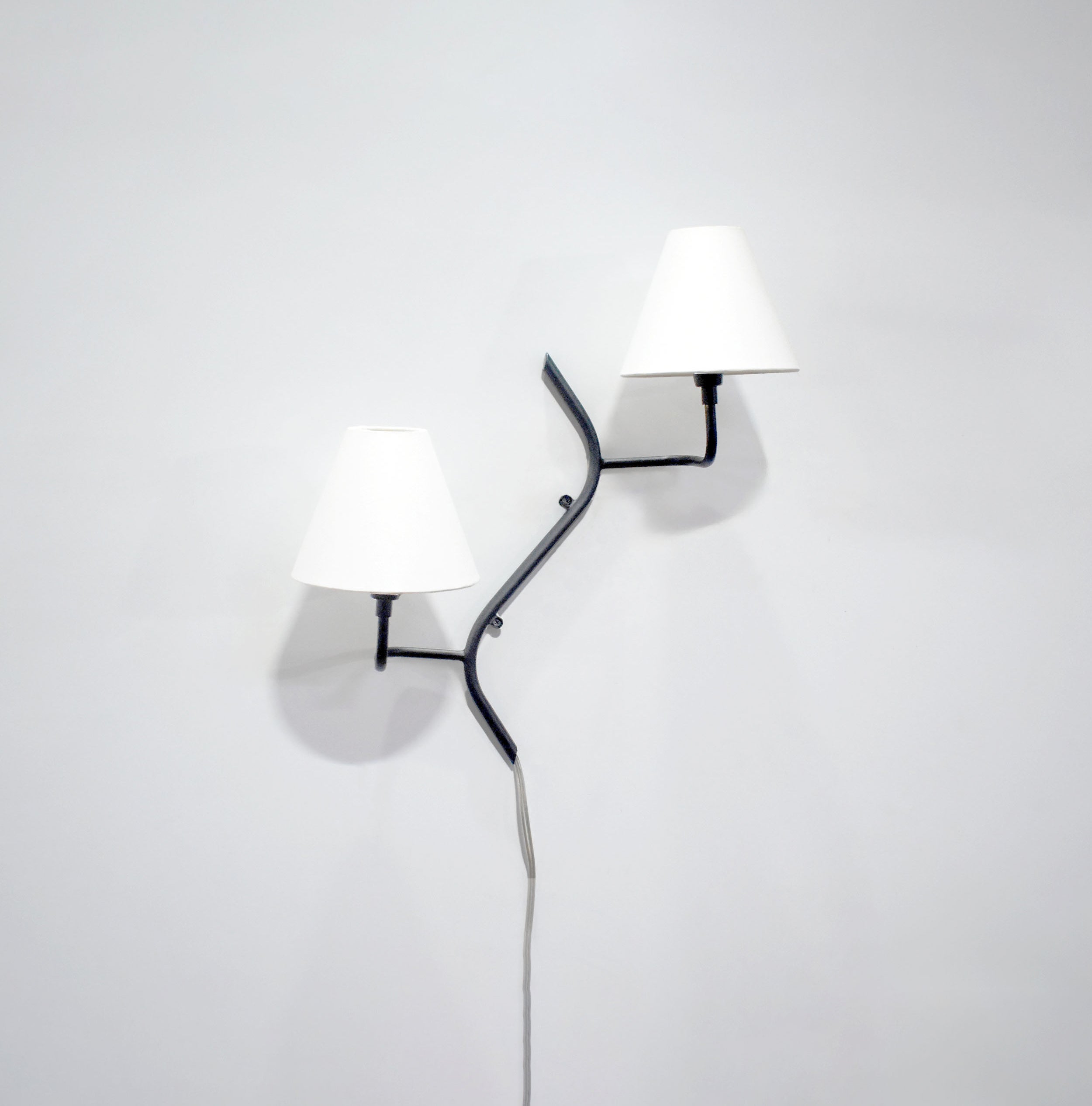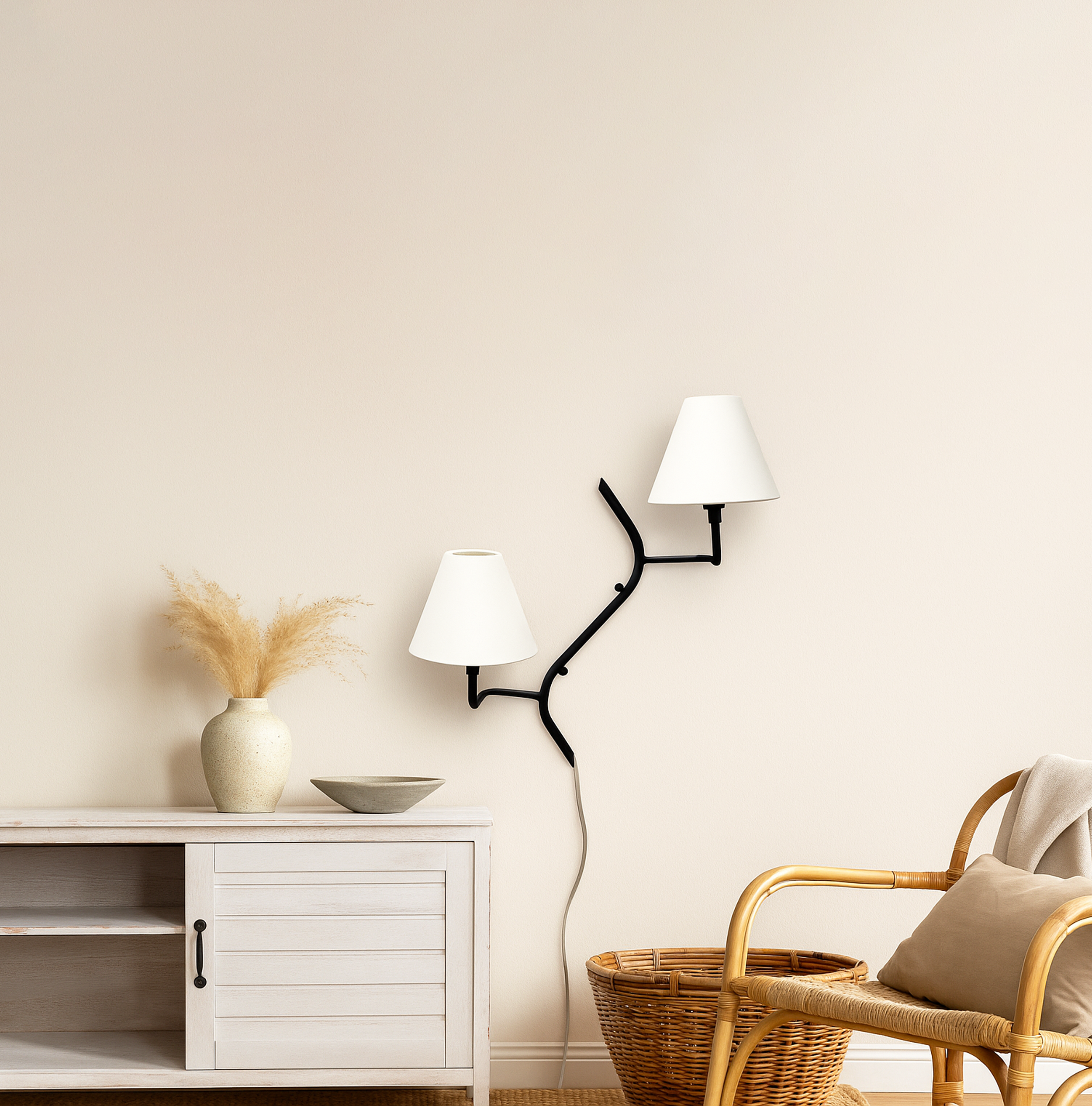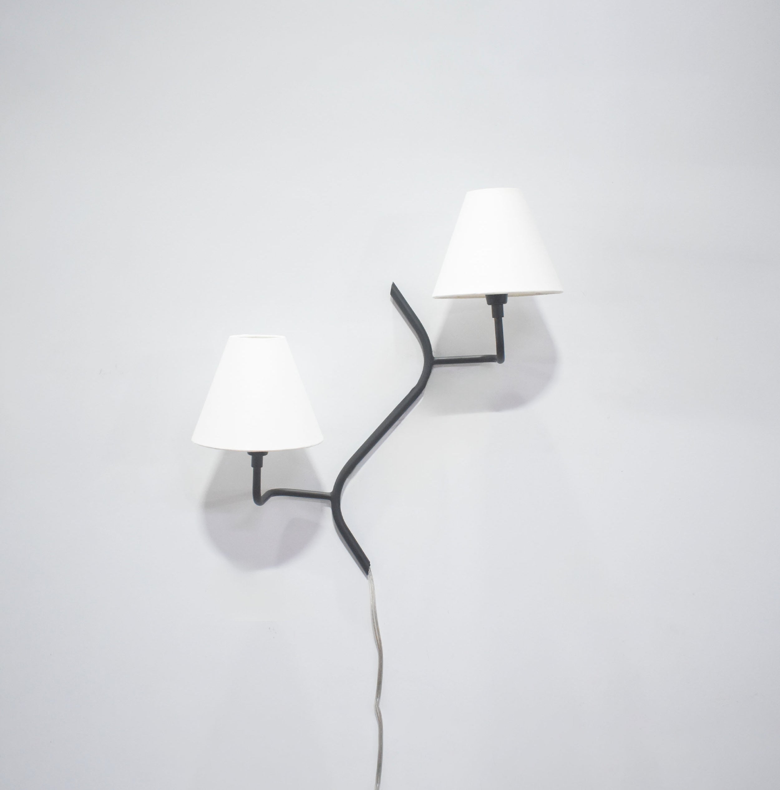 Introducing our exquisite wall lamp, a stunning addition to your home decor. With its sleek black color finish, this lamp exudes a sense of contemporary elegance that will enhance any space. The striking design, reminiscent of a delicate two branches, adds a touch of nature-inspired beauty to your walls. Its unique shape, gives it a charming and playful aesthetic that will surely catch the eye of your guests.
