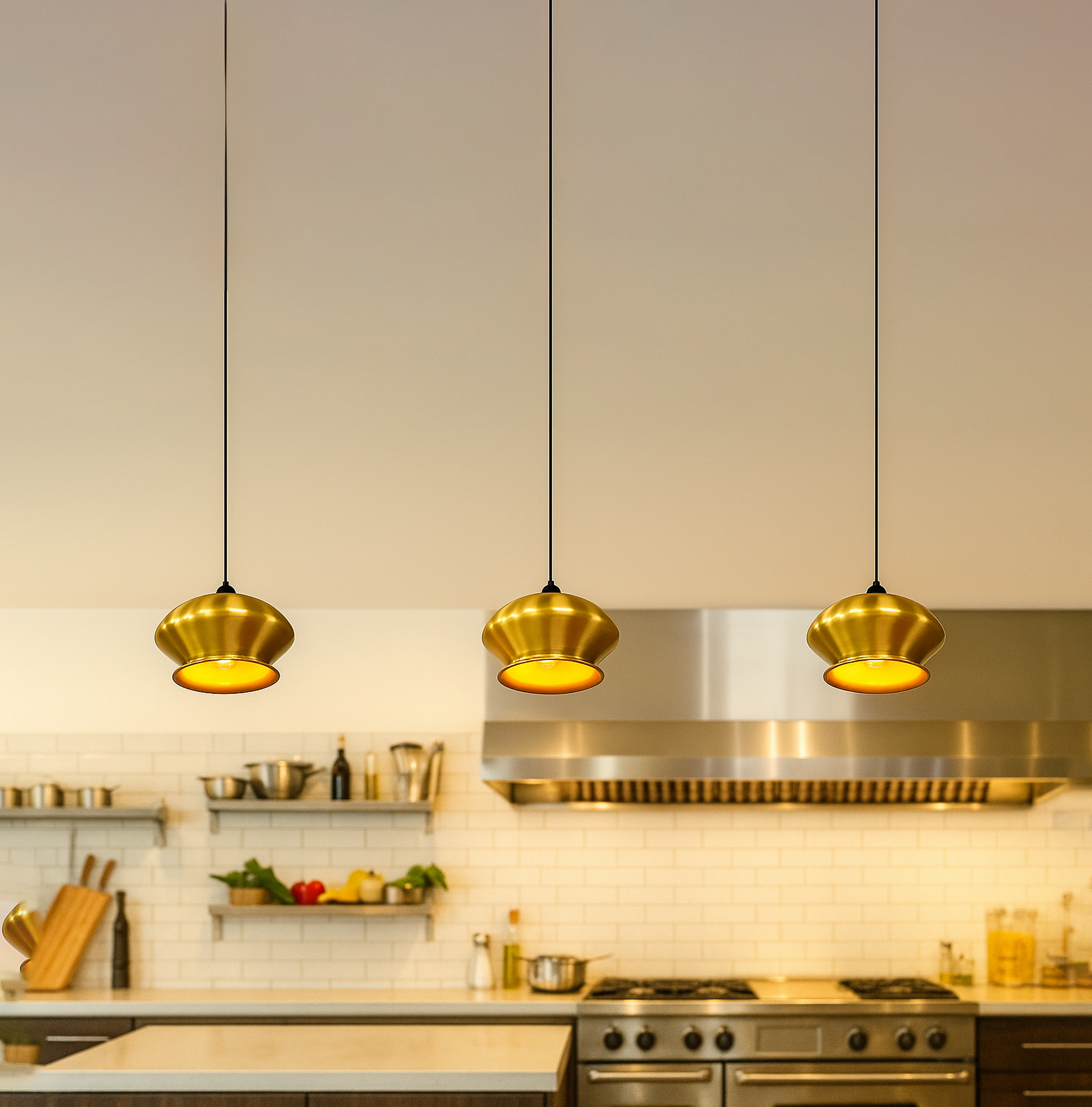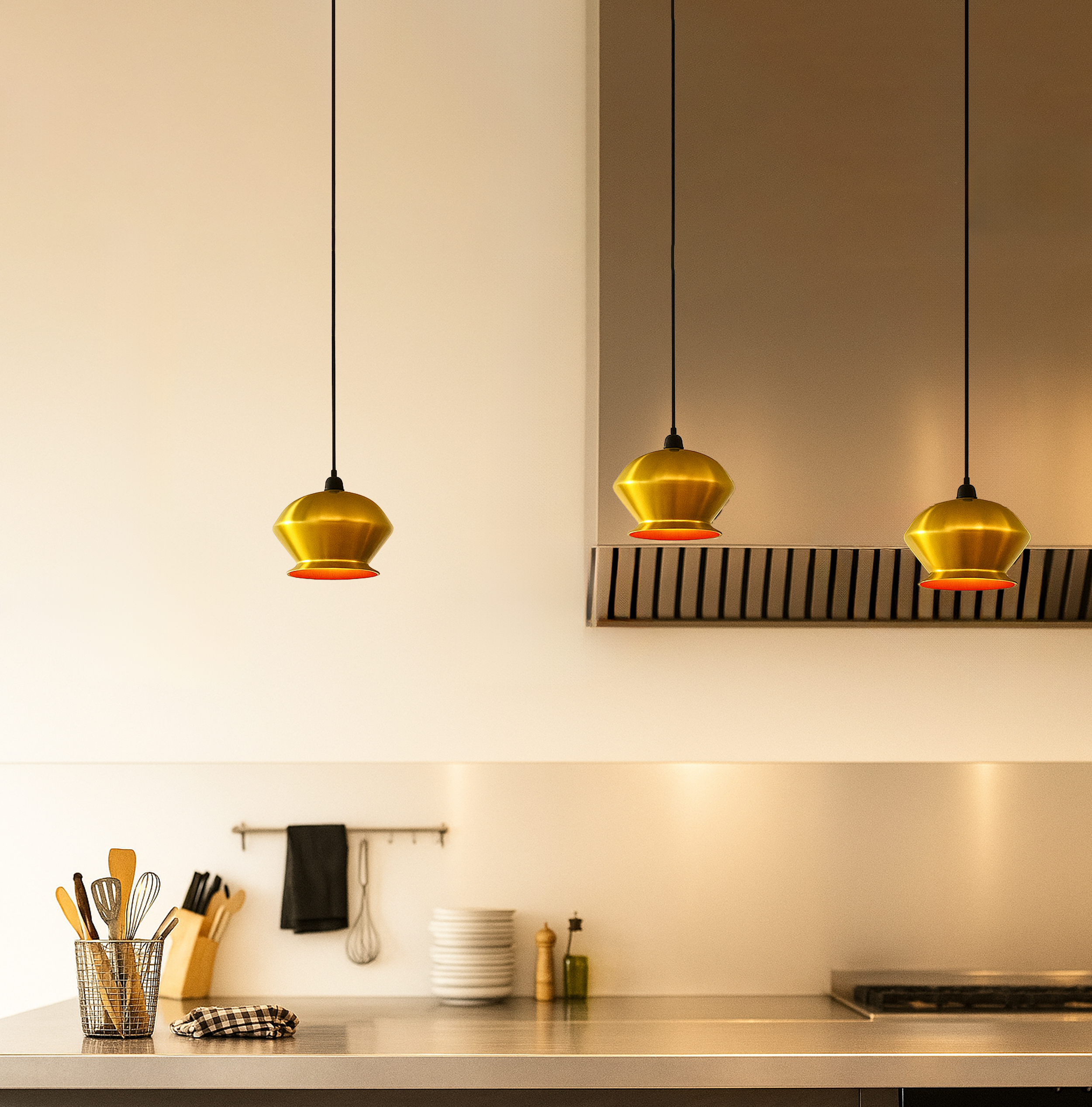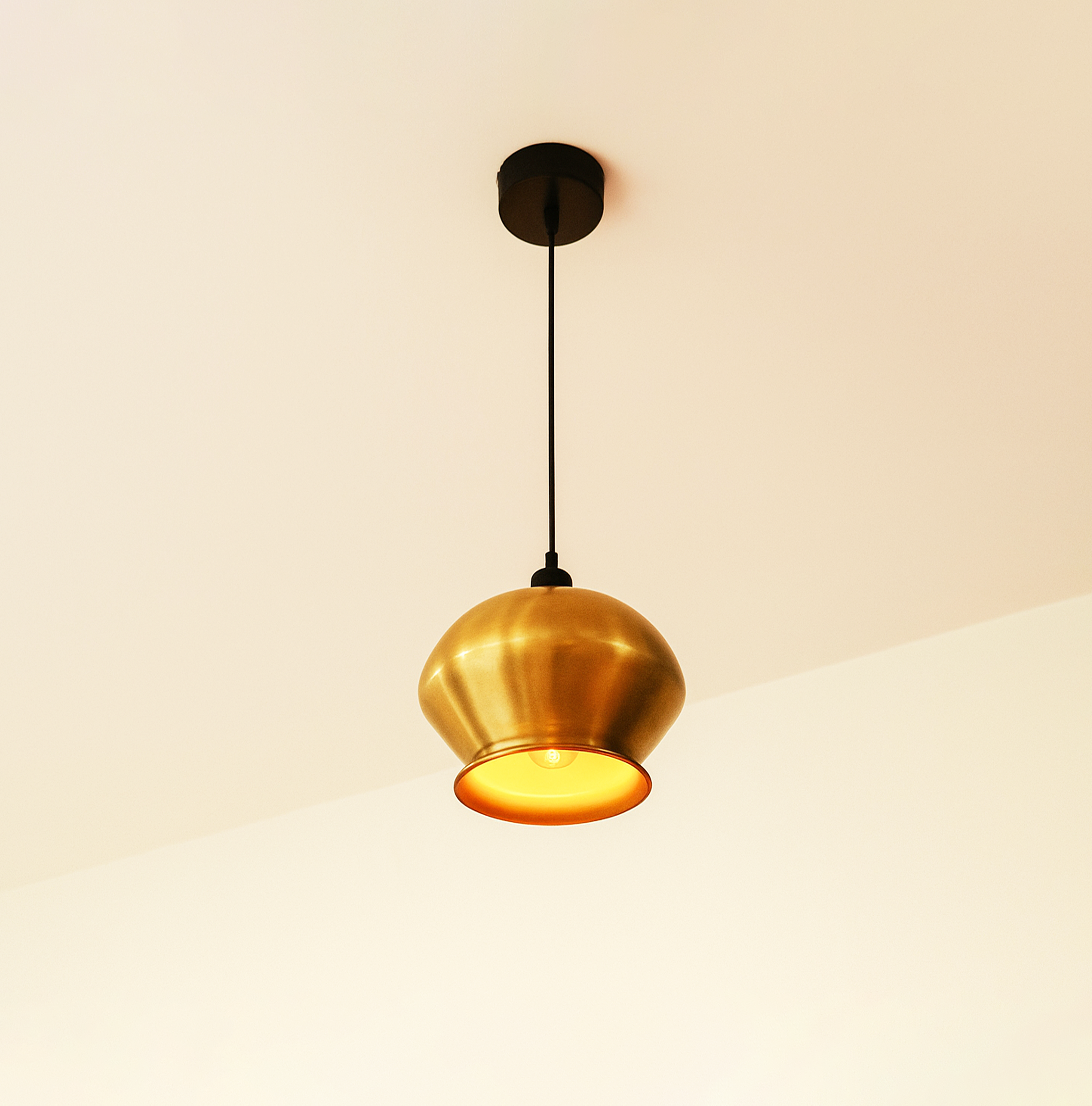 Introducing the old-look pendant light in a sleek gold color. This hanging light will instantly elevate the ambiance of any space with its timeless design and modern finish. Crafted with attention to detail, this pendant light features a sturdy metal construction that ensures durability and longevity. Its gold color adds a touch of sophistication and elegance to any room decor.