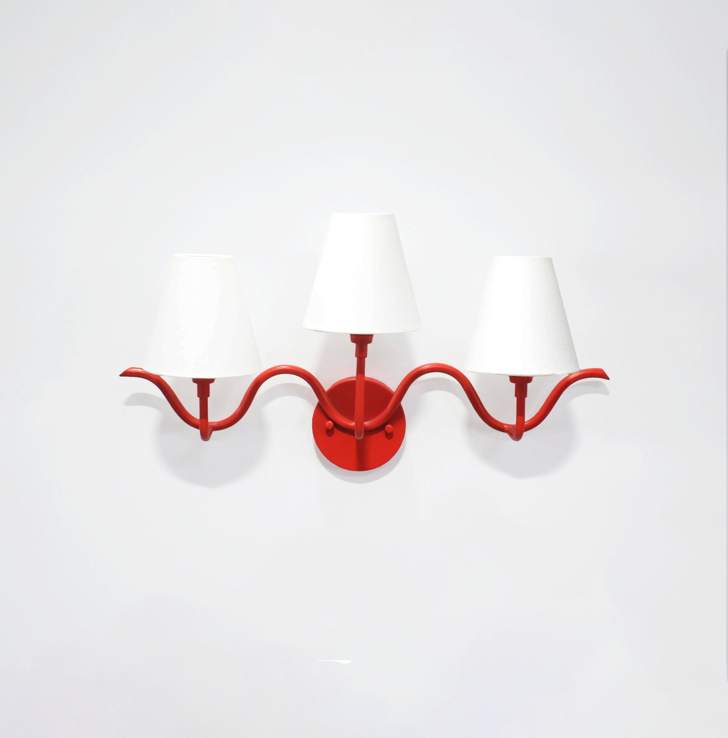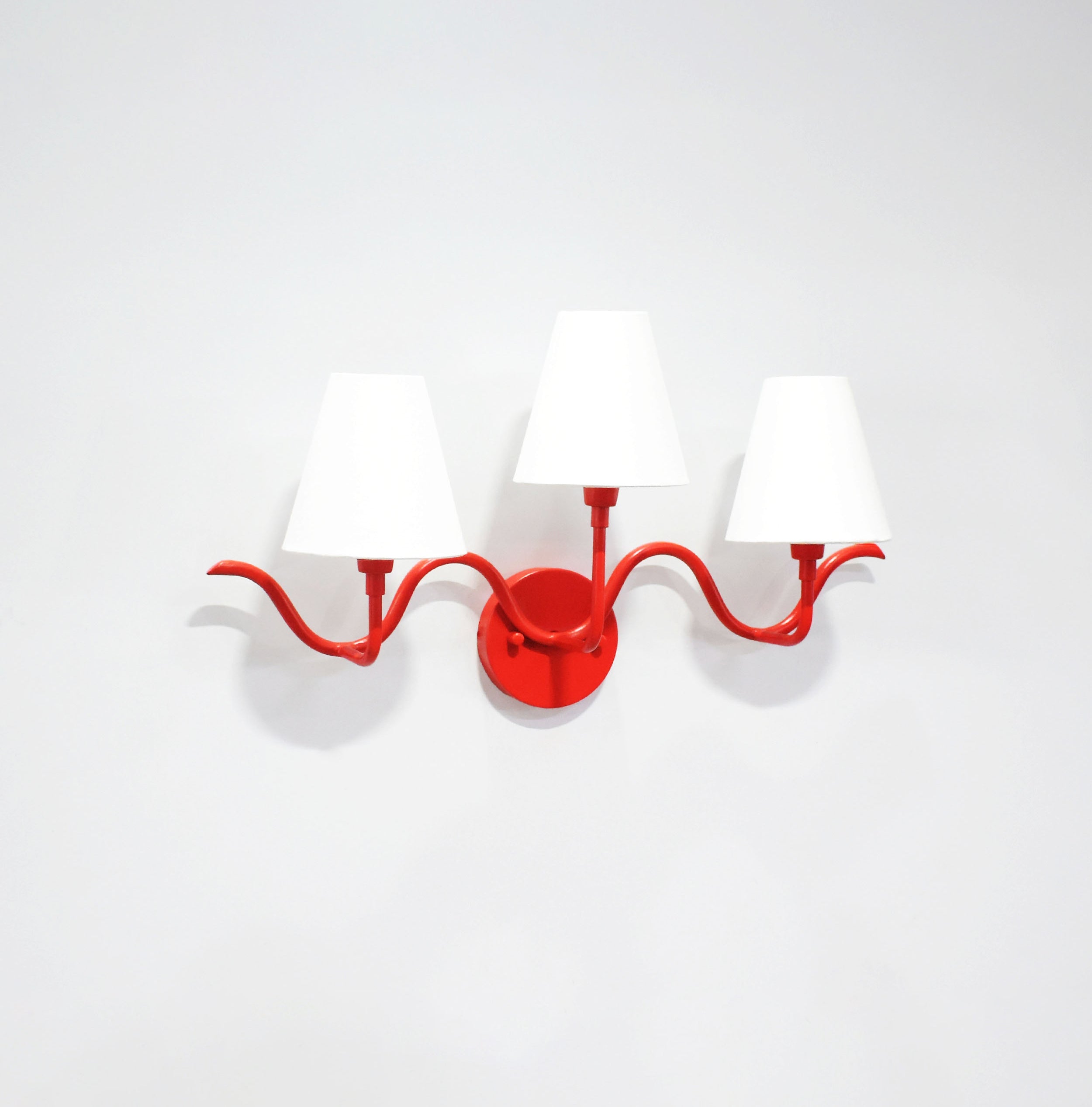 Introducing our exquisite wall lamp, a stunning addition to your home decor. With its sleek red color finish, this lamp exudes a sense of contemporary elegance that will enhance any space. The striking design, reminiscent of a delicate one branch design, adds a touch of nature-inspired beauty to your walls. Its unique shape, gives it a charming and playful aesthetic that will surely catch the eye of your guests.