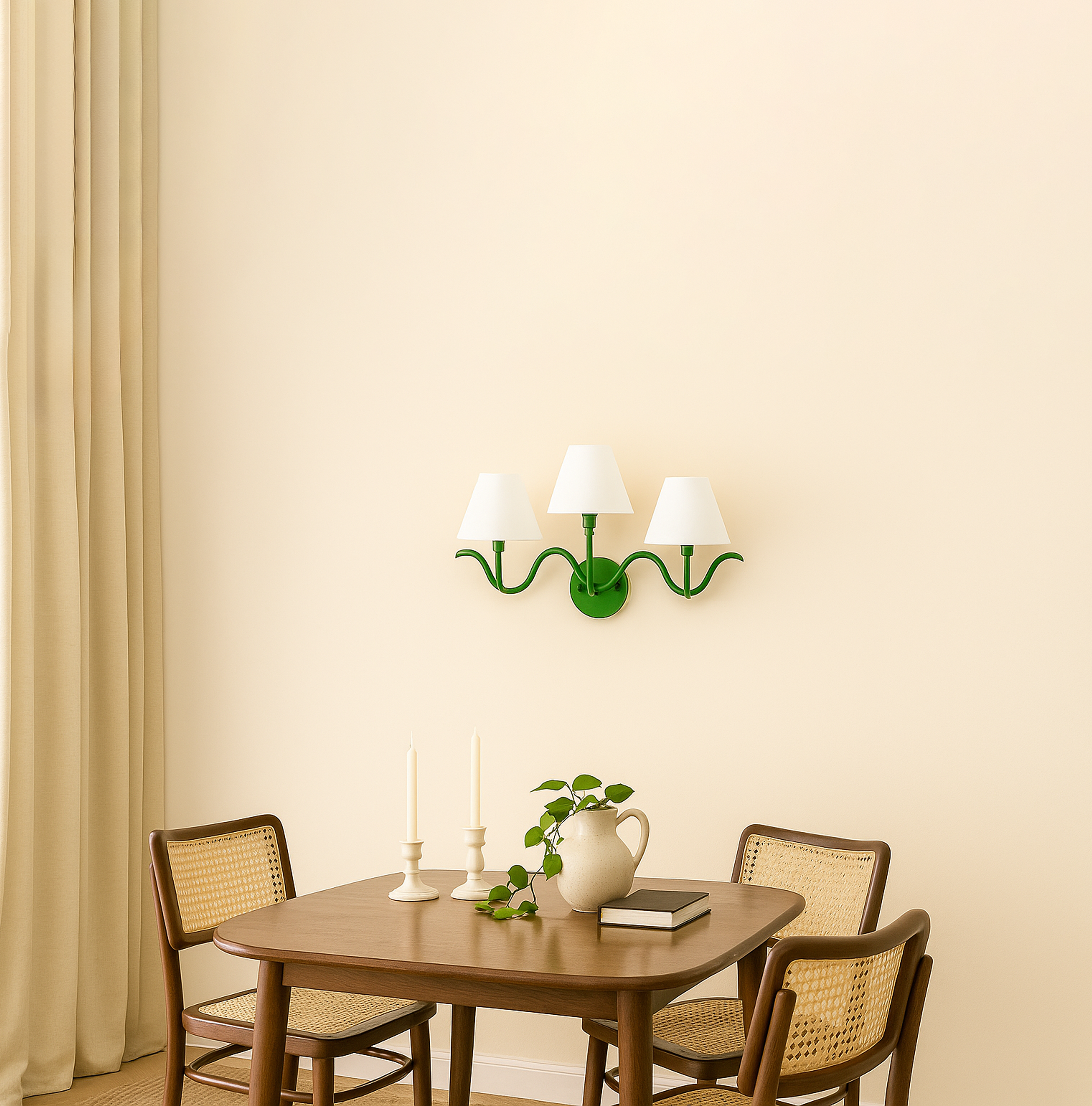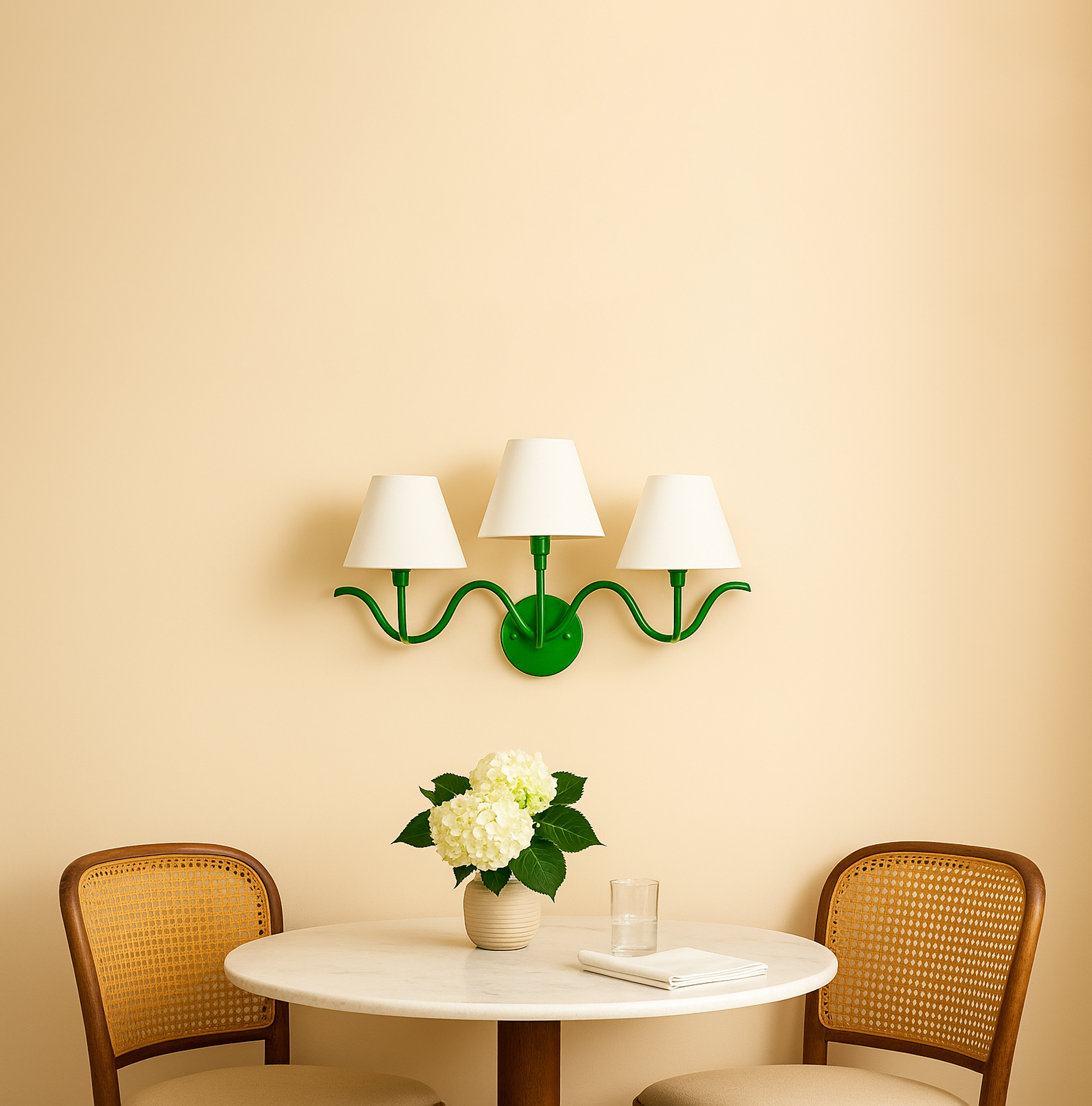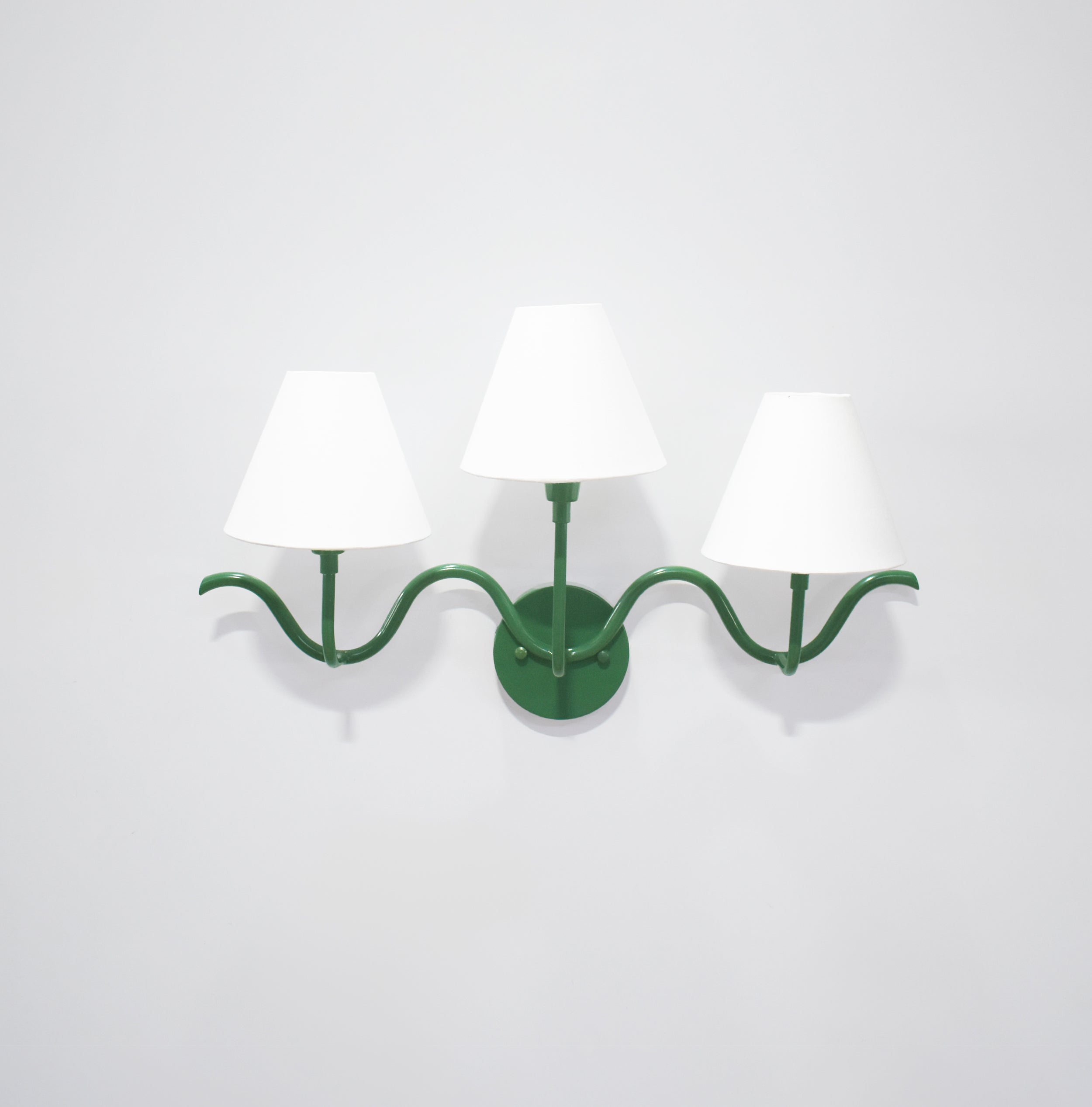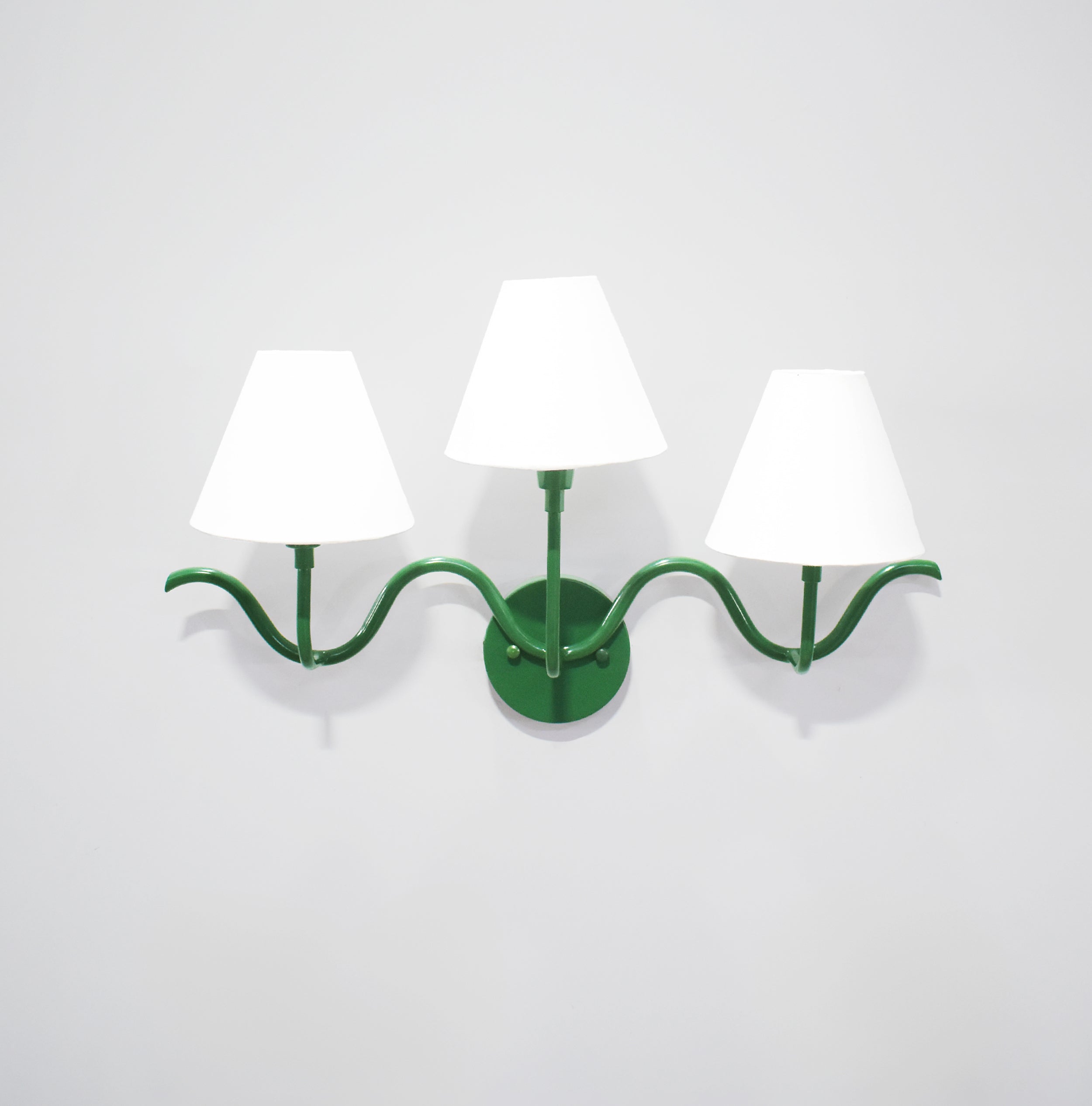 Introducing our exquisite wall lamp, a stunning addition to your home decor. With its sleek green color finish, this lamp exudes a sense of contemporary elegance that will enhance any space. The striking design, reminiscent of a delicate one branch design, adds a touch of nature-inspired beauty to your walls. Its unique shape, gives it a charming and playful aesthetic that will surely catch the eye of your guests.