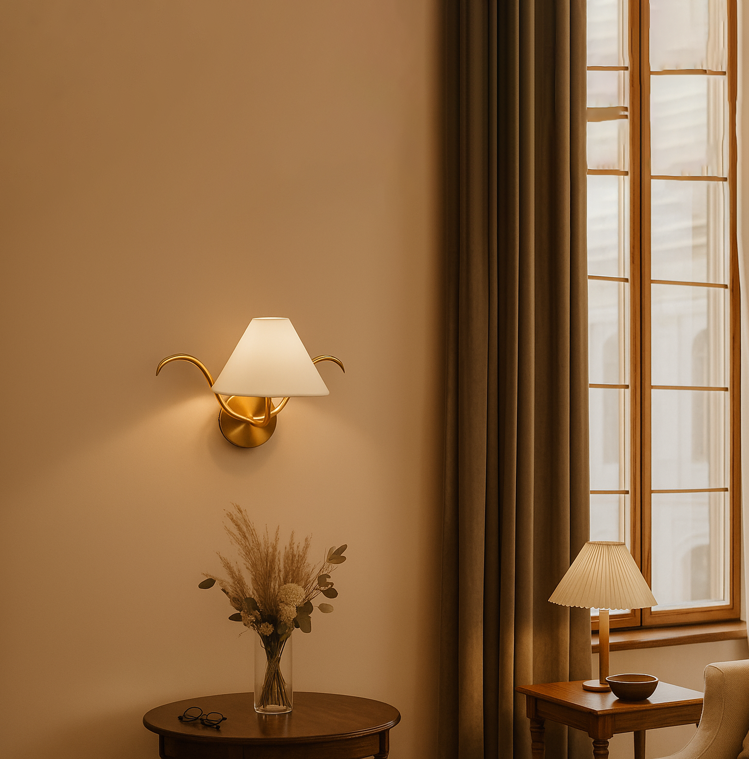 Introducing our exquisite wall lamp, a stunning addition to your home decor. With its sleek Gold color finish, this lamp exudes a sense of contemporary elegance that will enhance any space. The striking design, reminiscent of a delicate one branch design, adds a touch of nature-inspired beauty to your walls. Its unique shape, gives it a charming and playful aesthetic that will surely catch the eye of your guests.