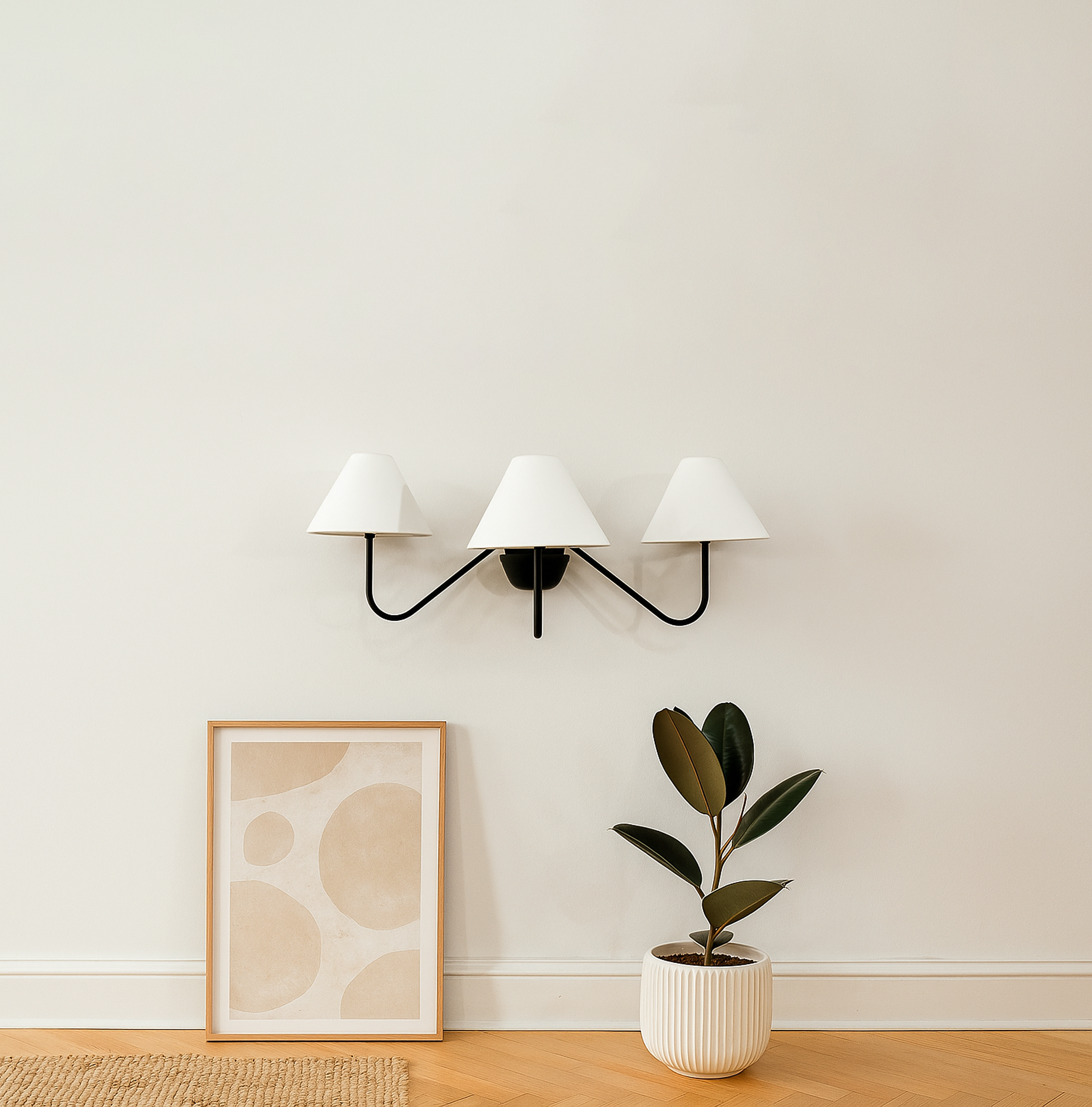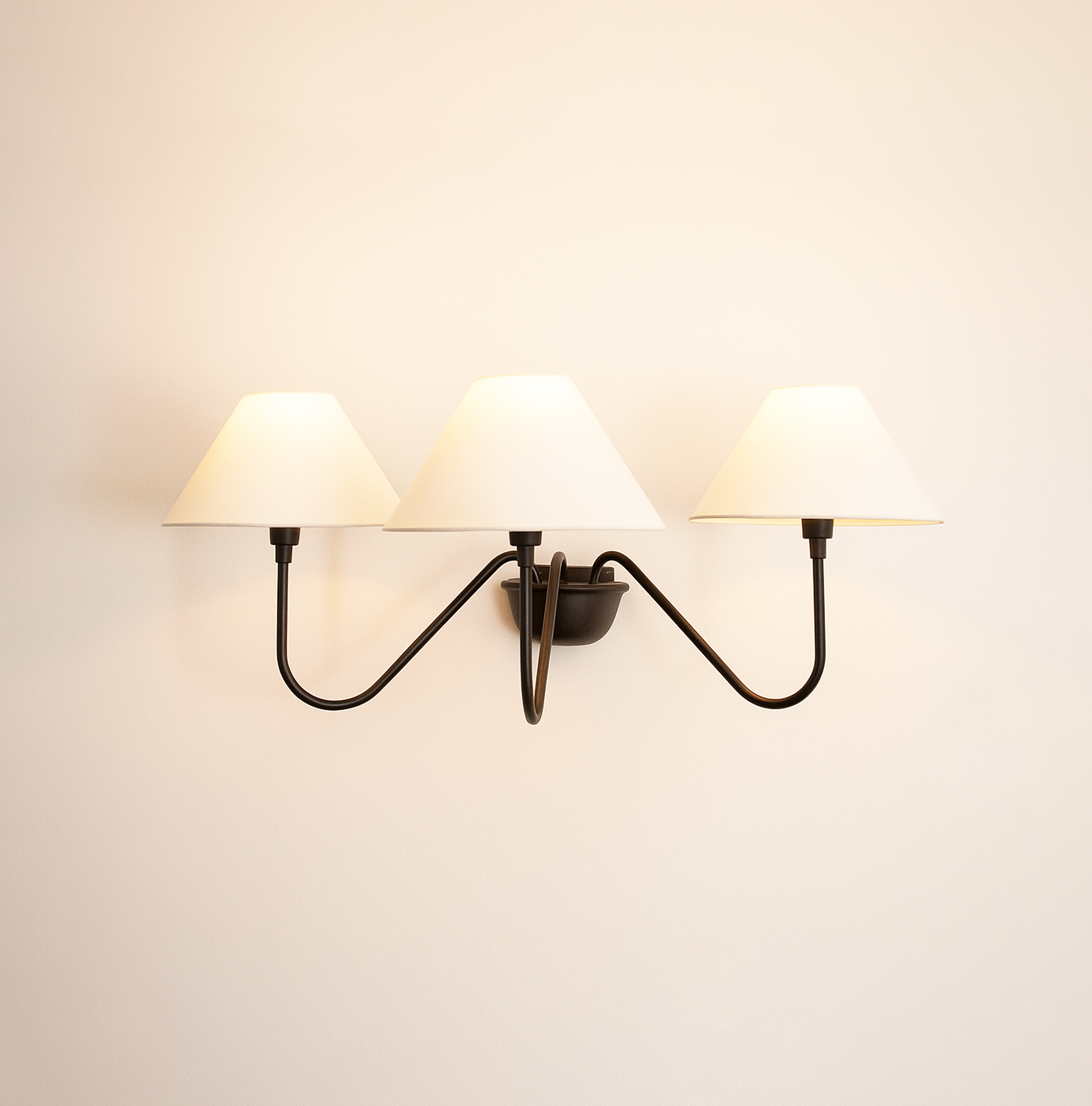 Illuminate your living space with this striking matte black three-light wall light, inspired by the delicate beauty of a flower tree branch. This unique wall lamp exudes a contemporary charm, blending artistry and functionality seamlessly. With its intricate design resembling a floral silhouette, this wall light adds a touch of elegance to any room it graces. Enhance your home décor with this captivating piece that is sure to be a focal point of admiration.