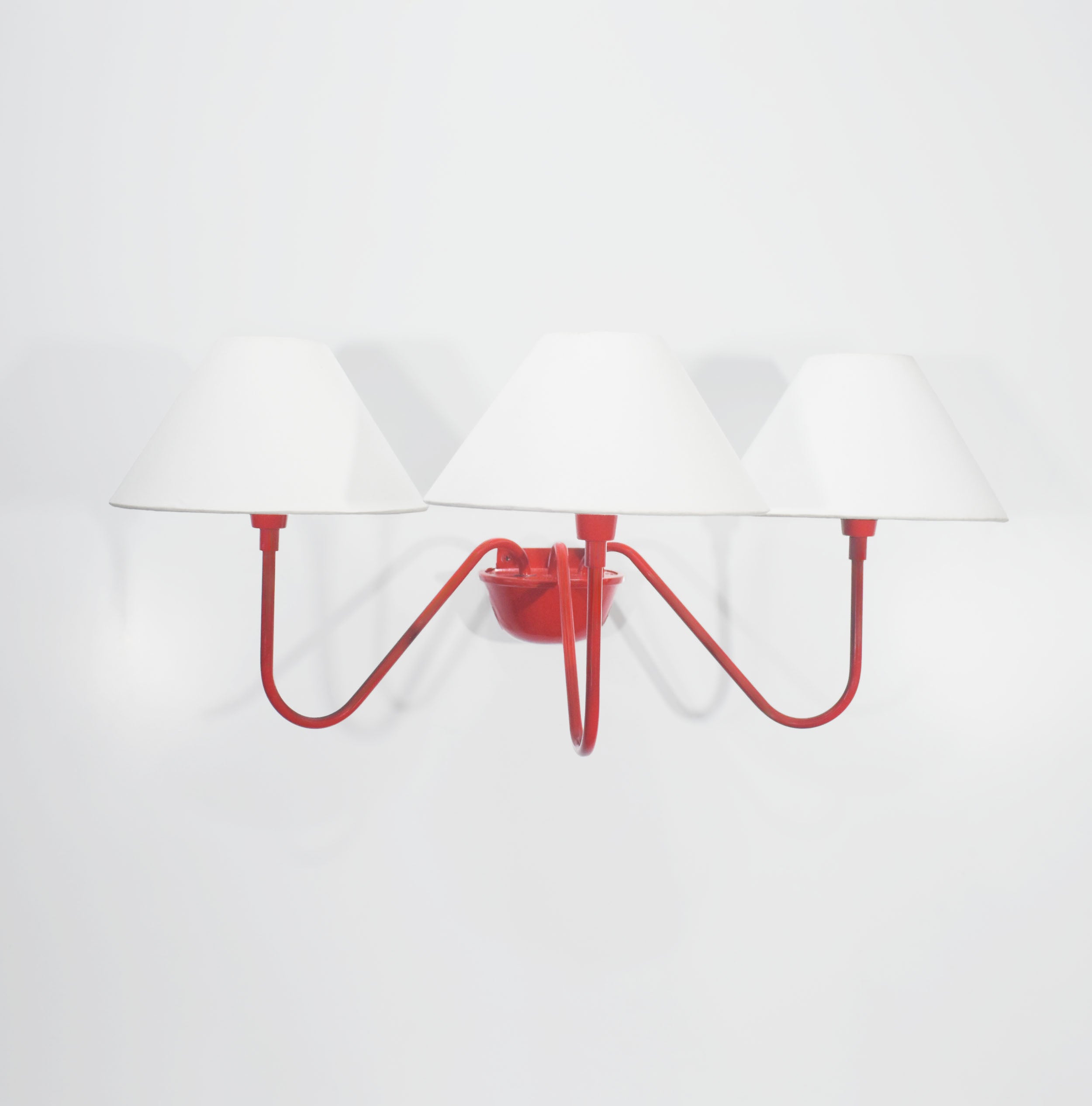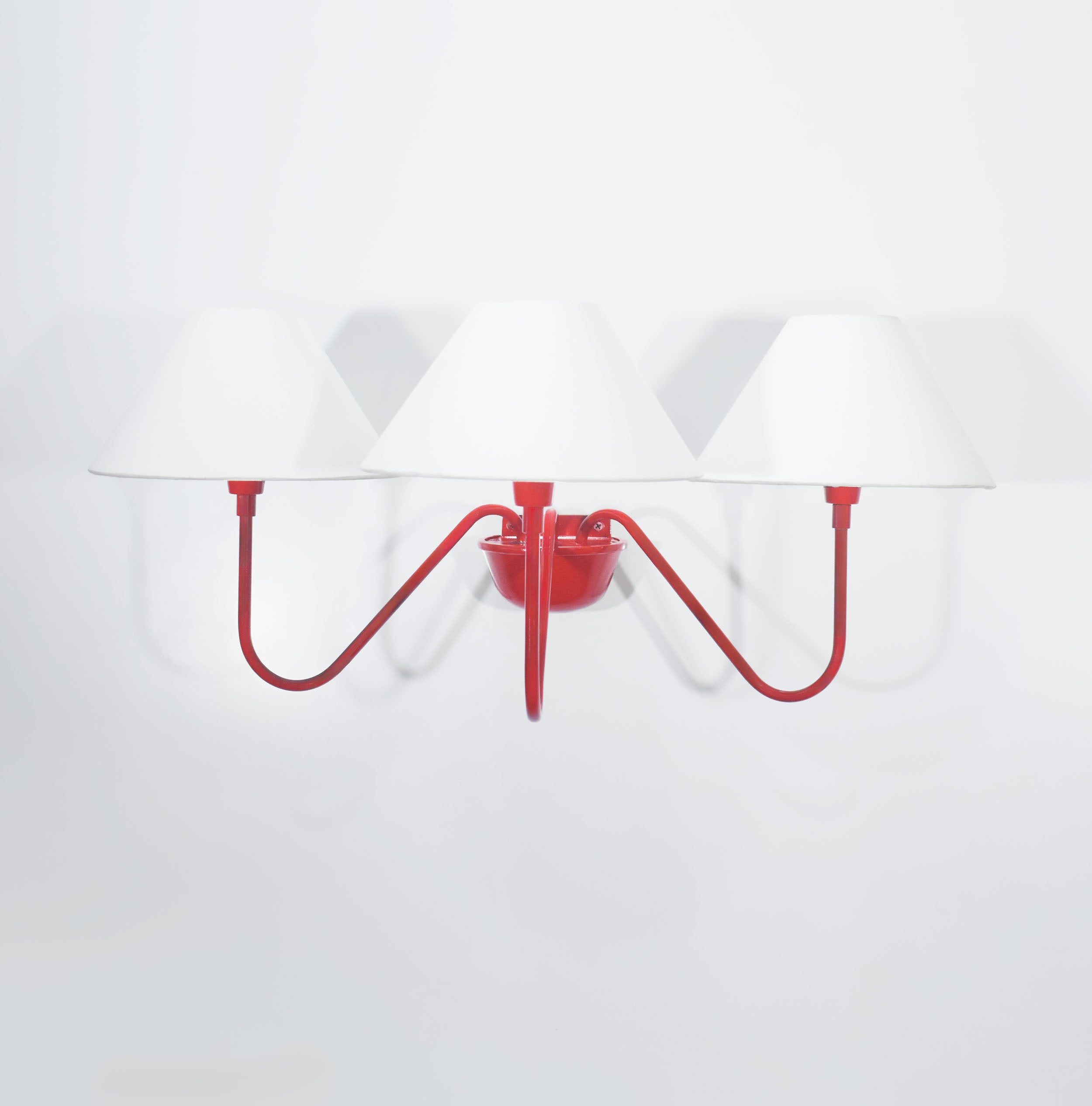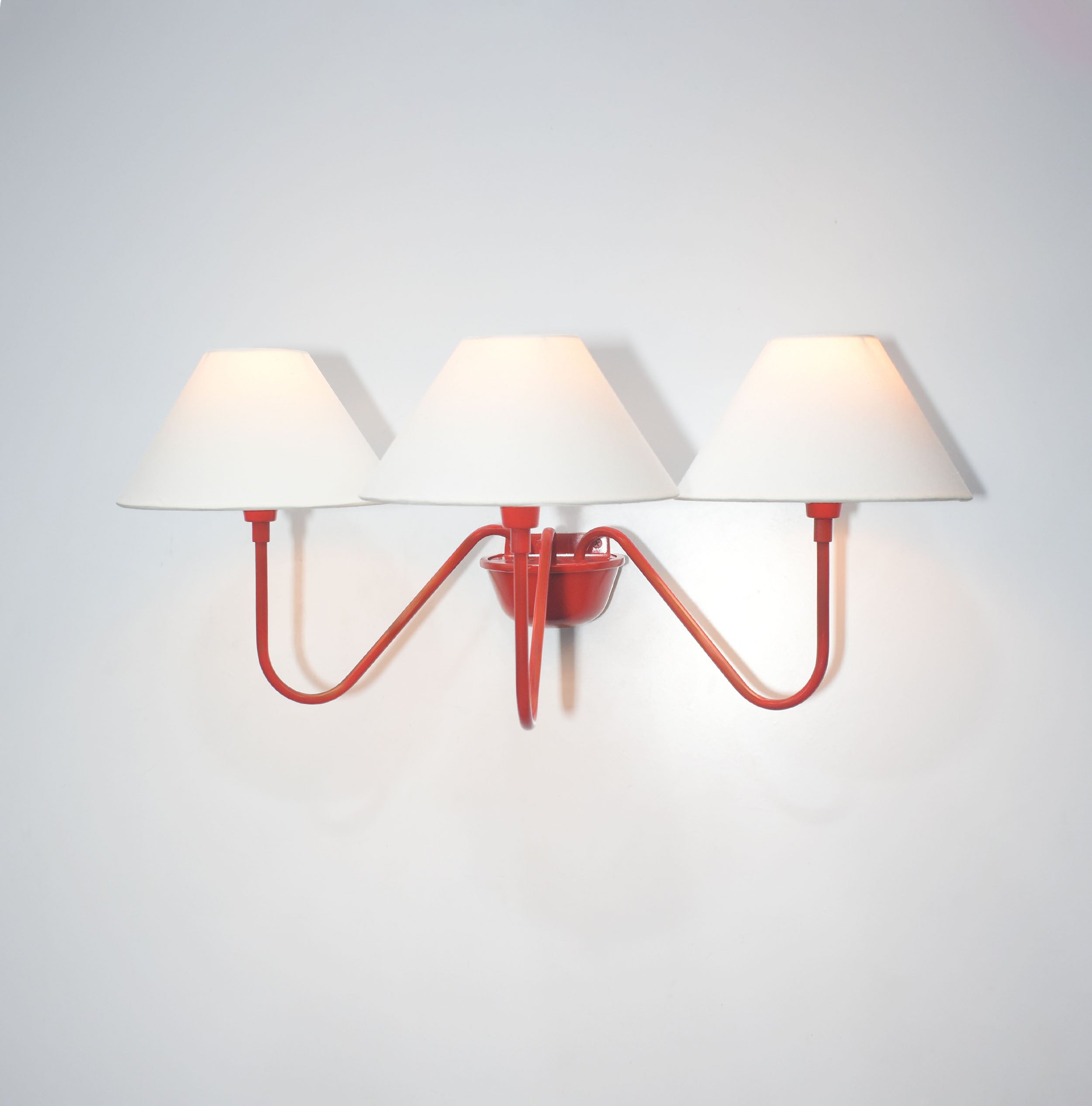 Introducing our modern Red 3 Lights Wall Lamp, a stunning addition to any space. This wall lamp combines elegance and functionality, providing both ambient and task lighting. The sleek design features five lights, creating a warm and inviting atmosphere. Crafted with attention to detail, the red finish adds a touch of sophistication to any room. Illuminate your space with style and grace with our modern Red wall lamp.